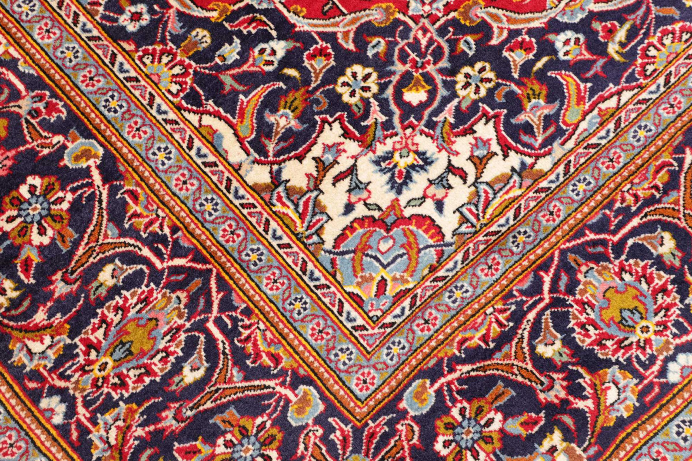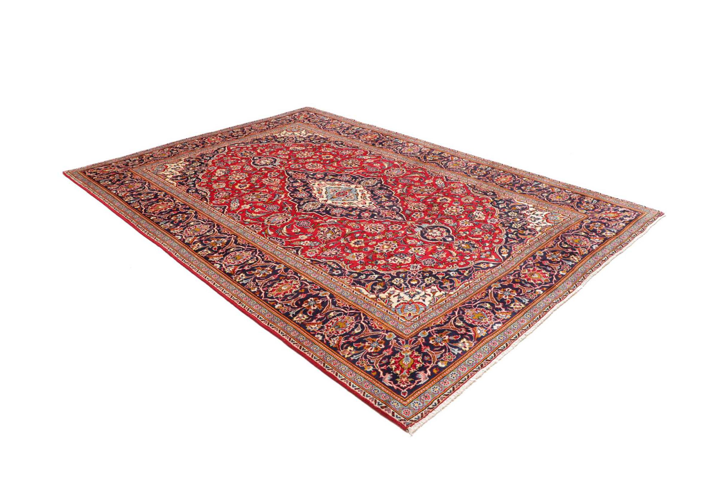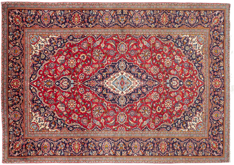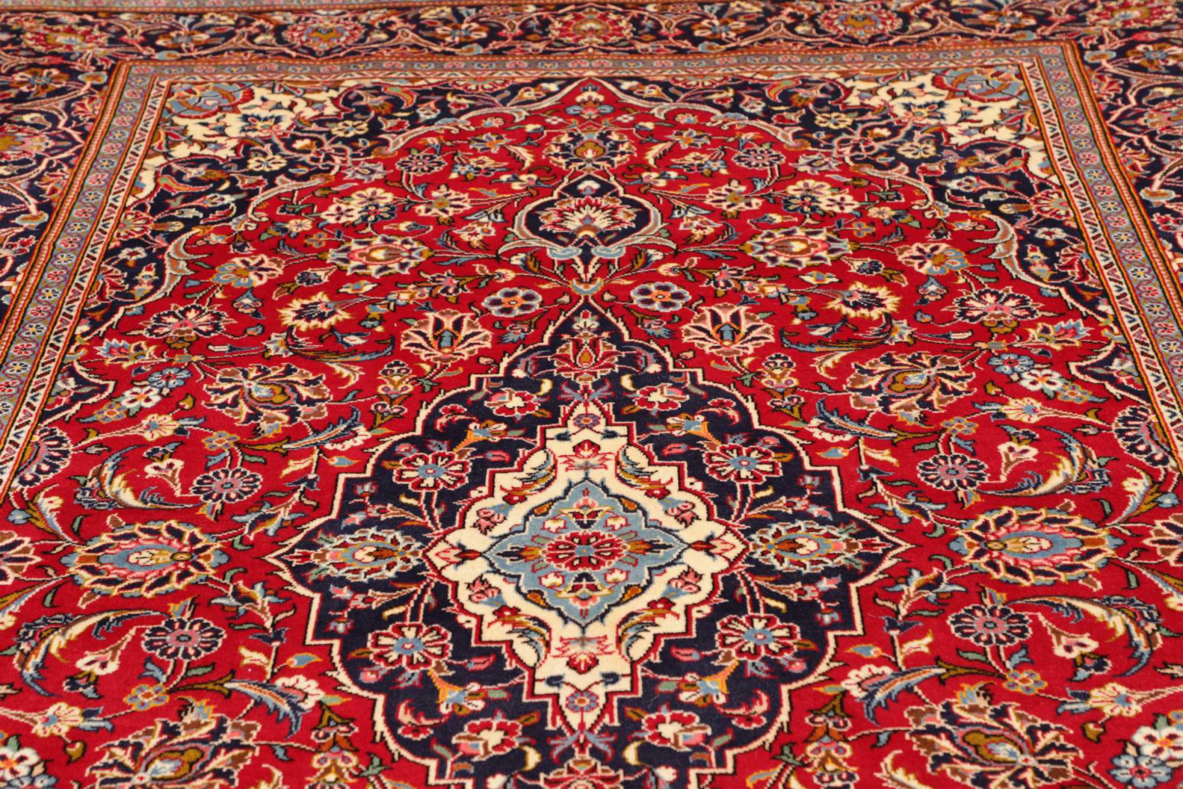 Hand knotted rugs from the city of Kashan (Keshan) are known worldwide. Not only do these Persian rugs have a very popular design, but their quality is undisputedly one of the best. In the Persian Empire the city was considered one of the most important trading places along the famous Silk Road. Kashan rugs usually have a central medallion, floral ornaments and a red background. They are made of high-quality sheep's wool and vegetable dyes.