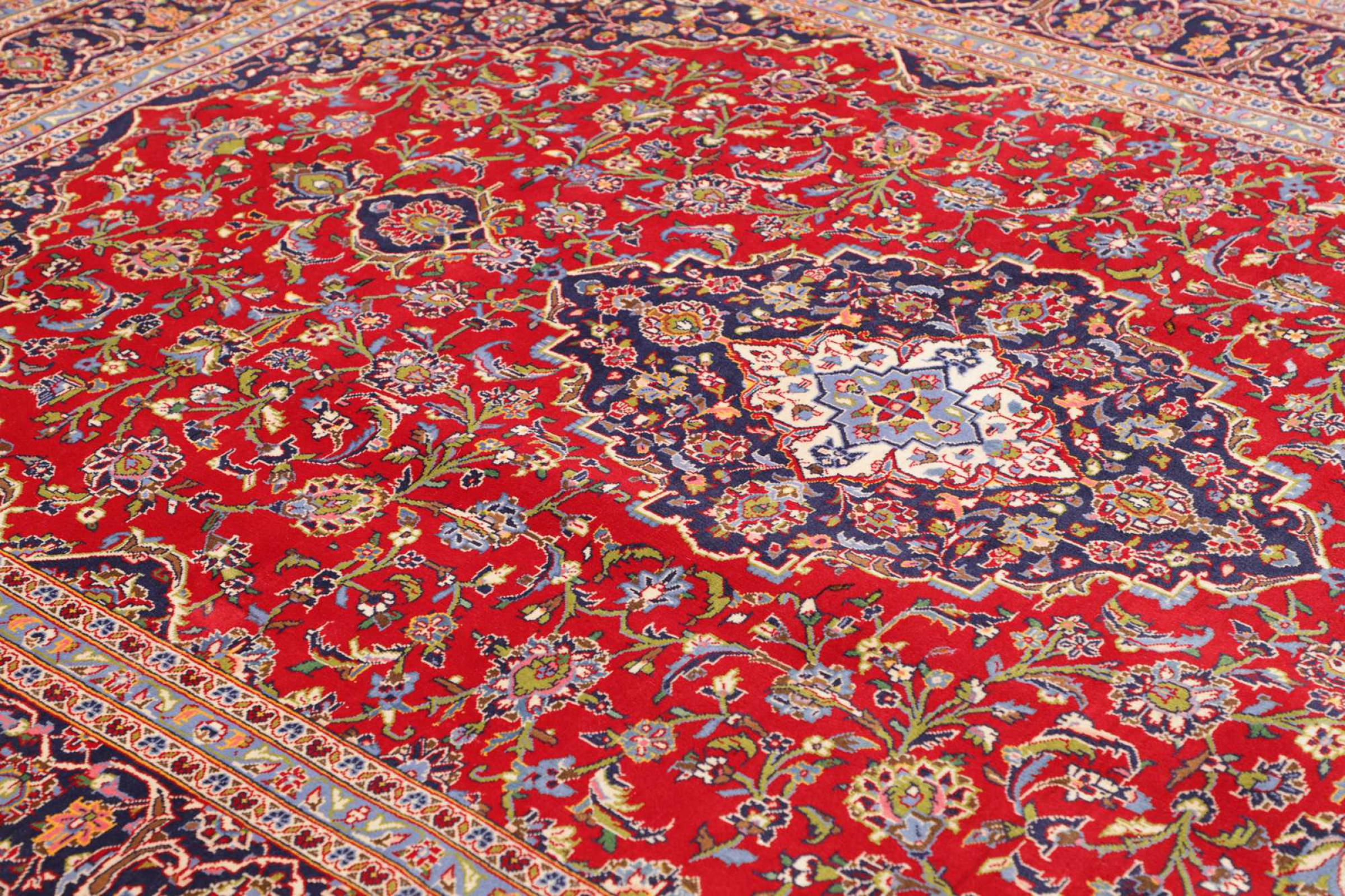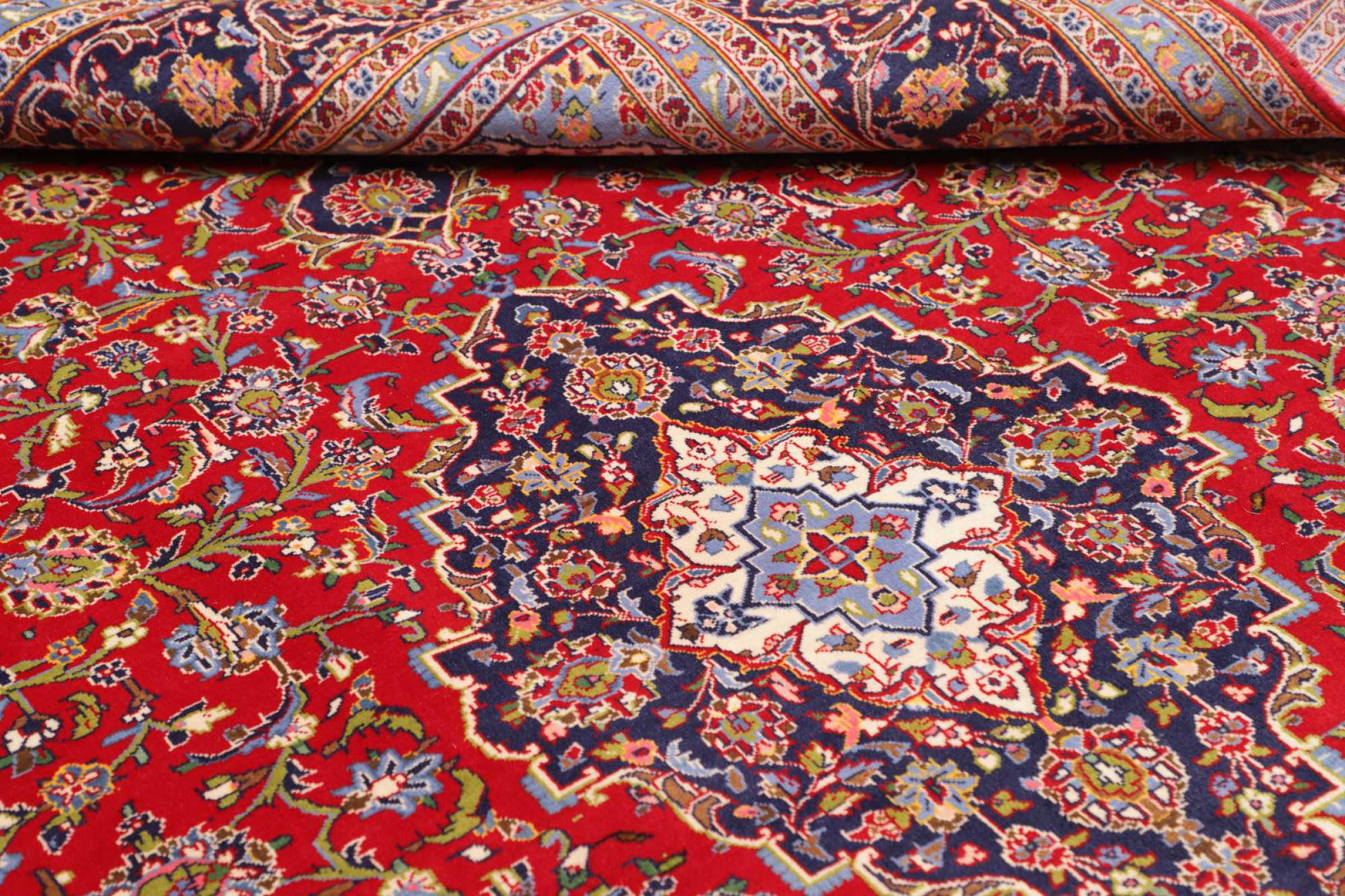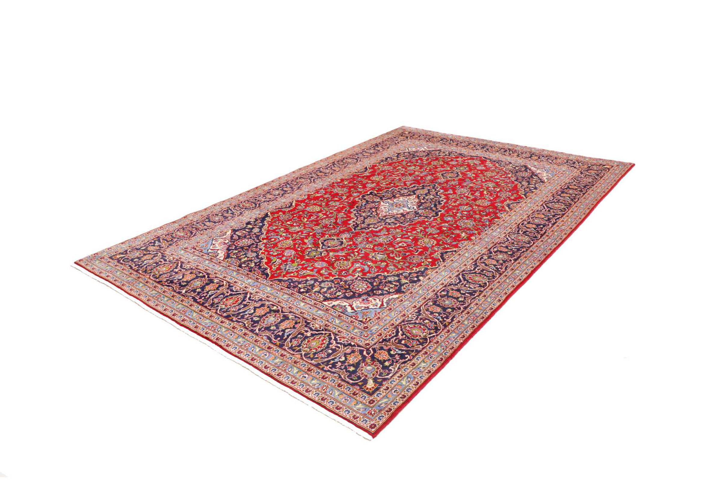 Hand knotted rugs from the city of Kashan (Keshan) are known worldwide. Not only do these Persian rugs have a very popular design, but their quality is undisputedly one of the best. In the Persian Empire the city was considered one of the most important trading places along the famous Silk Road. Kashan rugs usually have a central medallion, floral ornaments and a red background. They are made of high-quality sheep's wool and vegetable dyes.