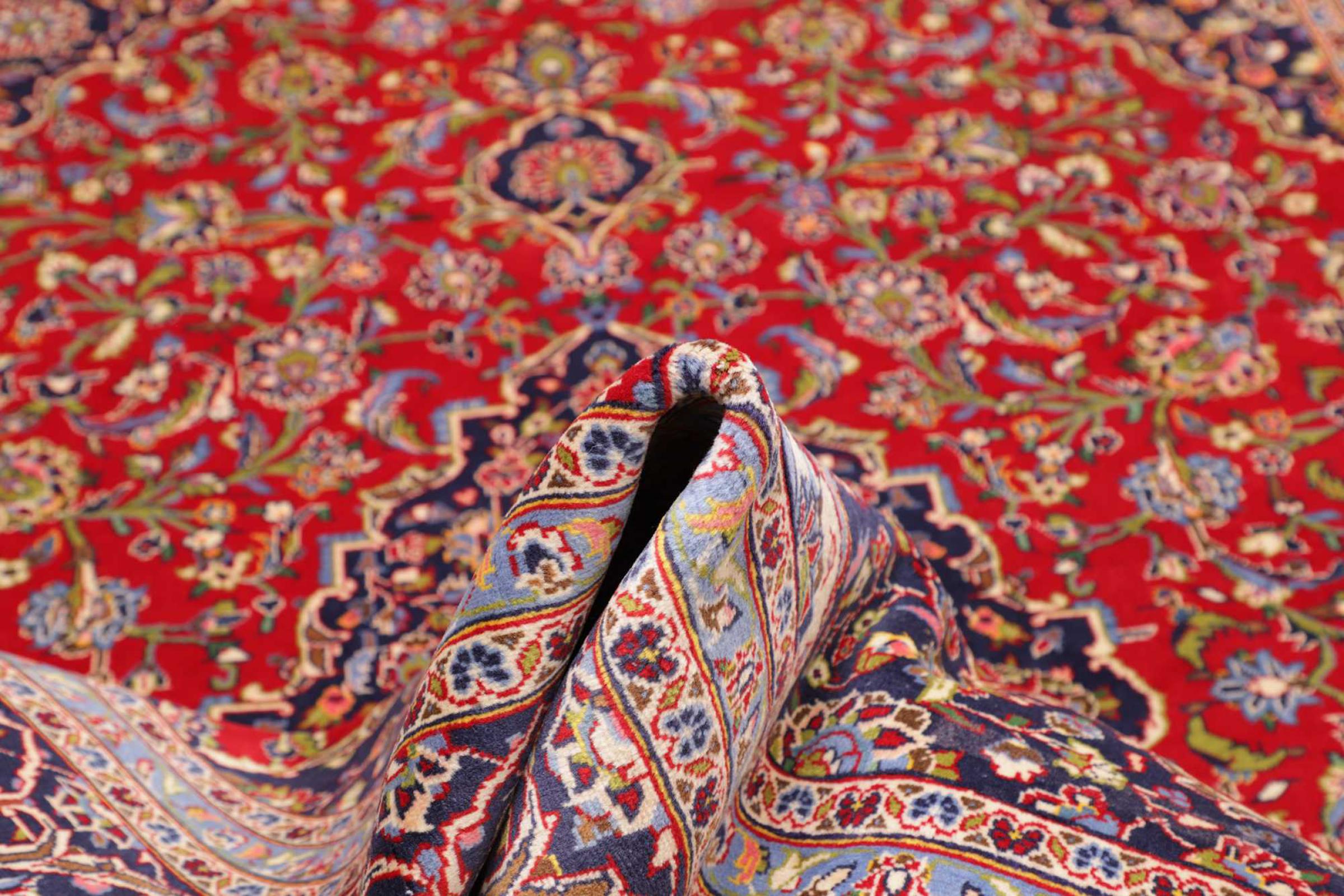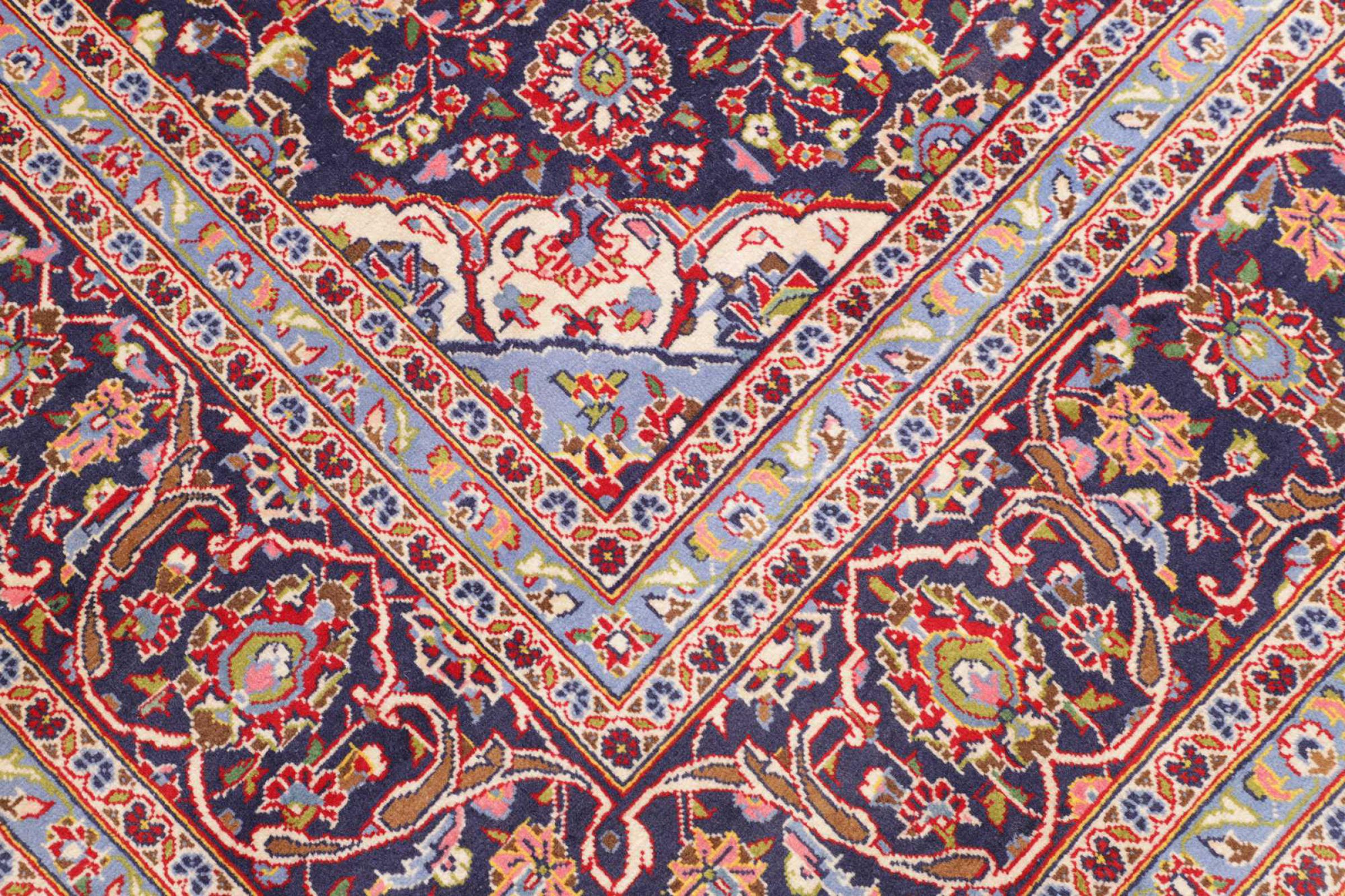 This carpet from Kashan (Keshan) is held in its very traditional and typical Persian design with beautiful ornaments. Kashan rugs are highly popular due to their exceptionally elegant design. These carpets originate from Kashan, a city on the ancient Silk Road. This carpet has been knotted by hand from high grade sheep wool and is going to be an one-of-a-kind highlight in your home.