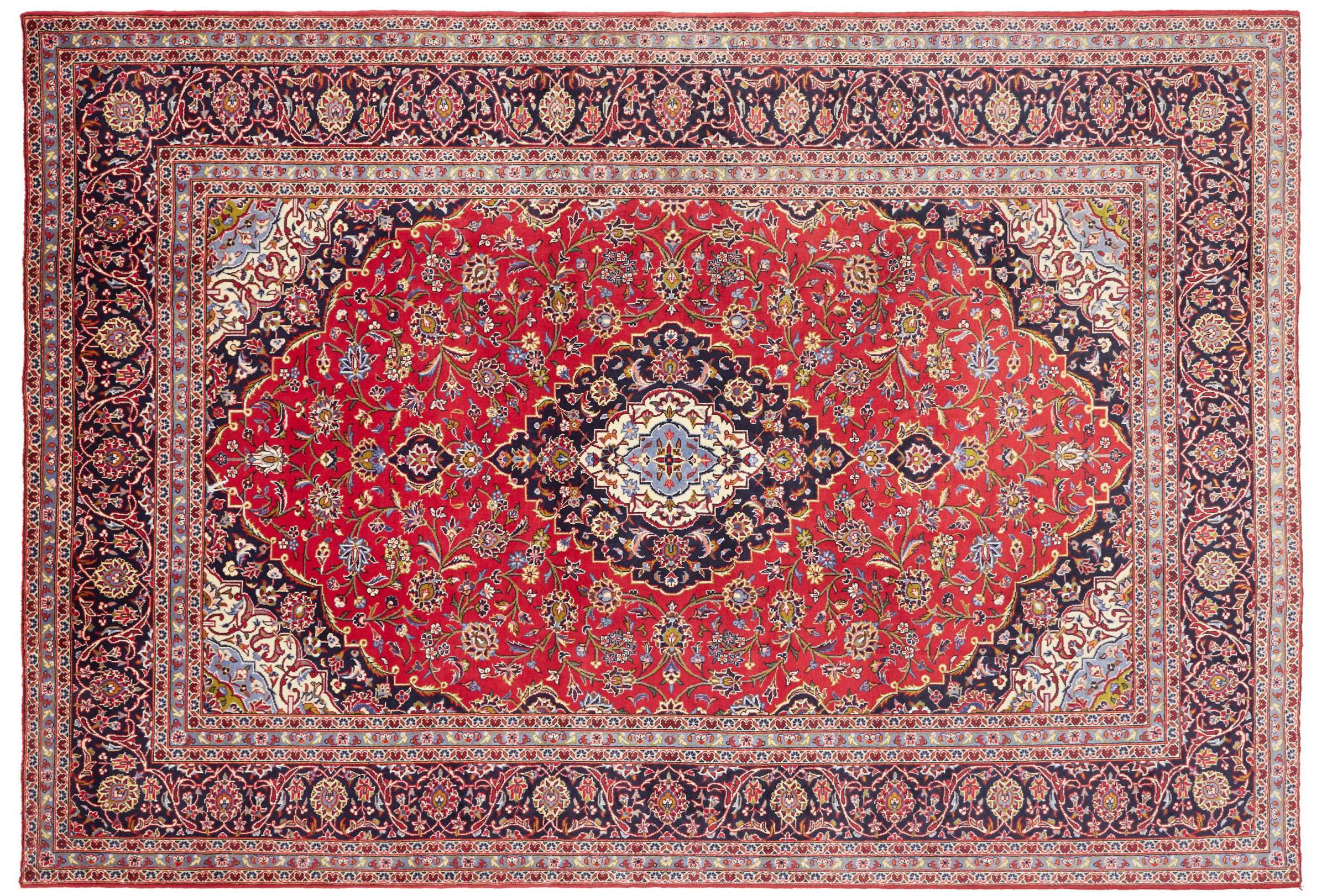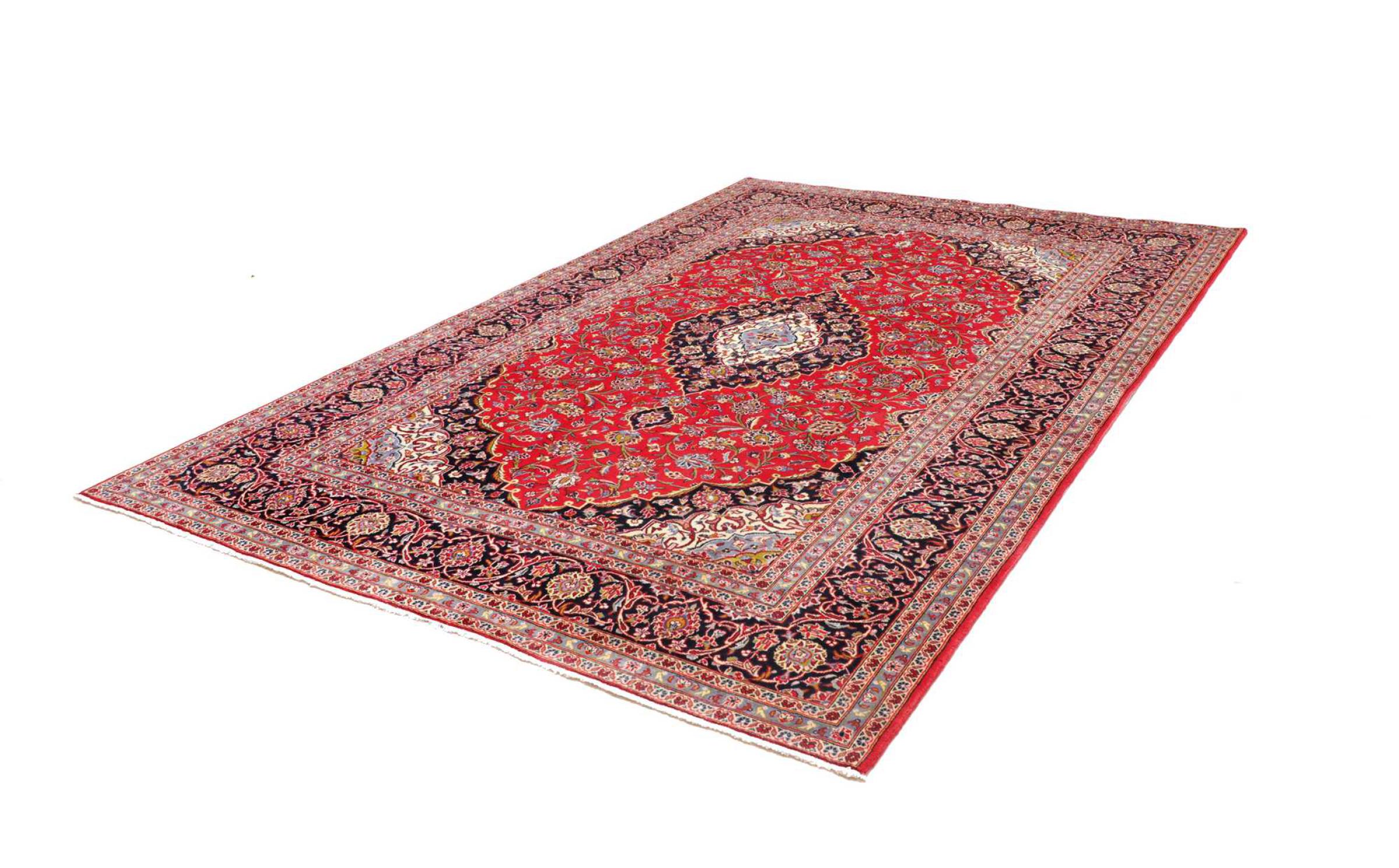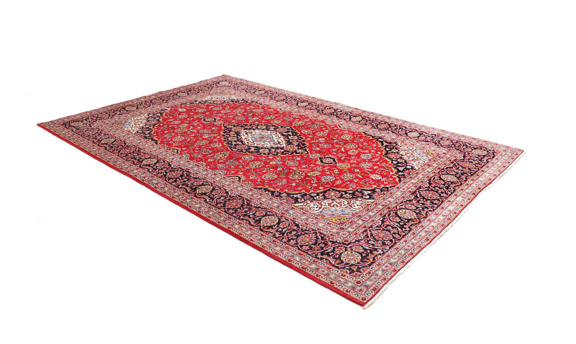 Hand knotted rugs from the city of Kashan (Keshan) are known worldwide. Not only do these Persian rugs have a very popular design, but their quality is undisputedly one of the best. In the Persian Empire the city was considered one of the most important trading places along the famous Silk Road. Kashan rugs usually have a central medallion, floral ornaments and a red background. They are made of high-quality sheep's wool and vegetable dyes.