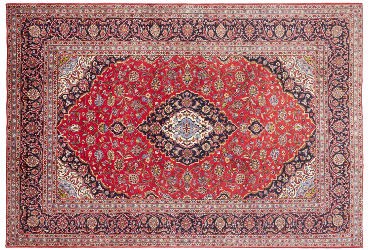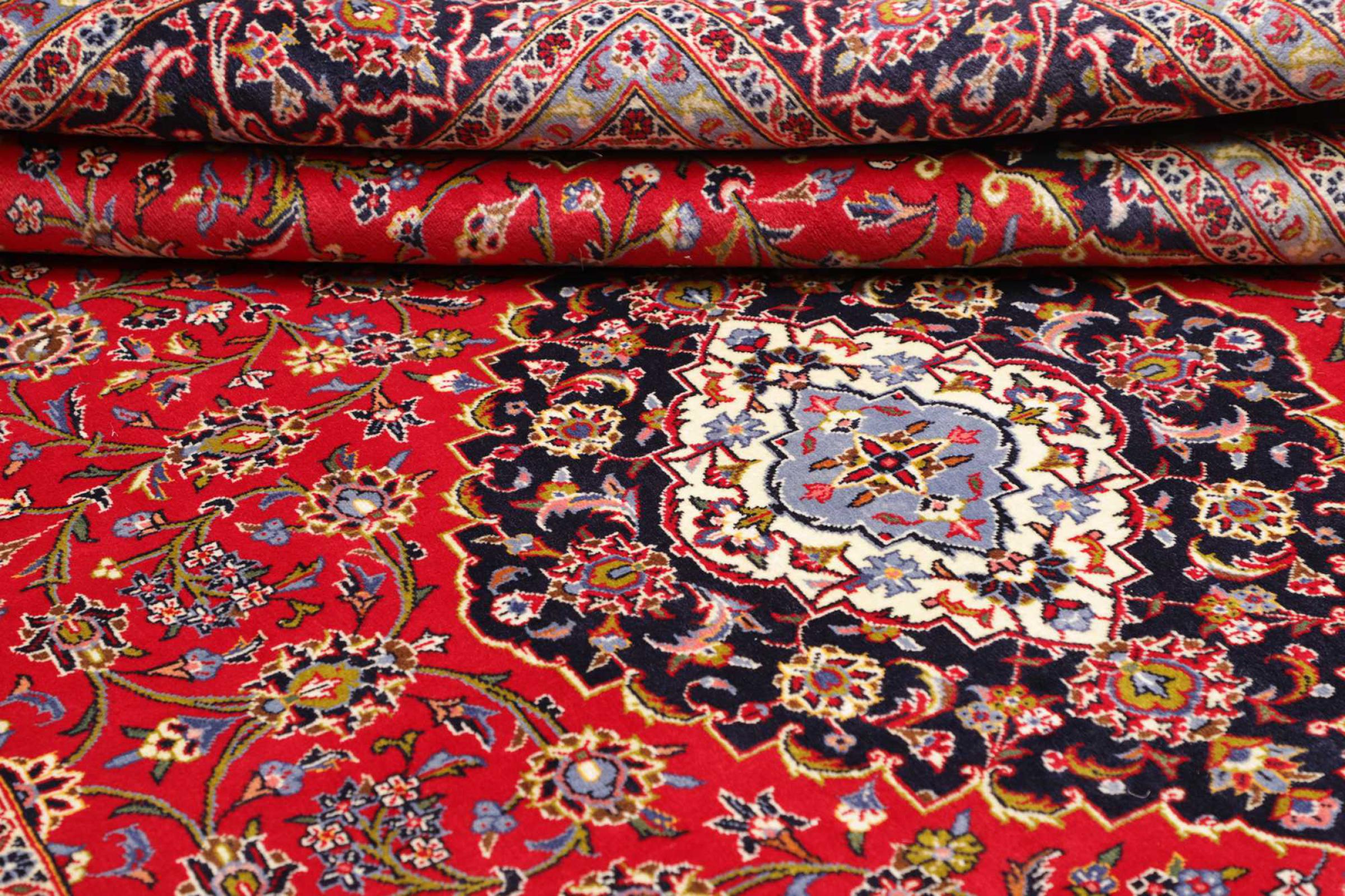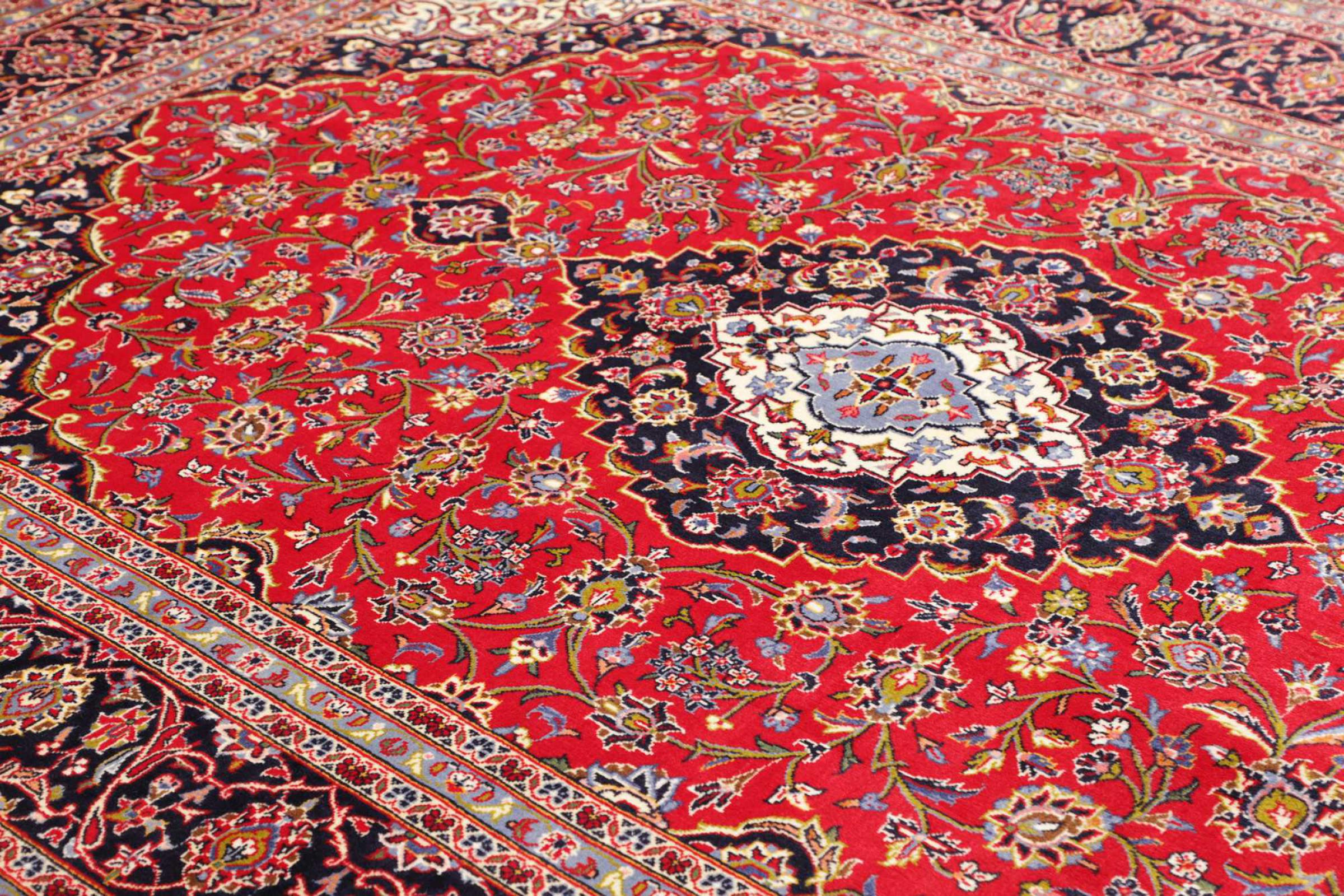 Hand knotted rugs from the city of Kashan (Keshan) are known worldwide. Not only do these Persian rugs have a very popular design, but their quality is undisputedly one of the best. In the Persian Empire the city was considered one of the most important trading places along the famous Silk Road. Kashan rugs usually have a central medallion, floral ornaments and a red background. They are made of high-quality sheep's wool and vegetable dyes.