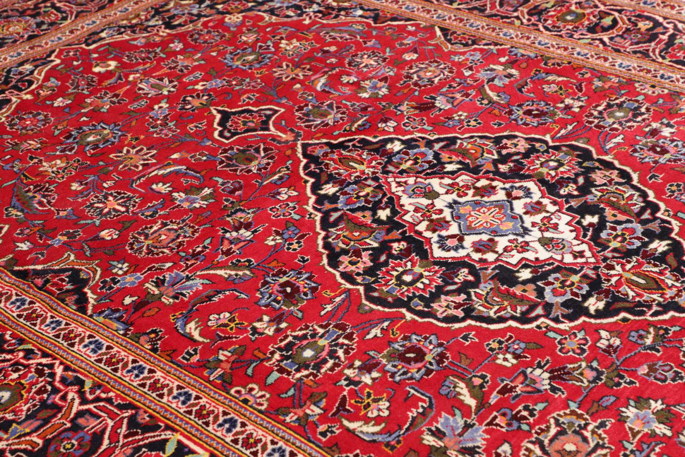 Hand knotted rugs from the city of Kashan (Keshan) are known worldwide. Not only do these Persian rugs have a very popular design, but their quality is undisputedly one of the best. In the Persian Empire the city was considered one of the most important trading places along the famous Silk Road. Kashan rugs usually have a central medallion, floral ornaments and a red background. They are made of high-quality sheep's wool and vegetable dyes.