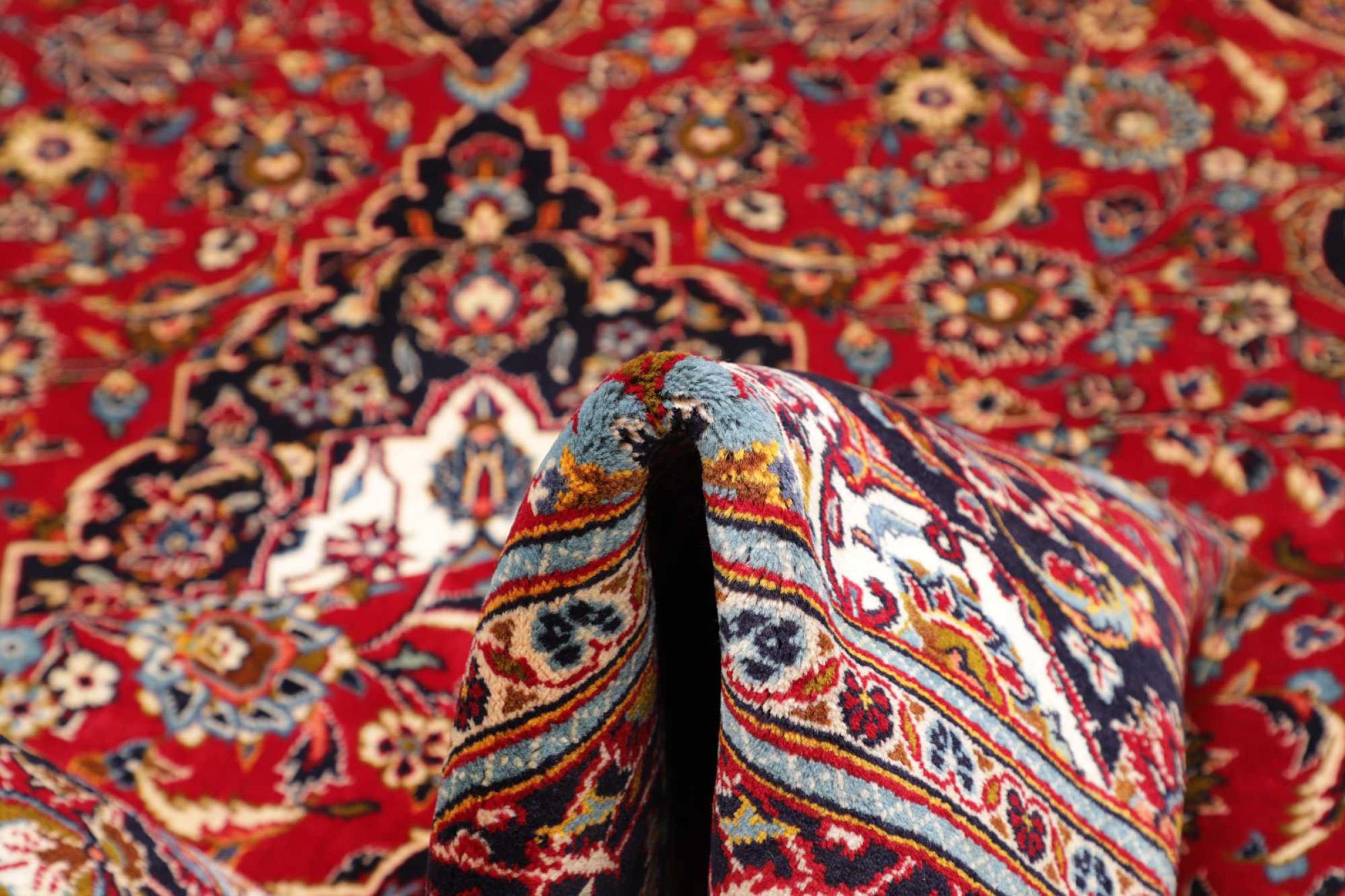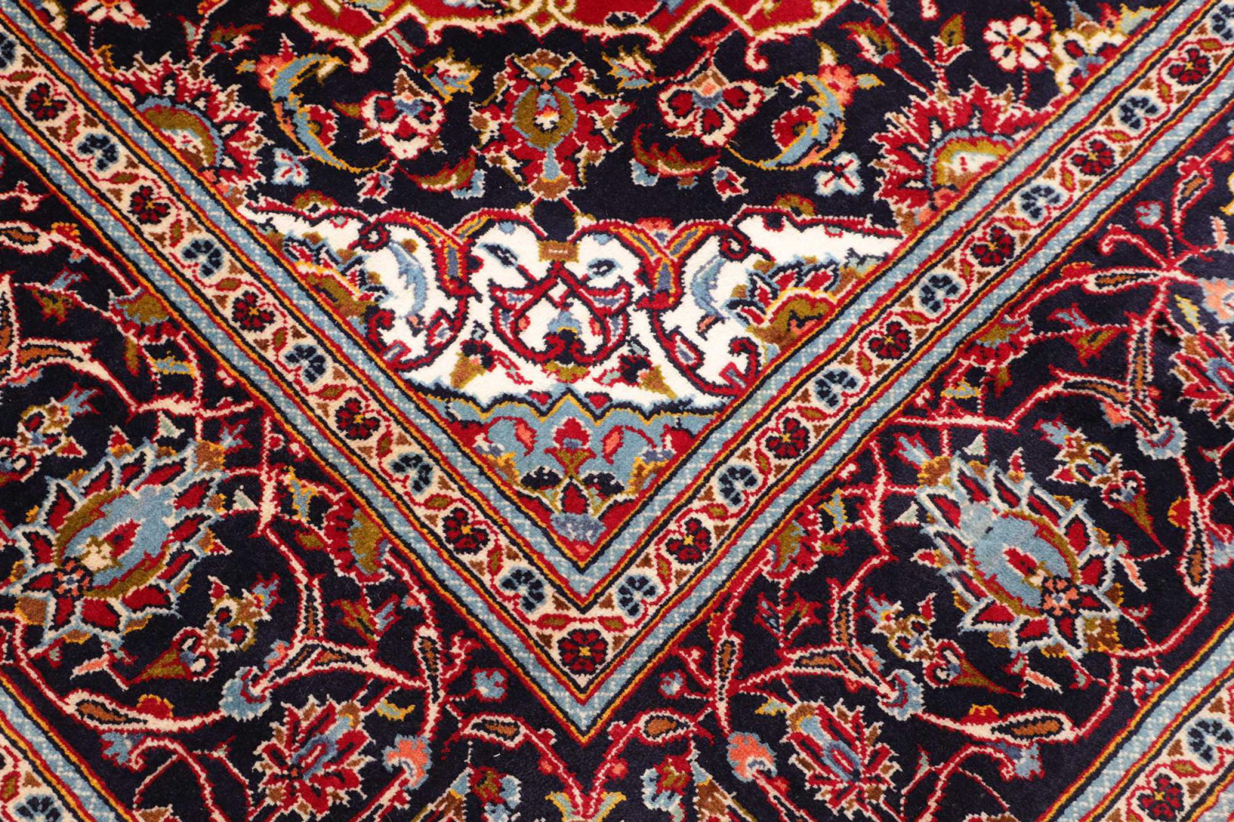 This carpet from Kashan (Keshan) is held in its very traditional and typical Persian design with beautiful ornaments. Kashan rugs are highly popular due to their exceptionally elegant design. These carpets originate from Kashan, a city on the ancient Silk Road. This carpet has been knotted by hand from high grade sheep wool and is going to be an one-of-a-kind highlight in your home.
