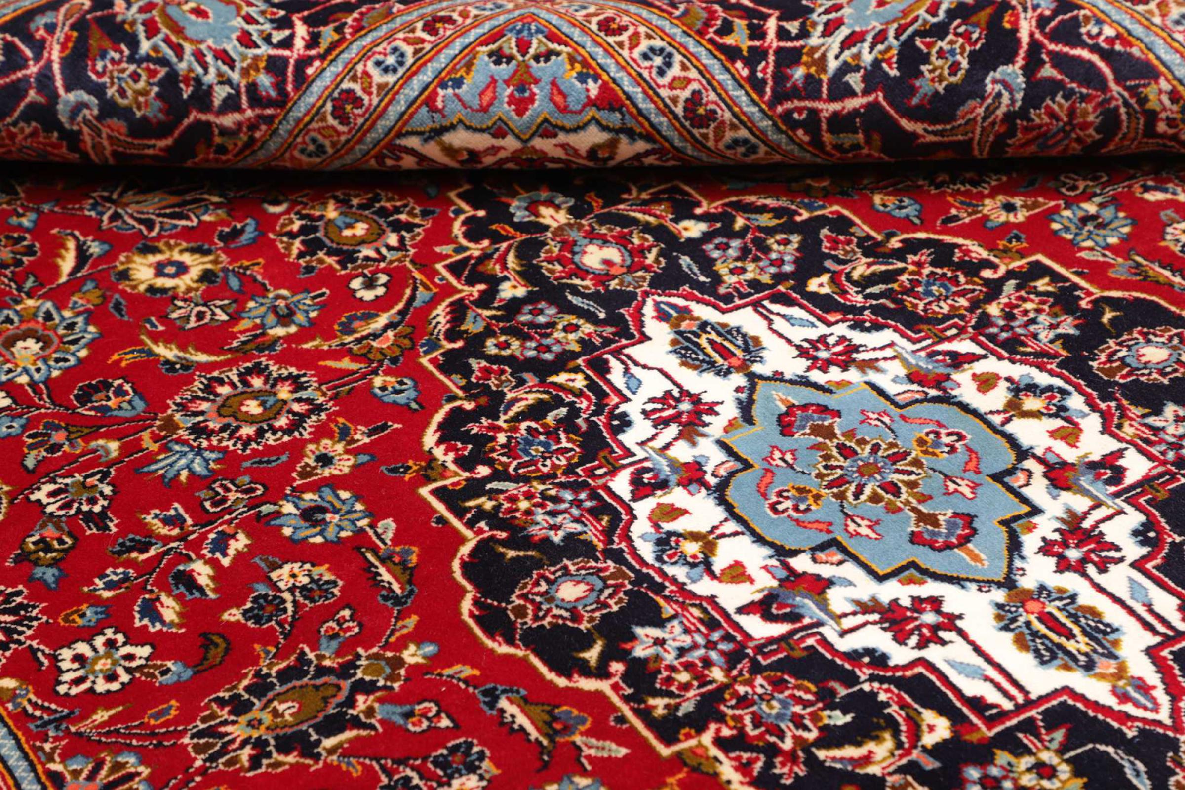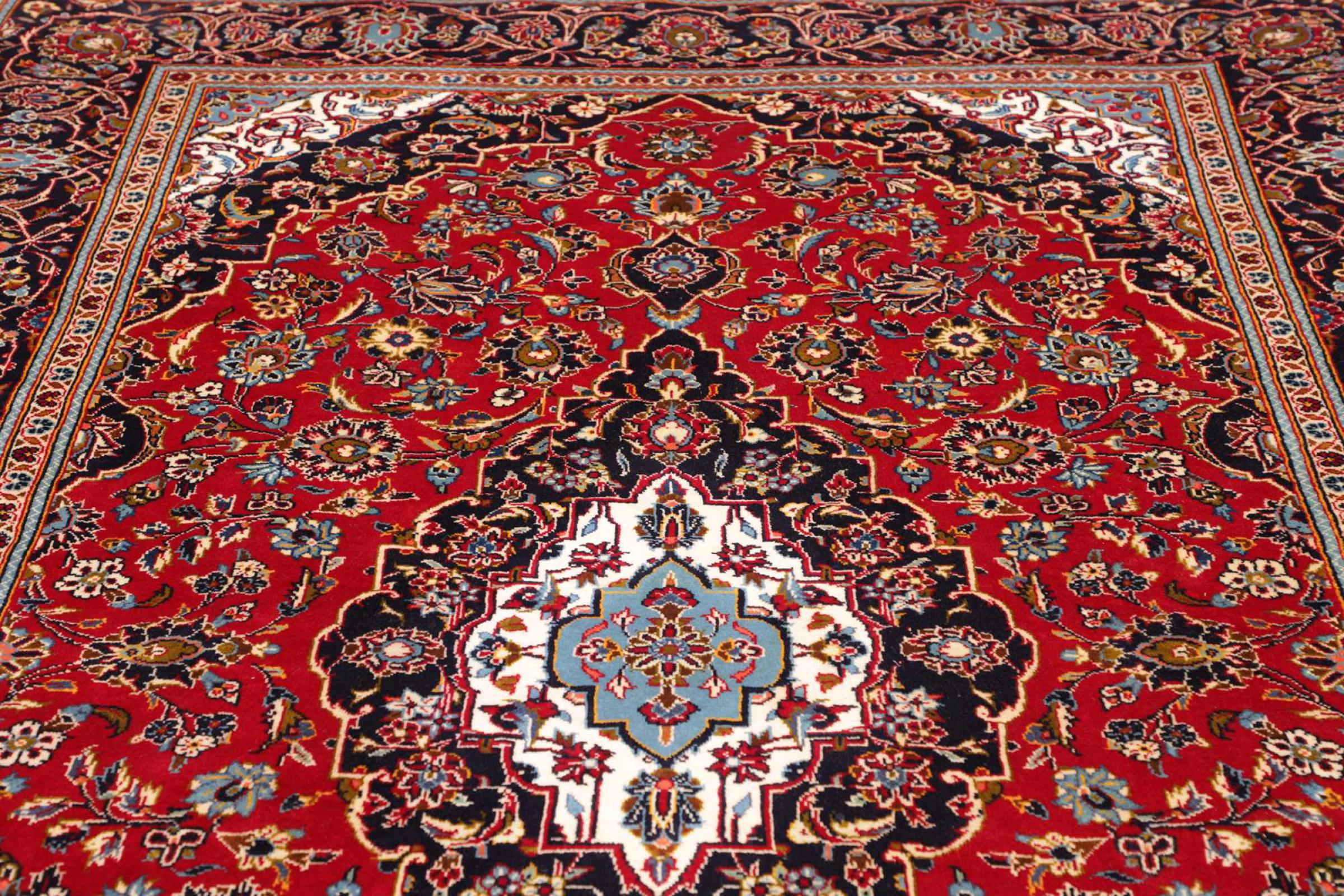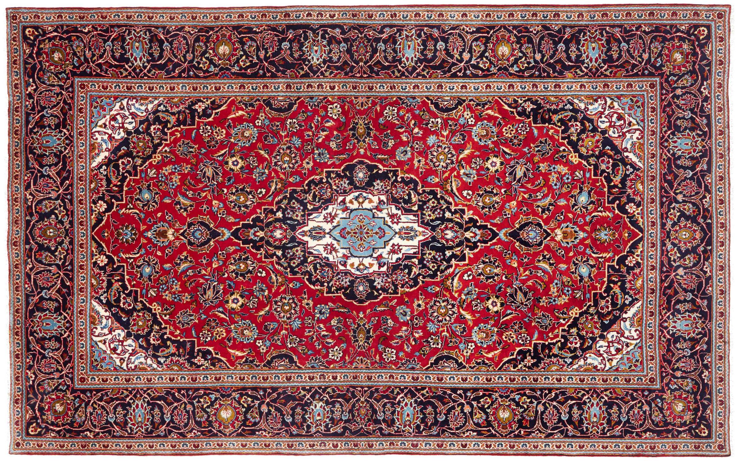 Hand knotted rugs from the city of Kashan (Keshan) are known worldwide. Not only do these Persian rugs have a very popular design, but their quality is undisputedly one of the best. In the Persian Empire the city was considered one of the most important trading places along the famous Silk Road. Kashan rugs usually have a central medallion, floral ornaments and a red background. They are made of high-quality sheep's wool and vegetable dyes.