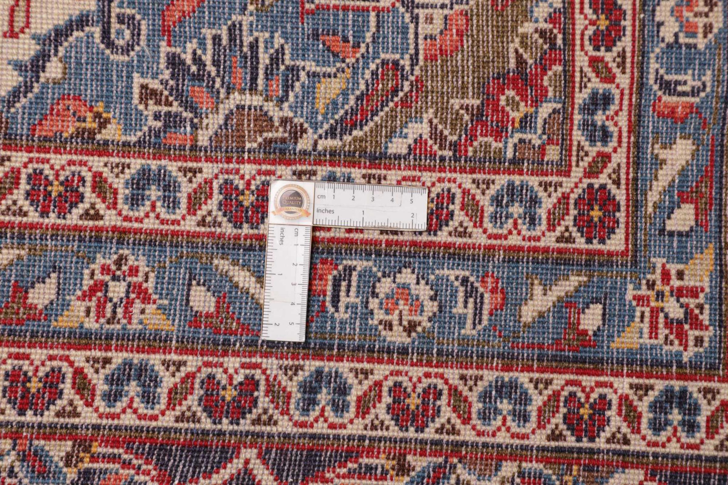 This rug is made of hand spun sheep wool of the highest quality. Especially in Iran (former Persia), Afghanistan and Pakistan wool is still spun by hand before the actual knotting of the rug begins. Wool has proven itself as a natural and extremely hard-wearing material over centuries. Among other things, it has dirt-repellent and heat-insulating properties. At the same time, wool is incomparably soft and has a natural shine.
