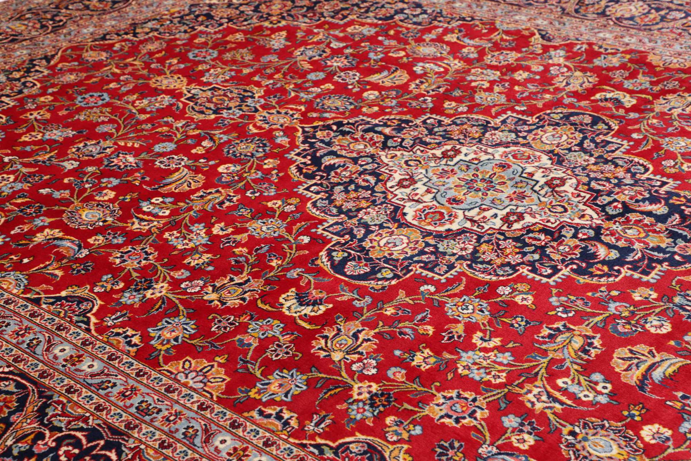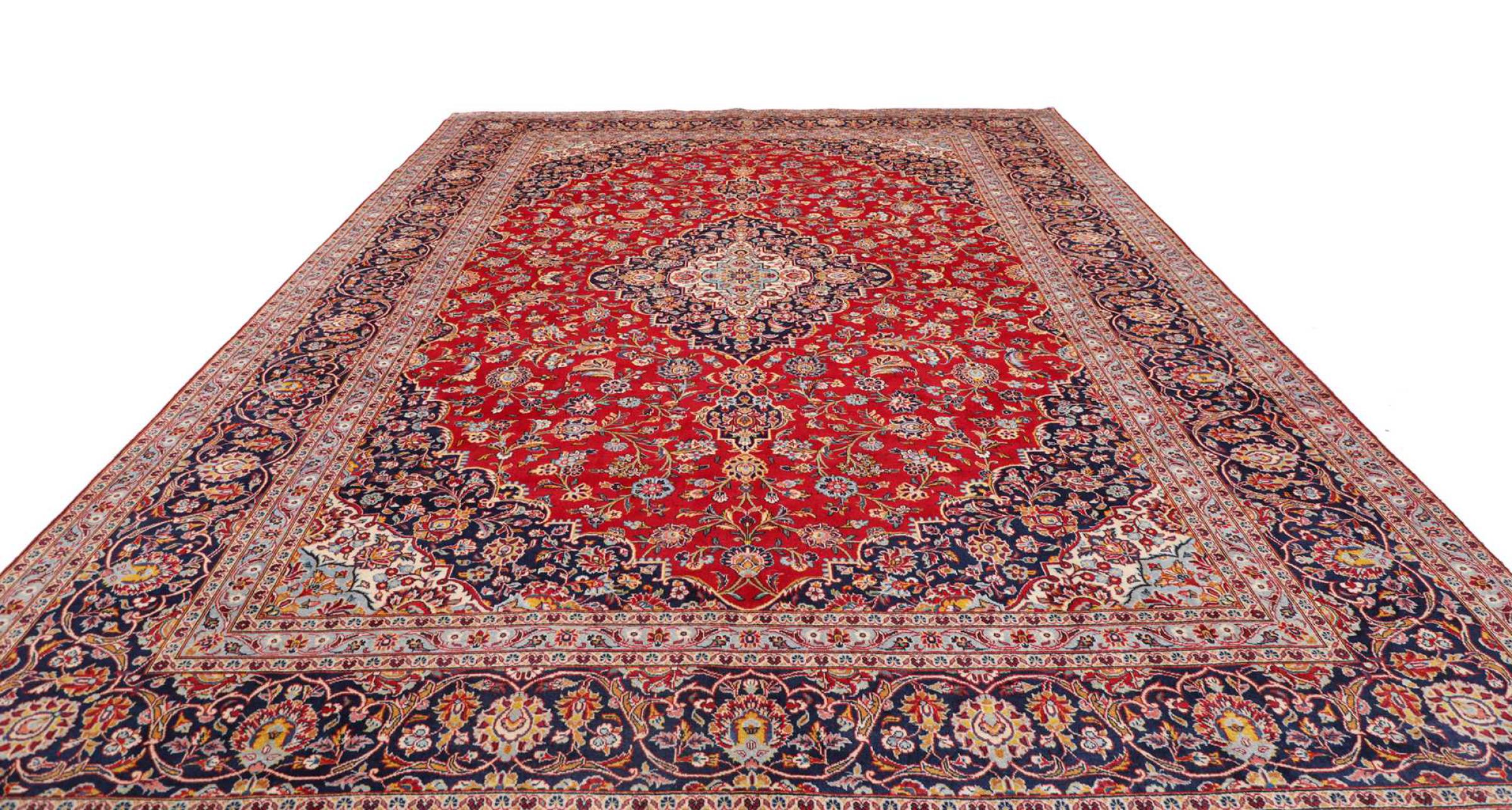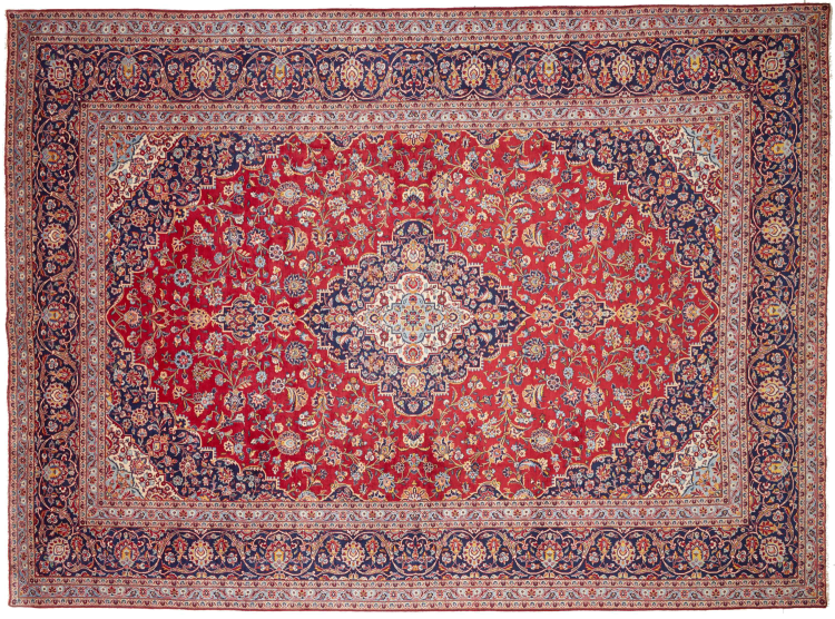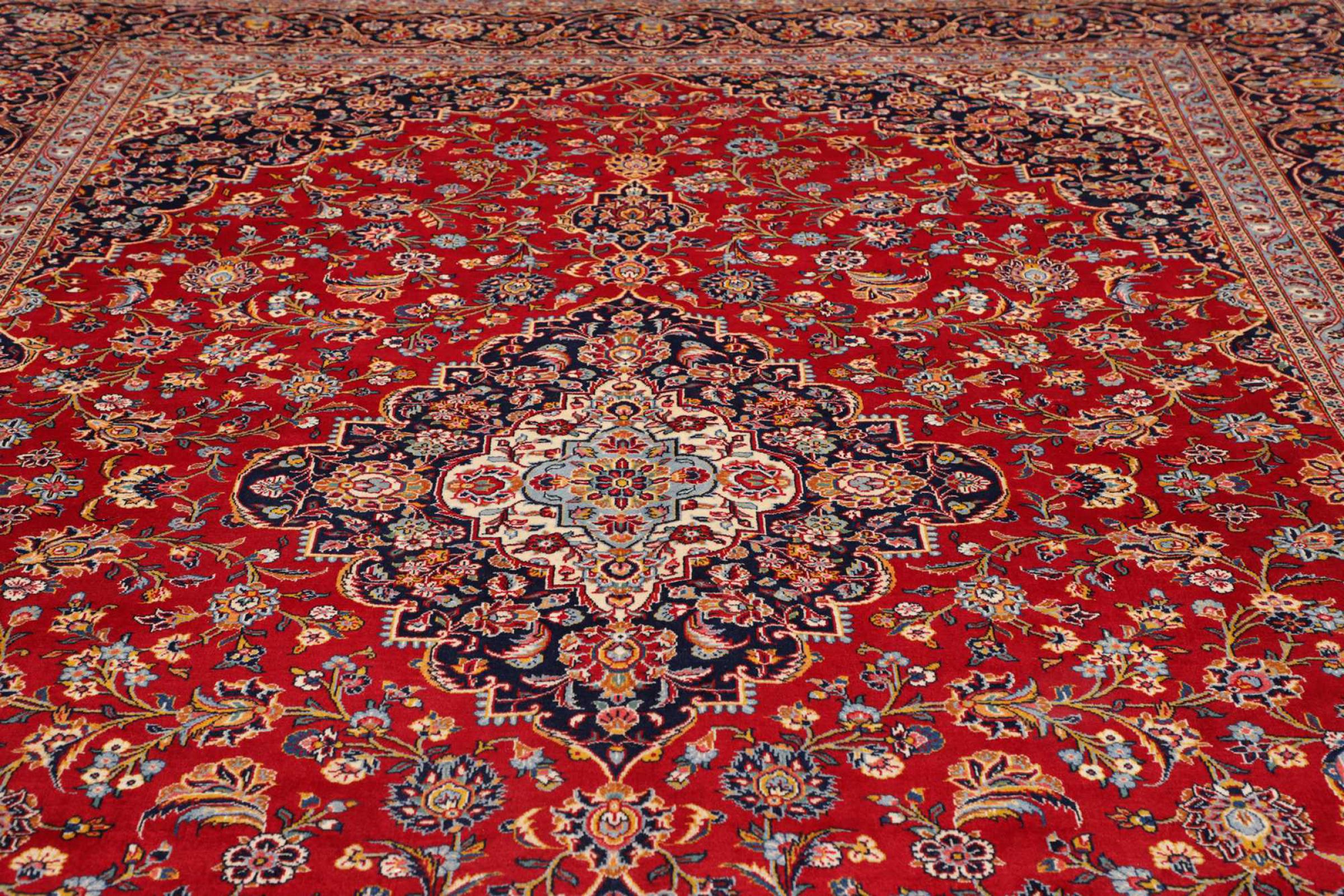 Hand knotted rugs from the city of Kashan (Keshan) are known worldwide. Not only do these Persian rugs have a very popular design, but their quality is undisputedly one of the best. In the Persian Empire the city was considered one of the most important trading places along the famous Silk Road. Kashan rugs usually have a central medallion, floral ornaments and a red background. They are made of high-quality sheep's wool and vegetable dyes.