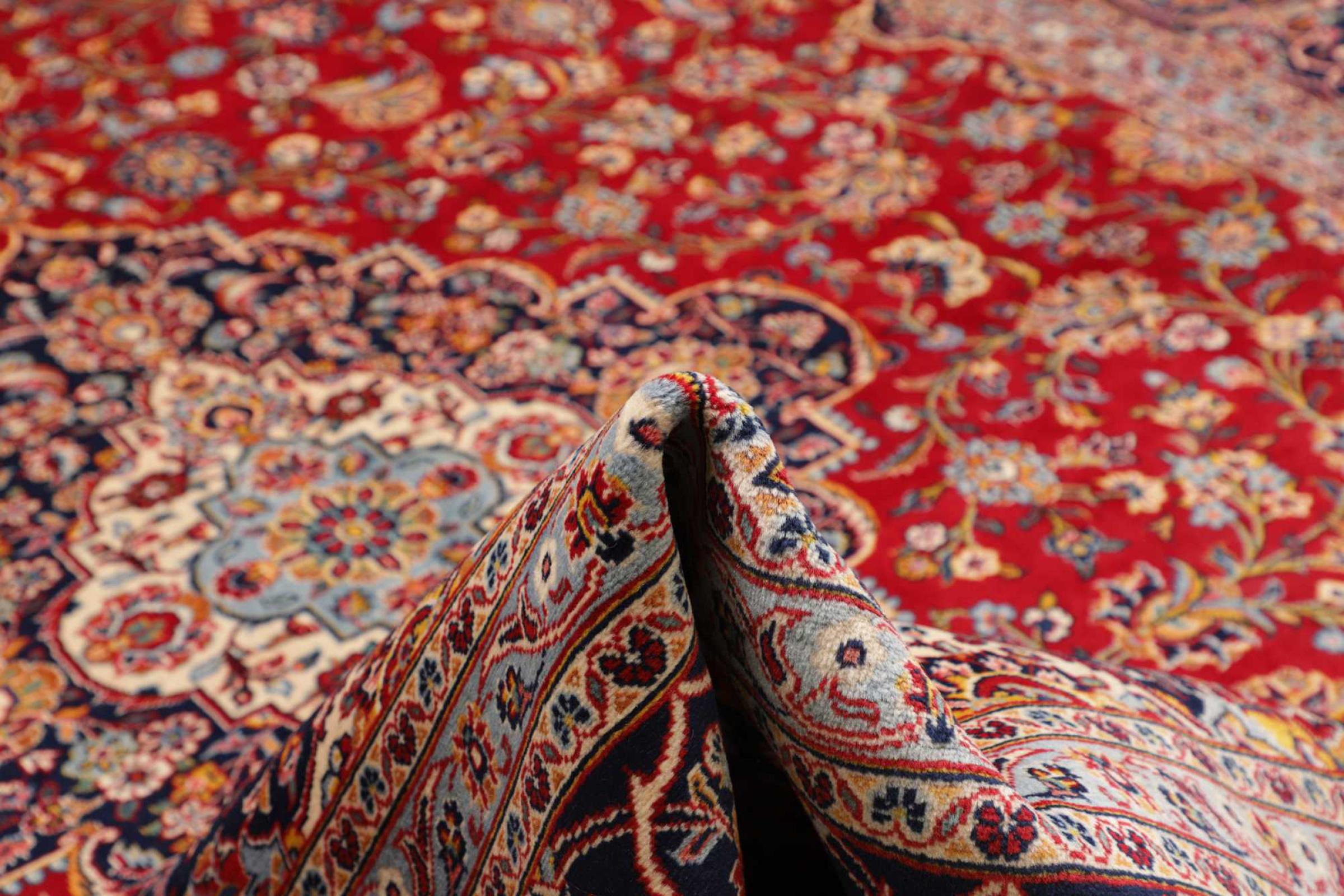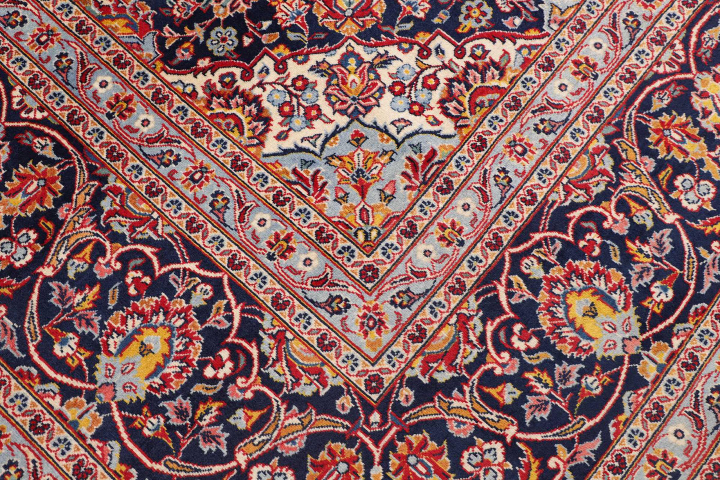 This carpet from Kashan (Keshan) is held in its very traditional and typical Persian design with beautiful ornaments. Kashan rugs are highly popular due to their exceptionally elegant design. These carpets originate from Kashan, a city on the ancient Silk Road. This carpet has been knotted by hand from high grade sheep wool and is going to be an one-of-a-kind highlight in your home.