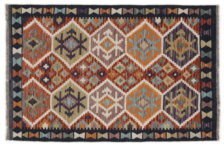 These kilim rugs show a decisive difference to hand-knotted rugs - they are woven by hand. Thus, they do not have a high pile of wool and are often flatter and rougher than knotted wool rugs. Their making is less elaborate and so they are usually much more affordable. As an advantage, kilim rugs are also much lighter and can be laid out from the front and back side. Hand-woven kilims originally come from the former Persia and are now also often made in Afghanistan. They have rather simple, straightforward patterns, which are determined by their weaving technique.