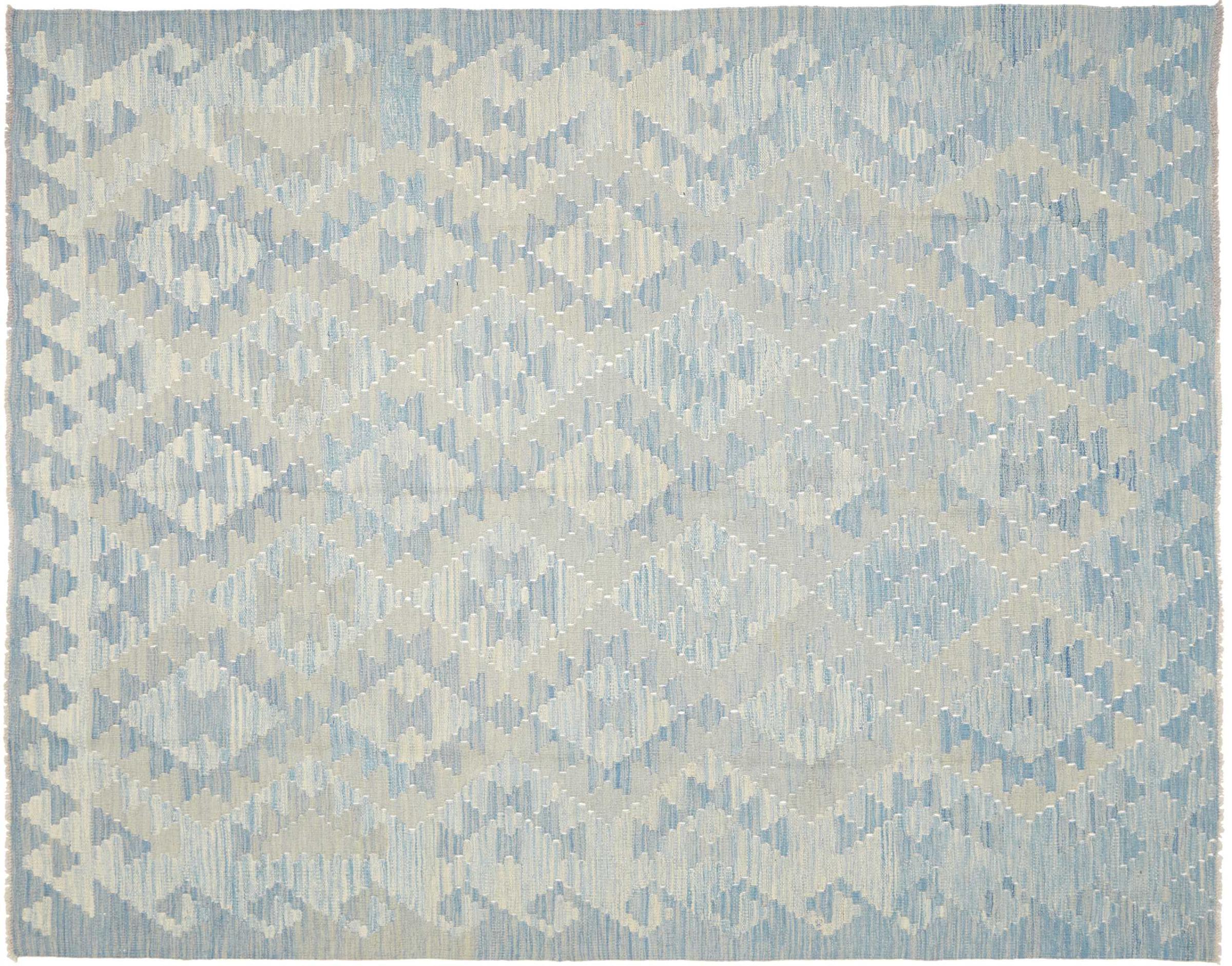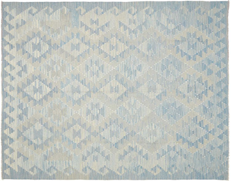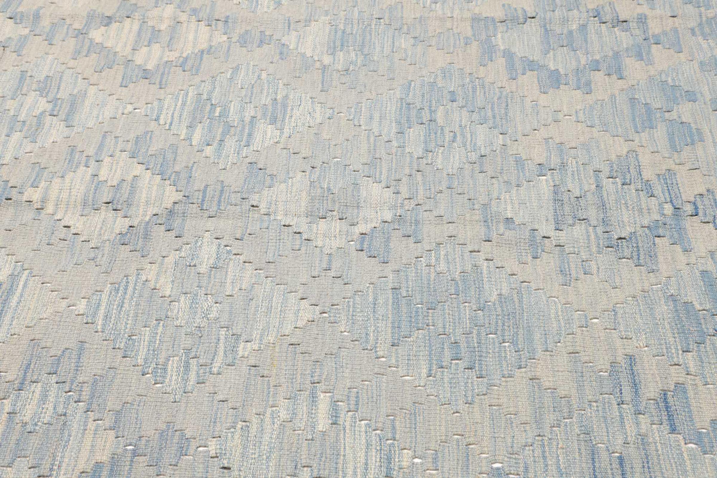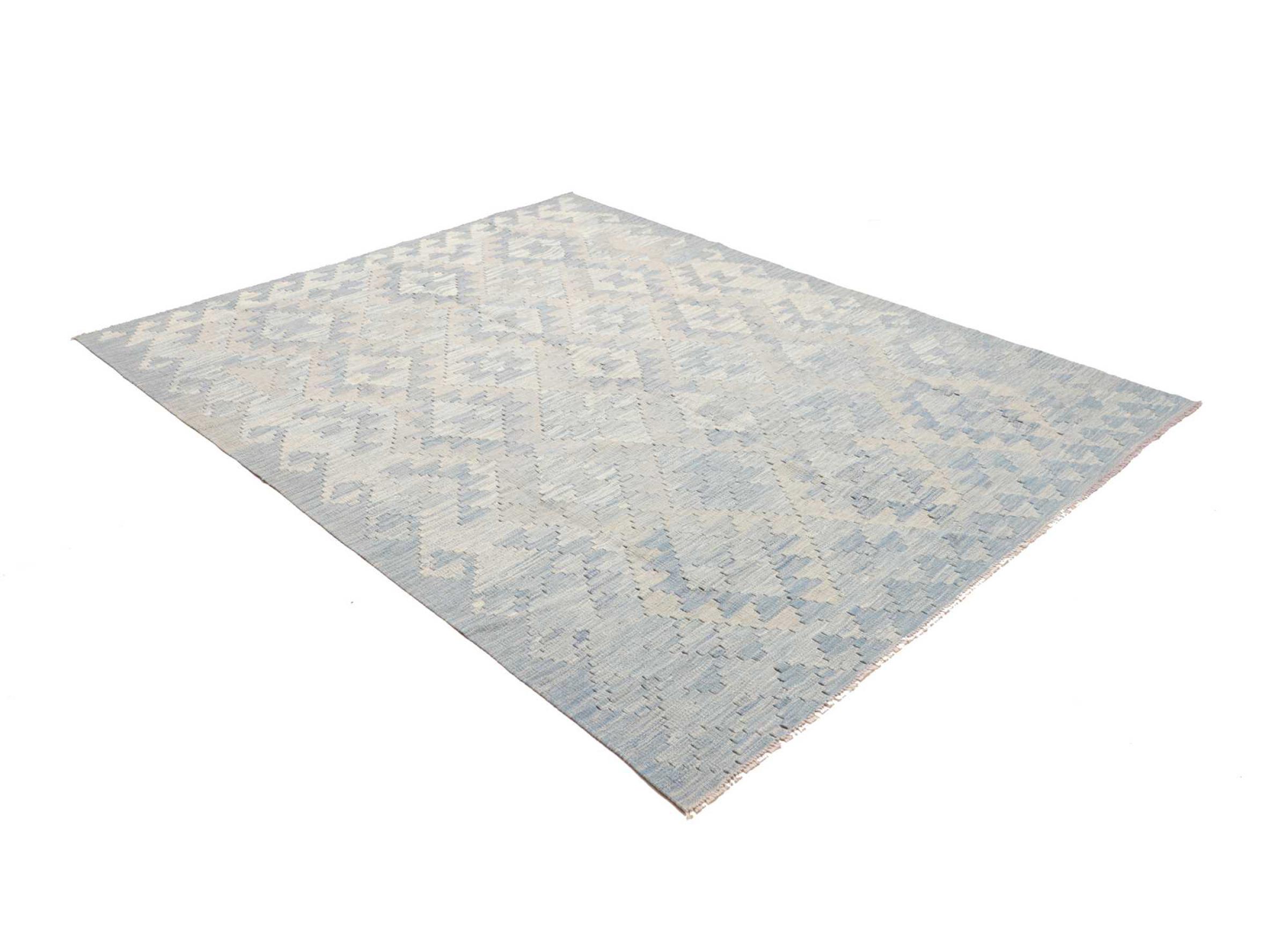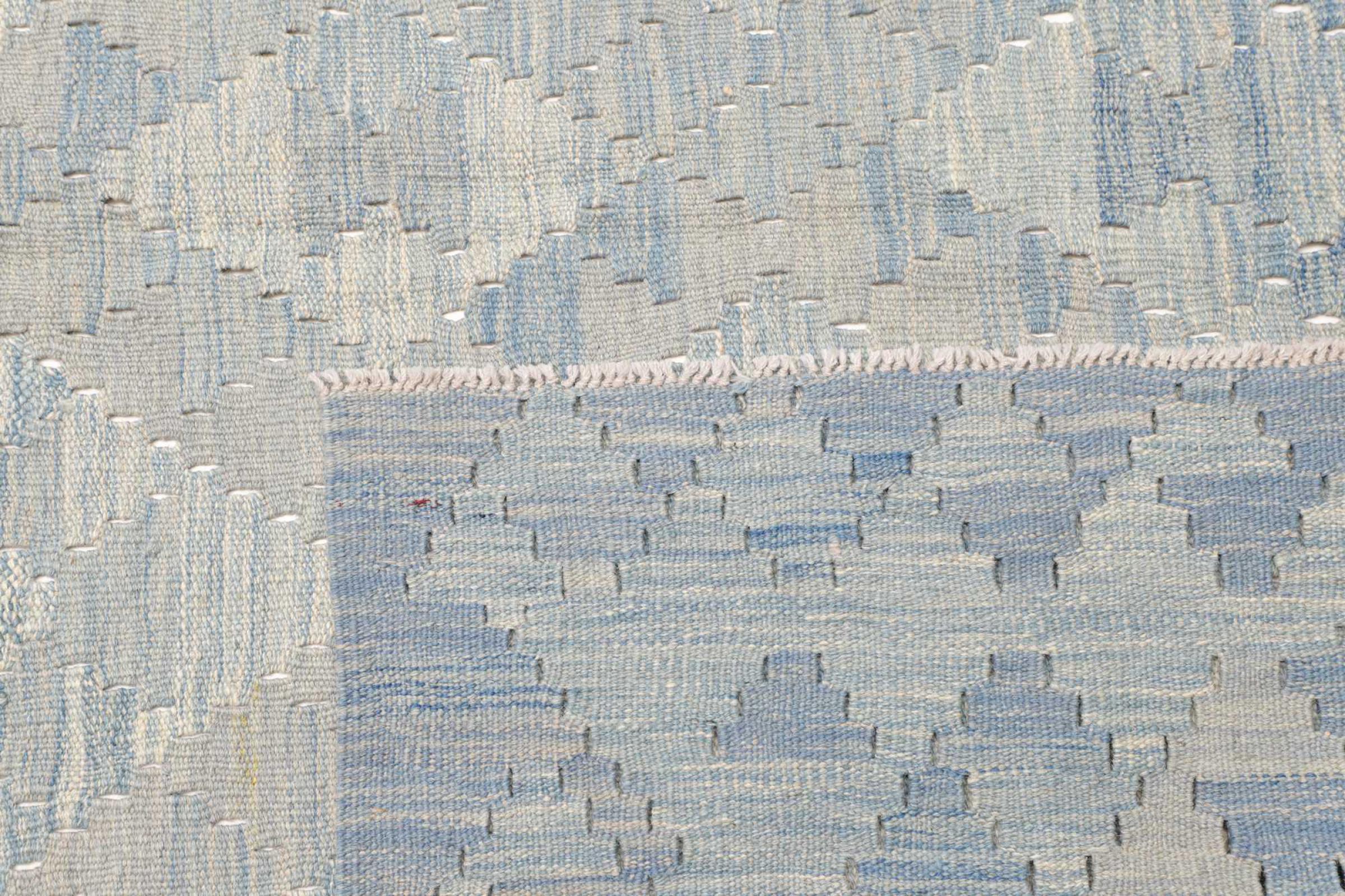 This rug was made as a flat weave by hand on a loom. Flatweave is the term used to describe rugs that have no pile. As the name promises, these rugs are woven and not knotted. This results in a flat rug with a structured surface. Flatweaves are not as soft and usually thinner than knotted rugs. At the same time they are much less complex to manufacture and can usually be laid out from both sides (front and back). Their patterns are usually geometric, which is determined by the fabric.