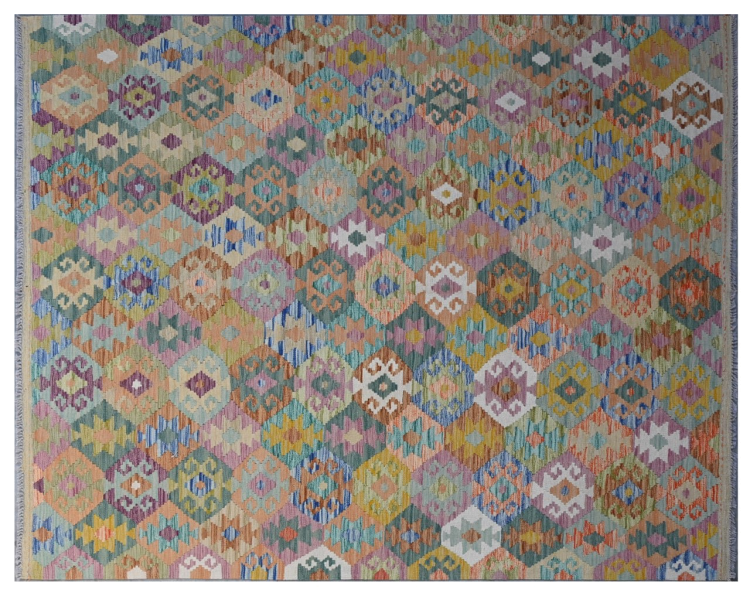 This rug was made as a flat weave by hand on a loom. Flatweave is the term used to describe rugs that have no pile. As the name promises, these rugs are woven and not knotted. This results in a flat rug with a structured surface. Flatweaves are not as soft and usually thinner than knotted rugs. At the same time they are much less complex to manufacture and can usually be laid out from both sides (front and back). Their patterns are usually geometric, which is determined by the fabric.