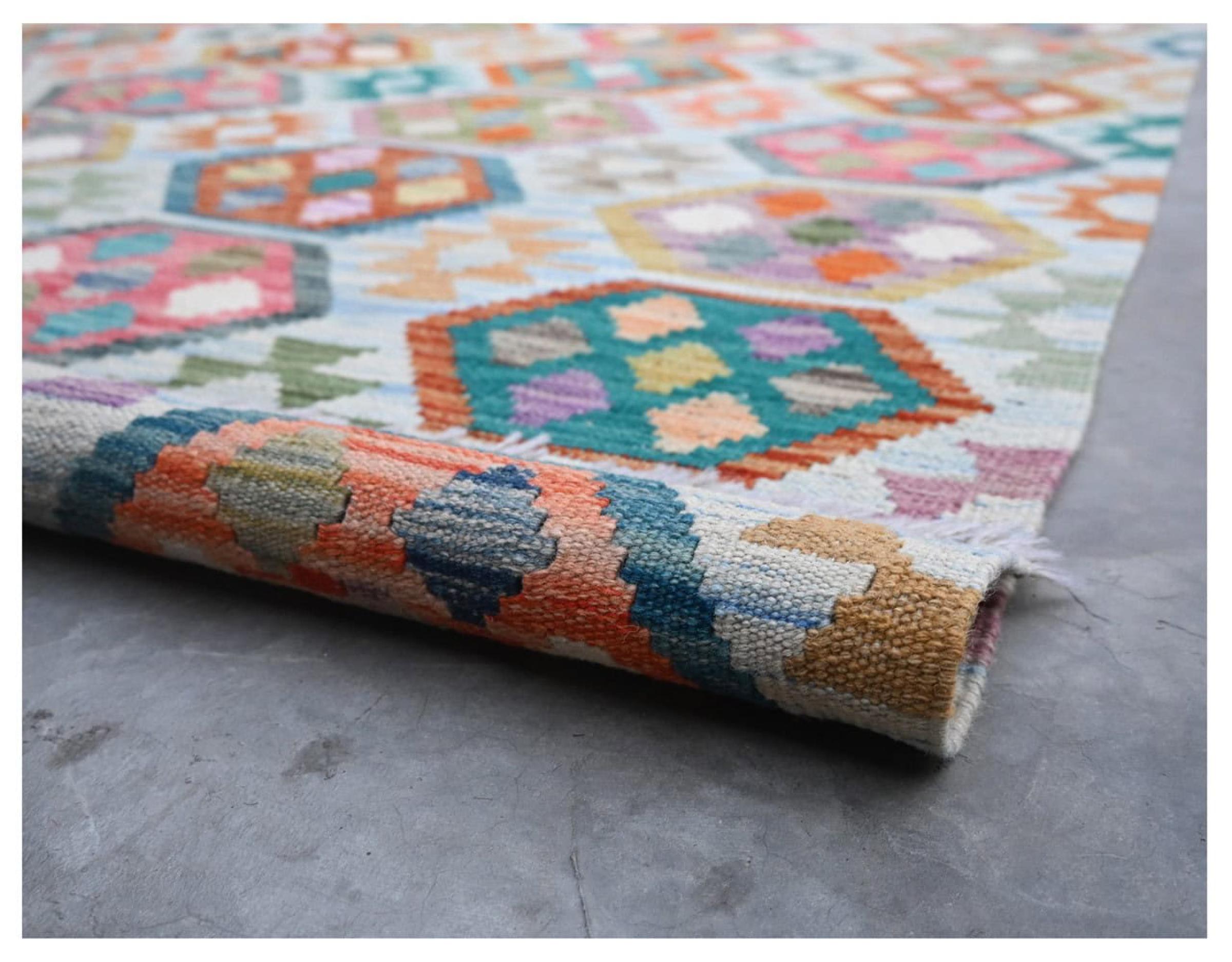 This Afghan carpet is pure Orient. It shines with its colours and touches eyes as well as hearts. If you are searching a beautiful carpet for different living situations, you will take much pleasure with it.
