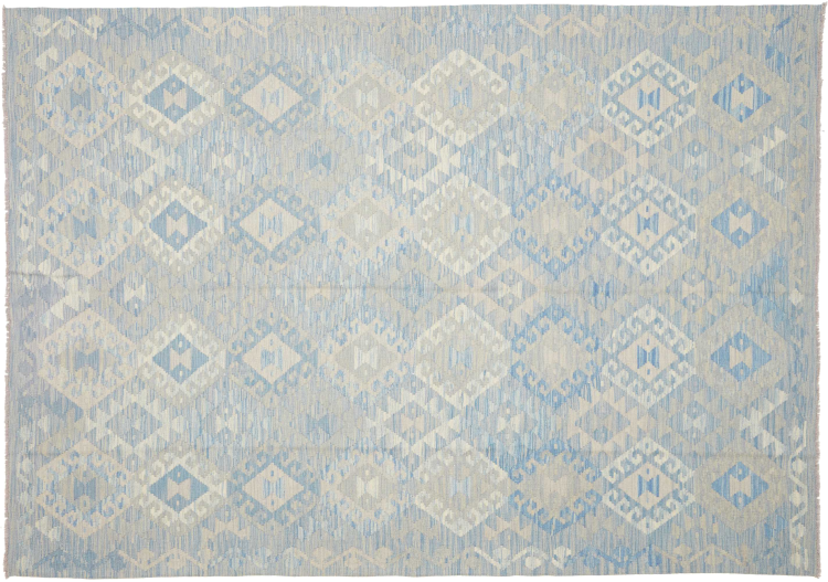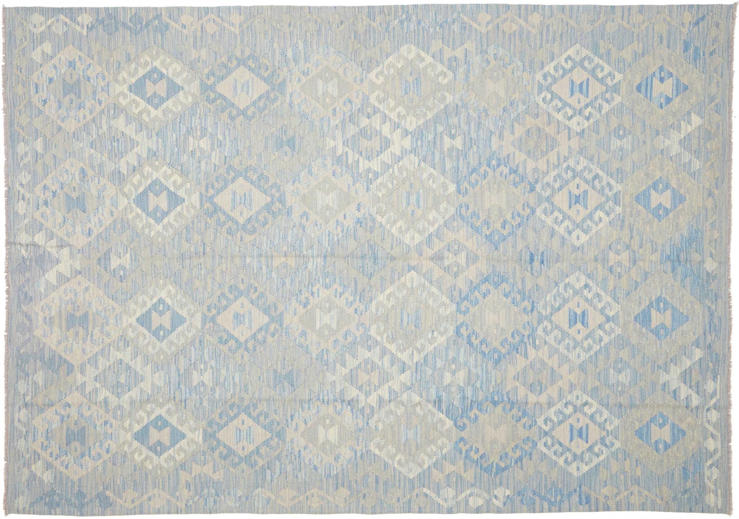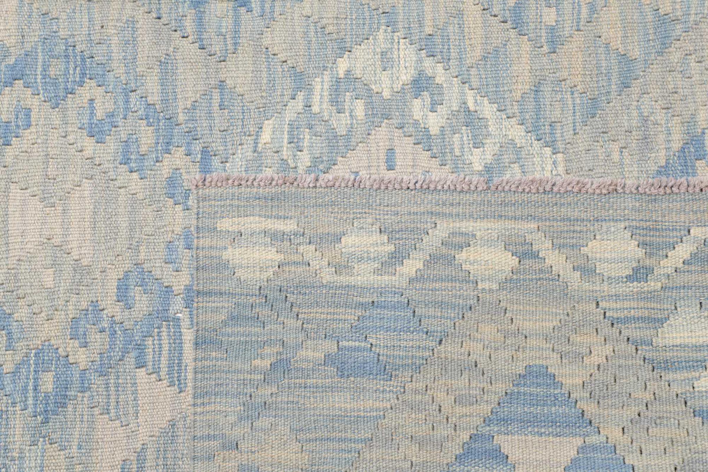 This rug was made as a flat weave by hand on a loom. Flatweave is the term used to describe rugs that have no pile. As the name promises, these rugs are woven and not knotted. This results in a flat rug with a structured surface. Flatweaves are not as soft and usually thinner than knotted rugs. At the same time they are much less complex to manufacture and can usually be laid out from both sides (front and back). Their patterns are usually geometric, which is determined by the fabric.