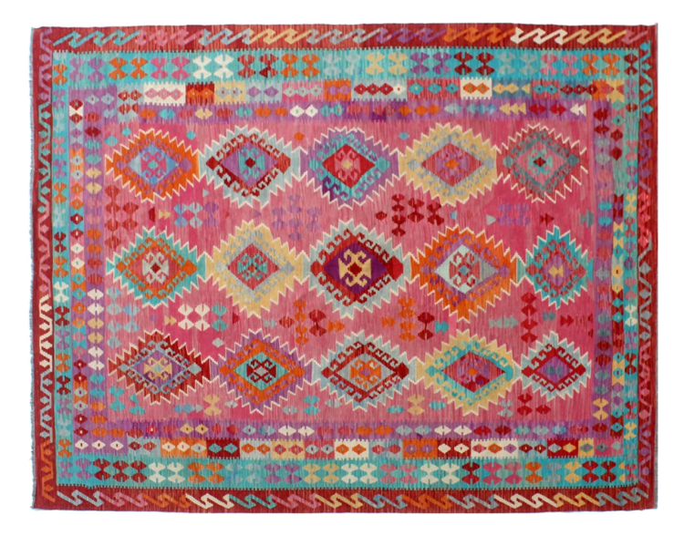 These kilim rugs show a decisive difference to hand-knotted rugs - they are woven by hand. Thus, they do not have a high pile of wool and are often flatter and rougher than knotted wool rugs. Their making is less elaborate and so they are usually much more affordable. As an advantage, kilim rugs are also much lighter and can be laid out from the front and back side. Hand-woven kilims originally come from the former Persia and are now also often made in Afghanistan. They have rather simple, straightforward patterns, which are determined by their weaving technique.