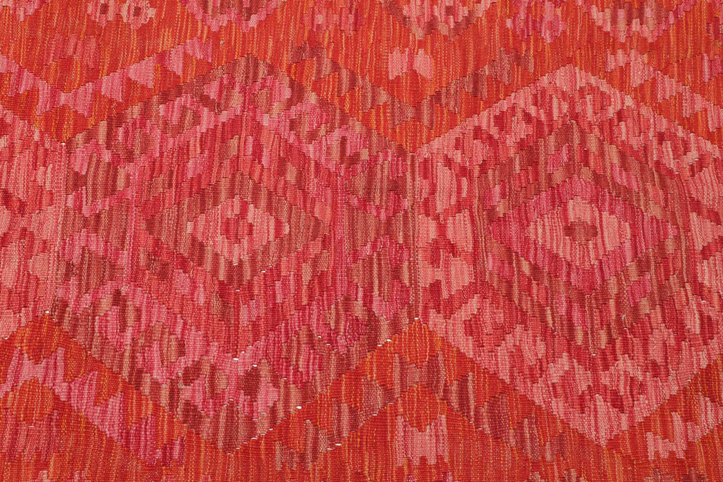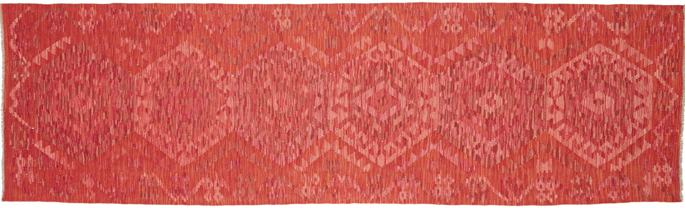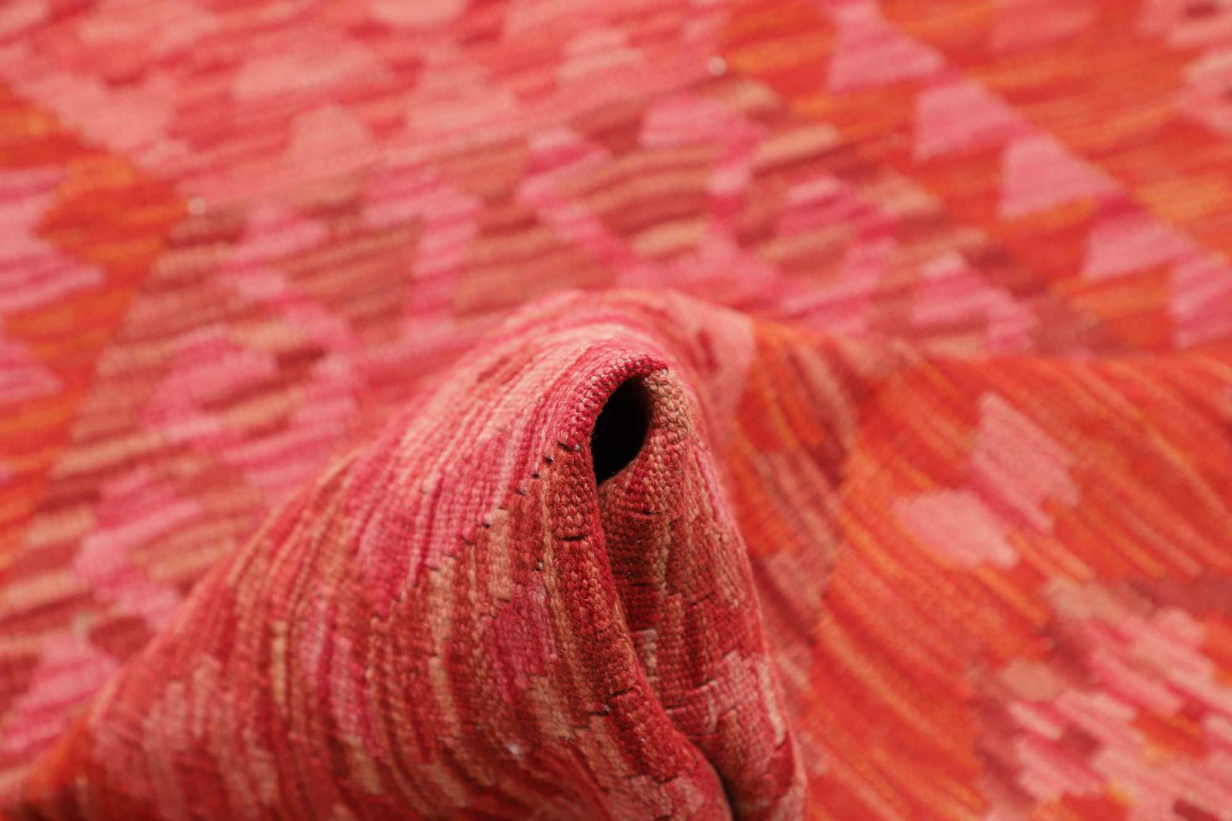 This handwoven Kilim Afghan is a wonderful and unique piece of art. Hard to believe that these modern colours and patterns have already been used centuries ago. This carpet has been woven by hand in old tradition in Afghanistan. It delivers a portion of contemporary history, which you won't find in this specific design a second time. It consists of high-grade natural wool and gives your home a personalised touch.