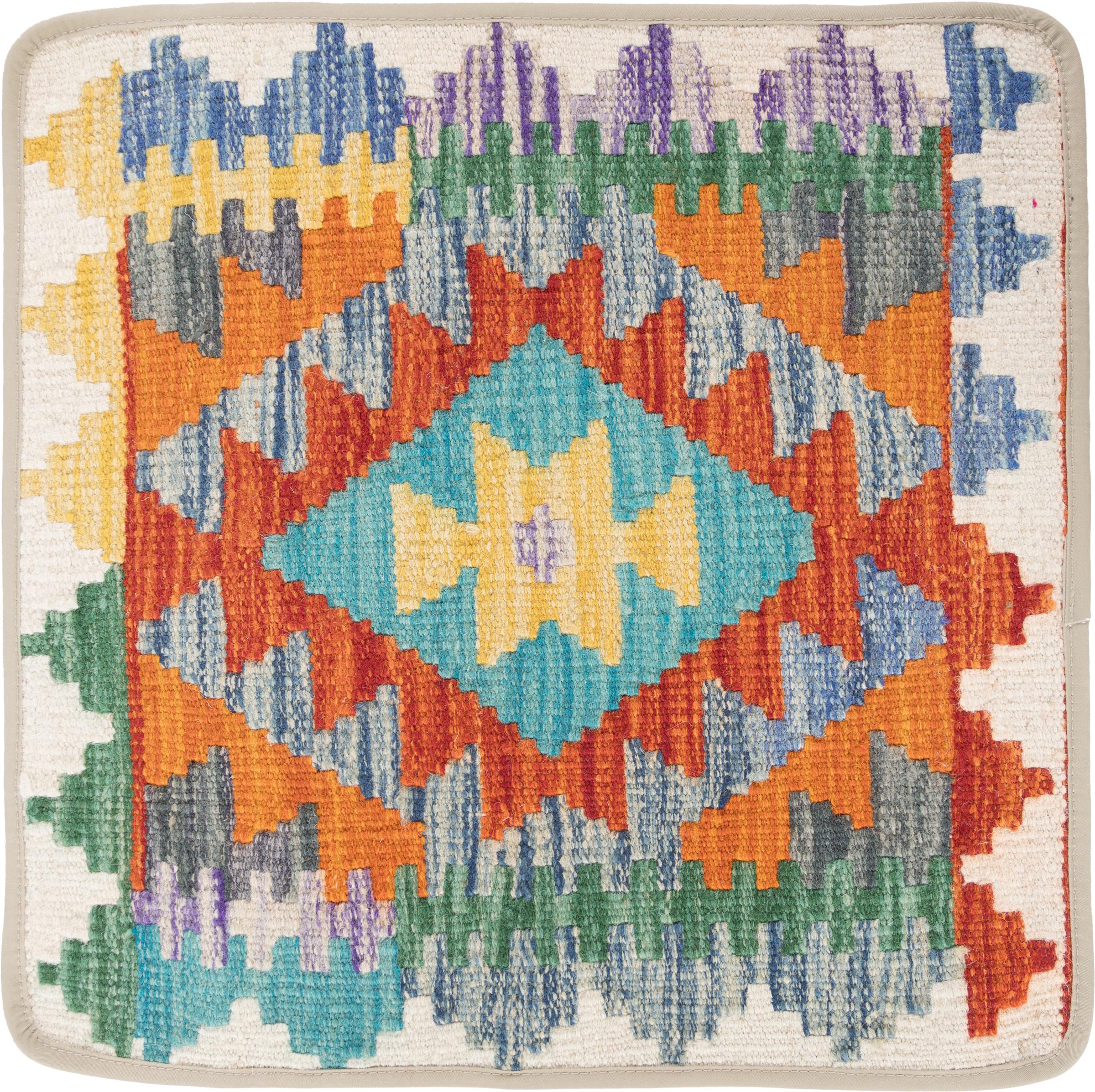 This handwoven Kilim Afghan is a wonderful and unique piece of art. Hard to believe that these modern colours and patterns have already been used centuries ago. This carpet has been woven by hand in old tradition in Afghanistan. It delivers a portion of contemporary history, which you won't find in this specific design a second time. It consists of high-grade natural wool and gives your home a personalised touch.