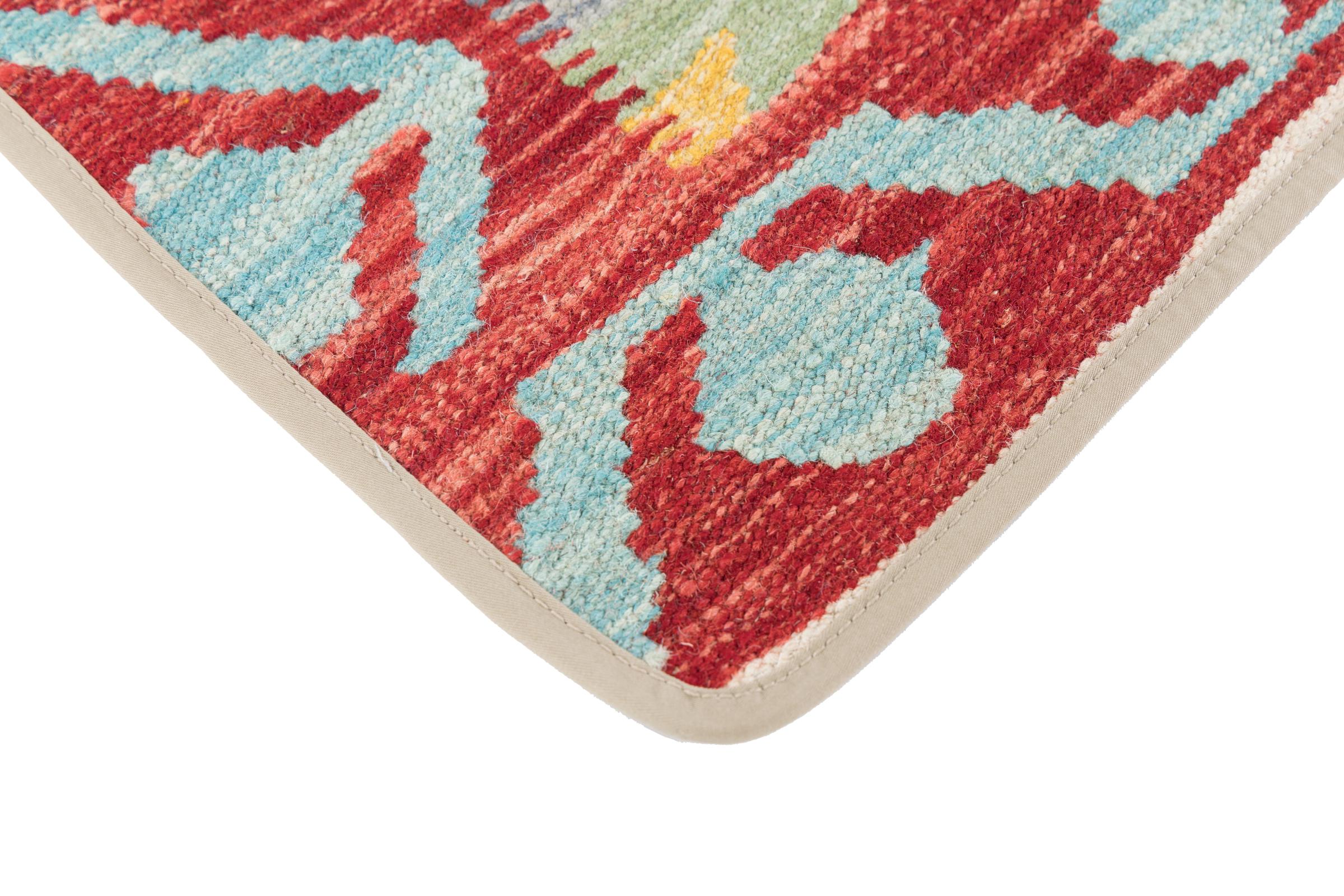 This handwoven Kilim Afghan is a wonderful and unique piece of art. Hard to believe that these modern colours and patterns have already been used centuries ago. This carpet has been woven by hand in old tradition in Afghanistan. It delivers a portion of contemporary history, which you won't find in this specific design a second time. It consists of high-grade natural wool and gives your home a personalised touch.
