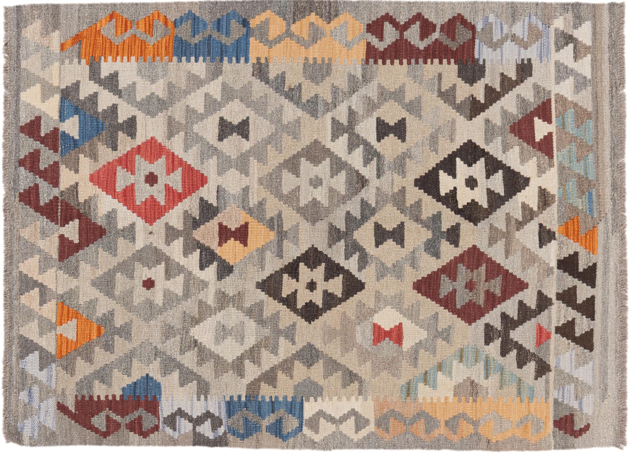 Carpet ID: 2949830051802 Size: 143x105 cm Thickness: ap. 3 mm Manufacturing: Woven by hand Pile: Handspun wool Warp: Sheep wool Origin: Afghanistan Age: New Weight: ap. 2 kg Also know as Kilim, Qilim, Chilim, Afgan, Afghán In stock: Unique - Only 1 in stock