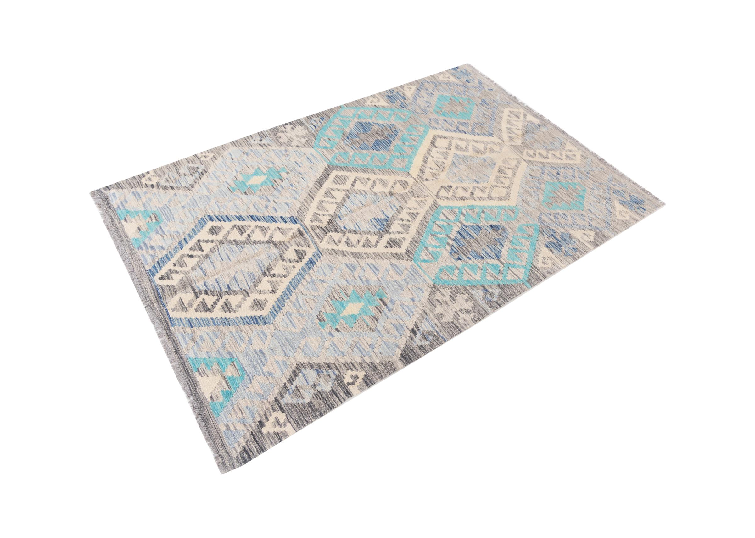 Carpet ID: 2945500045906 Size: 157x104 cm Thickness: ap. 3 mm Manufacturing: Woven by hand Pile: Handspun wool Warp: Sheep wool Origin: Afghanistan Age: New Weight: ap. 2 kg Also know as Kilim, Qilim, Chilim, Afgan, Afghán In stock: Unique - Only 1 in stock
