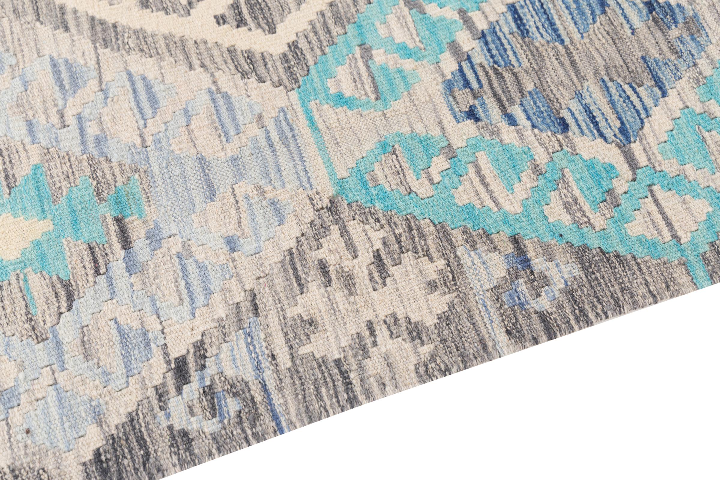 Our Kilim Afghan Heritage collection is in each and every detail exceptional. It combines the most traditional way of crafting a Kilim with contemporary modern design elements. Not only has this carpet been woven by hand, its wool has also been spun by hand like for Kilims centuries ago. The geometric patterns make this carpet a pure enrichment for modern interior concepts. It is going to deeply impress you and your guests. You won't get more value for your money than for this Kilim Heritage.