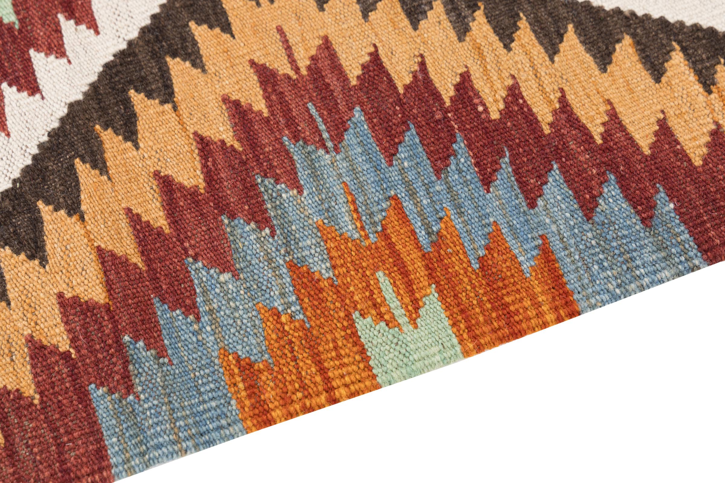 Our Kilim Afghan Heritage collection is in each and every detail exceptional. It combines the most traditional way of crafting a Kilim with contemporary modern design elements. Not only has this carpet been woven by hand, its wool has also been spun by hand like for Kilims centuries ago. The geometric patterns make this carpet a pure enrichment for modern interior concepts. It is going to deeply impress you and your guests. You won't get more value for your money than for this Kilim Heritage.