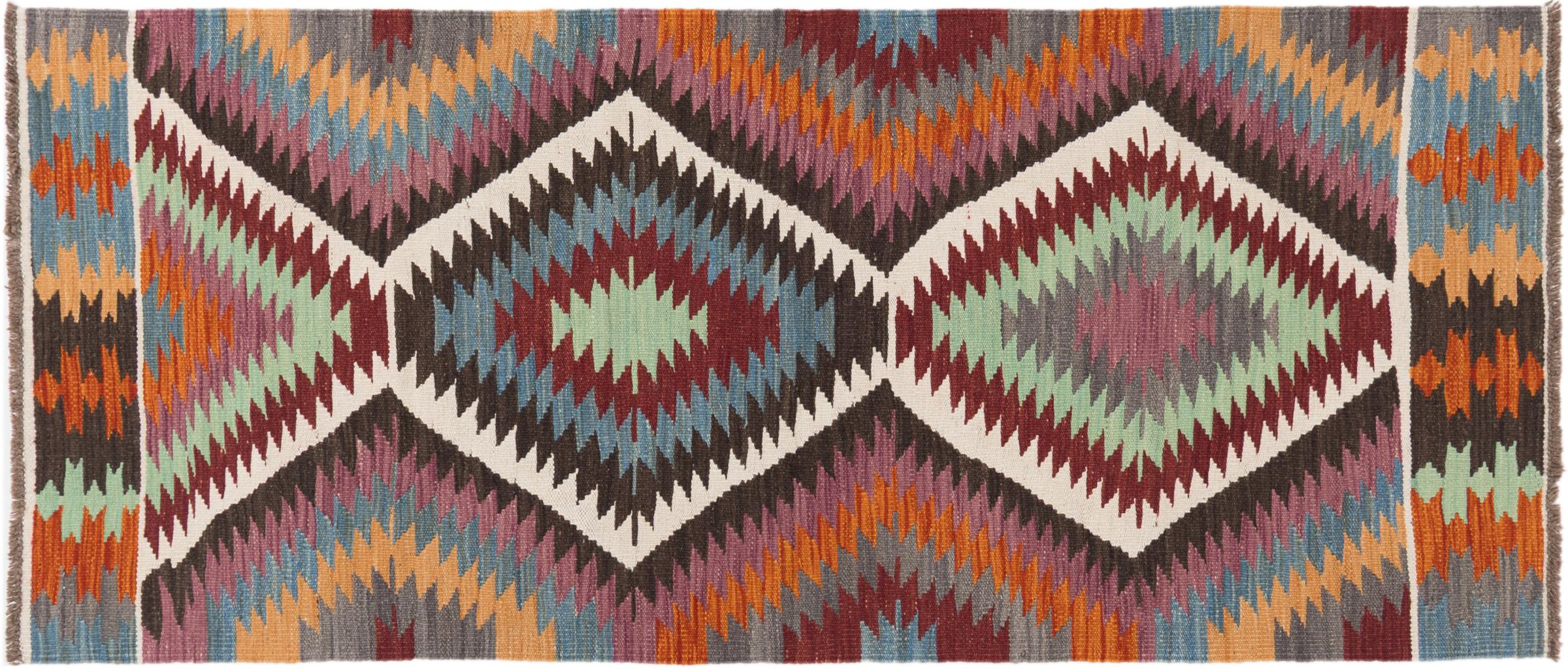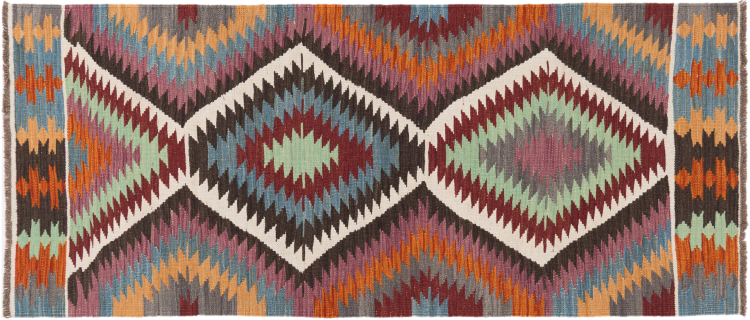 Carpet ID: 2941060048705 Size: 200x85 cm Thickness: ap. 3 mm Manufacturing: Woven by hand Pile: Handspun wool Warp: Sheep wool Origin: Afghanistan Age: New Weight: ap. 3 kg Also know as Kilim, Qilim, Chilim, Afgan, Afghán In stock: Unique - Only 1 in stock