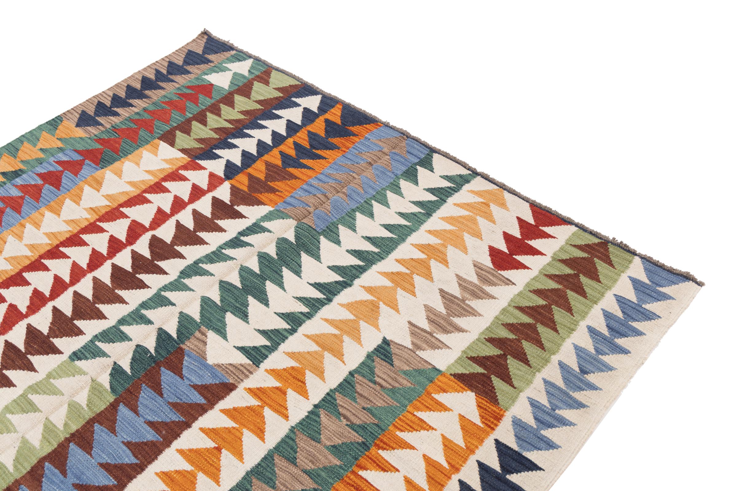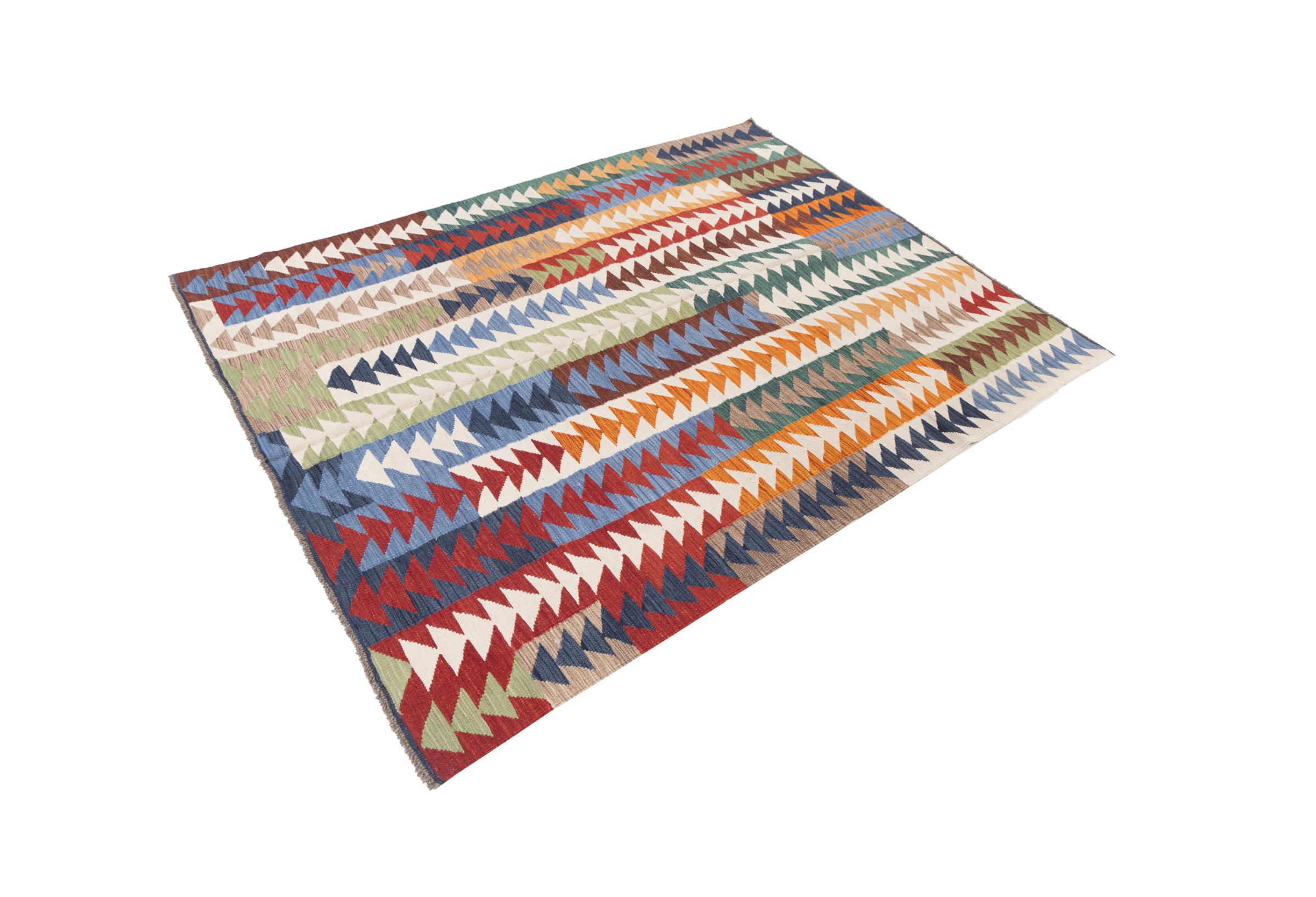Our Kilim Afghan Heritage collection is in each and every detail exceptional. It combines the most traditional way of crafting a Kilim with contemporary modern design elements. Not only has this carpet been woven by hand, its wool has also been spun by hand like for Kilims centuries ago. The geometric patterns make this carpet a pure enrichment for modern interior concepts. It is going to deeply impress you and your guests. You won't get more value for your money than for this Kilim Heritage.