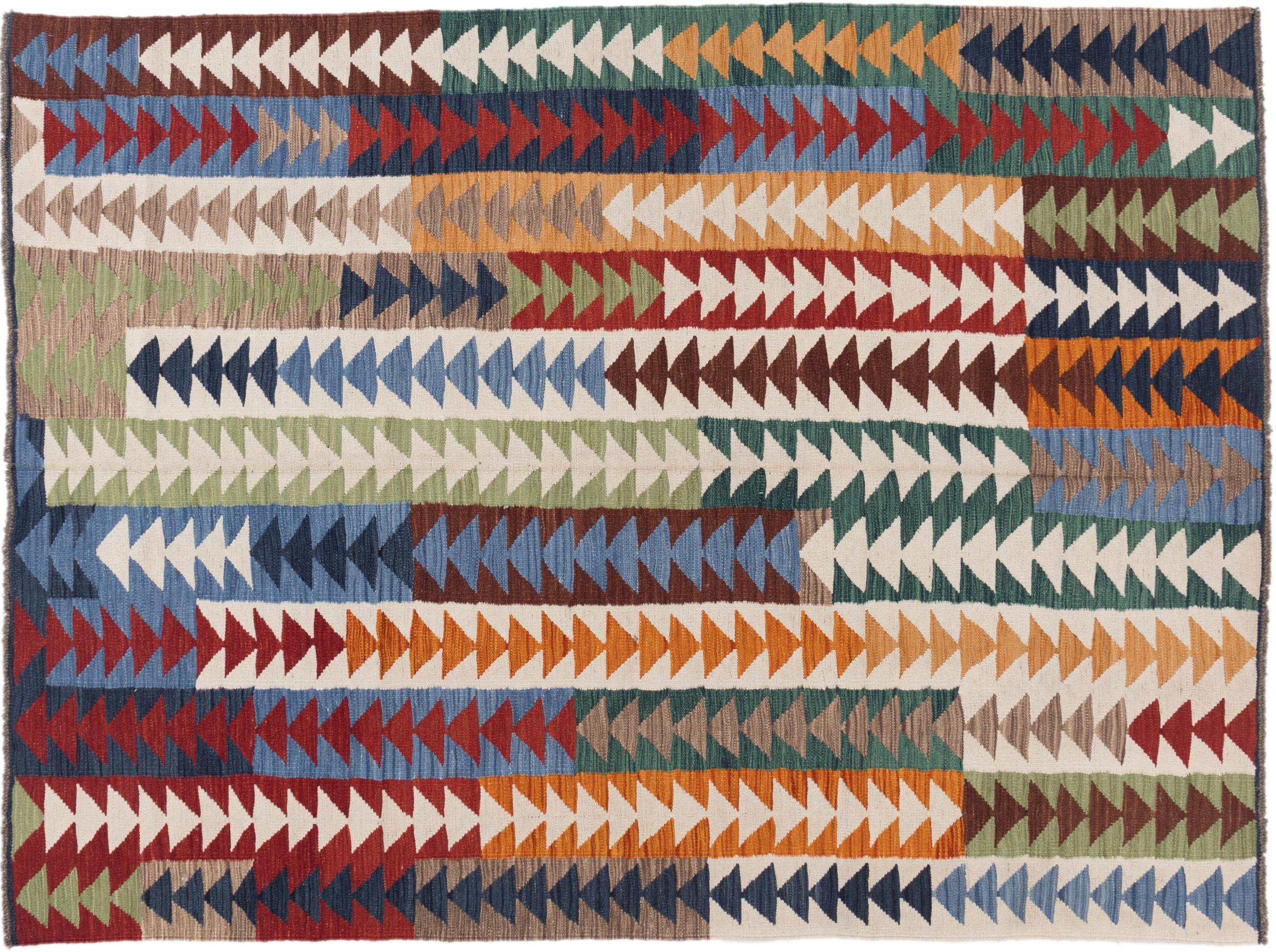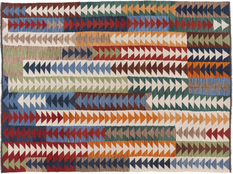 Carpet ID: 2944480048297 Size: 241x182 cm Thickness: ap. 3 mm Manufacturing: Woven by hand Pile: Handspun wool Warp: Sheep wool Origin: Afghanistan Age: New Weight: ap. 7 kg Also know as Kilim, Qilim, Chilim, Afgan, Afghán In stock: Unique - Only 1 in stock