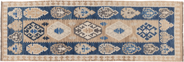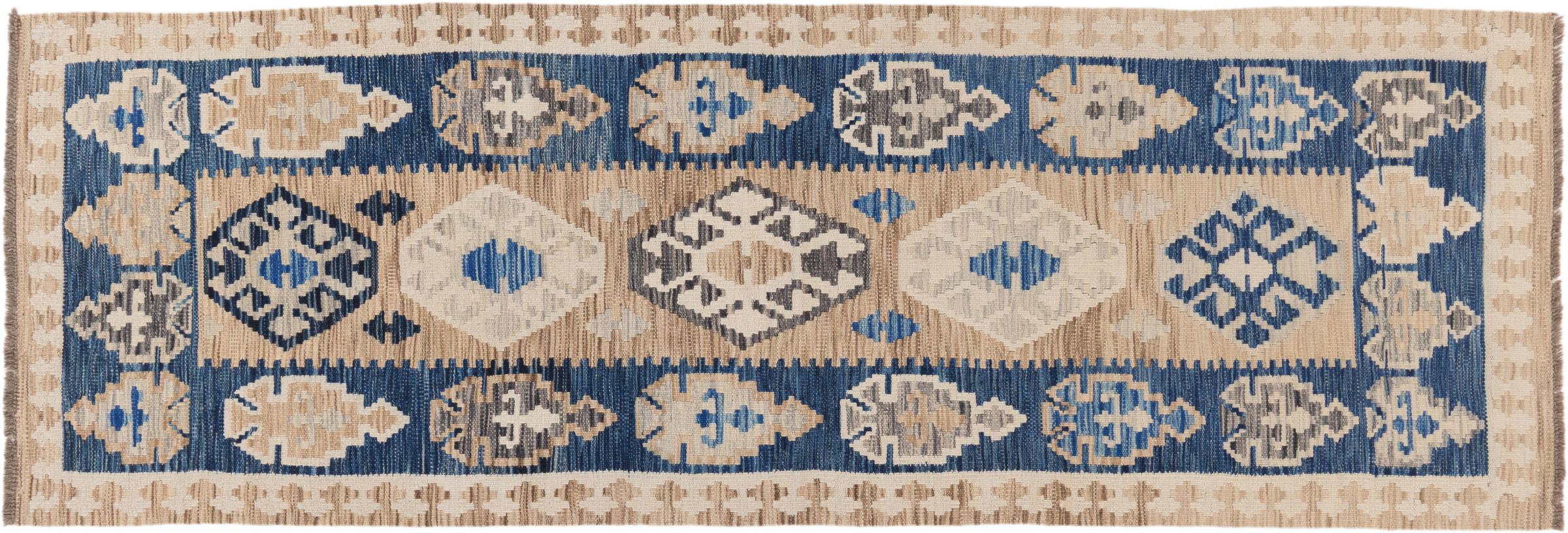 Carpet ID: 2946170045953 Size: 247x83 cm Thickness: ap. 3 mm Manufacturing: Woven by hand Pile: Handspun wool Warp: Sheep wool Origin: Afghanistan Age: New Weight: ap. 3 kg Also know as Kilim, Qilim, Chilim, Afgan, Afghán In stock: Unique - Only 1 in stock