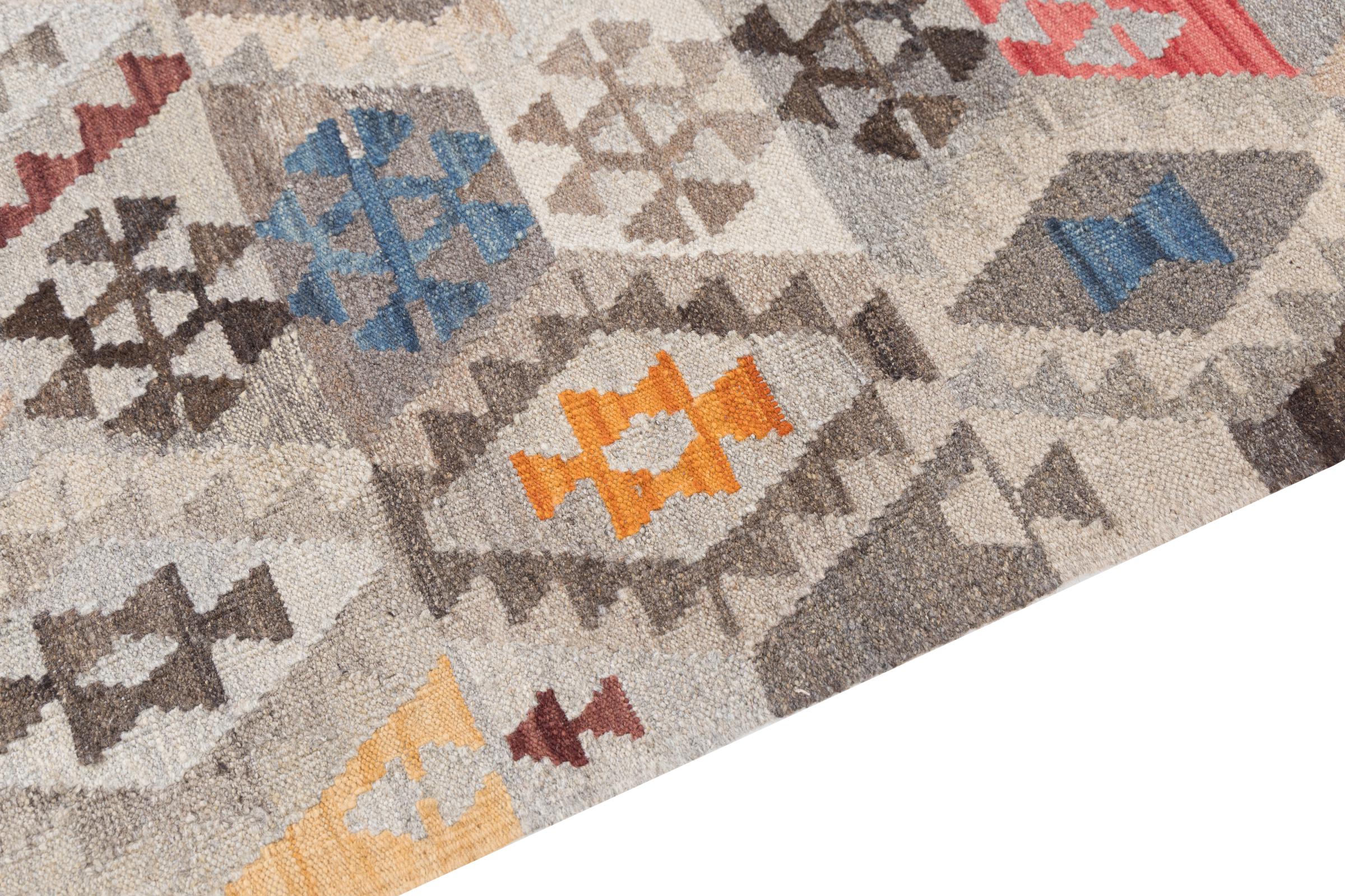 Our Kilim Afghan Heritage collection is in each and every detail exceptional. It combines the most traditional way of crafting a Kilim with contemporary modern design elements. Not only has this carpet been woven by hand, its wool has also been spun by hand like for Kilims centuries ago. The geometric patterns make this carpet a pure enrichment for modern interior concepts. It is going to deeply impress you and your guests. You won't get more value for your money than for this Kilim Heritage.