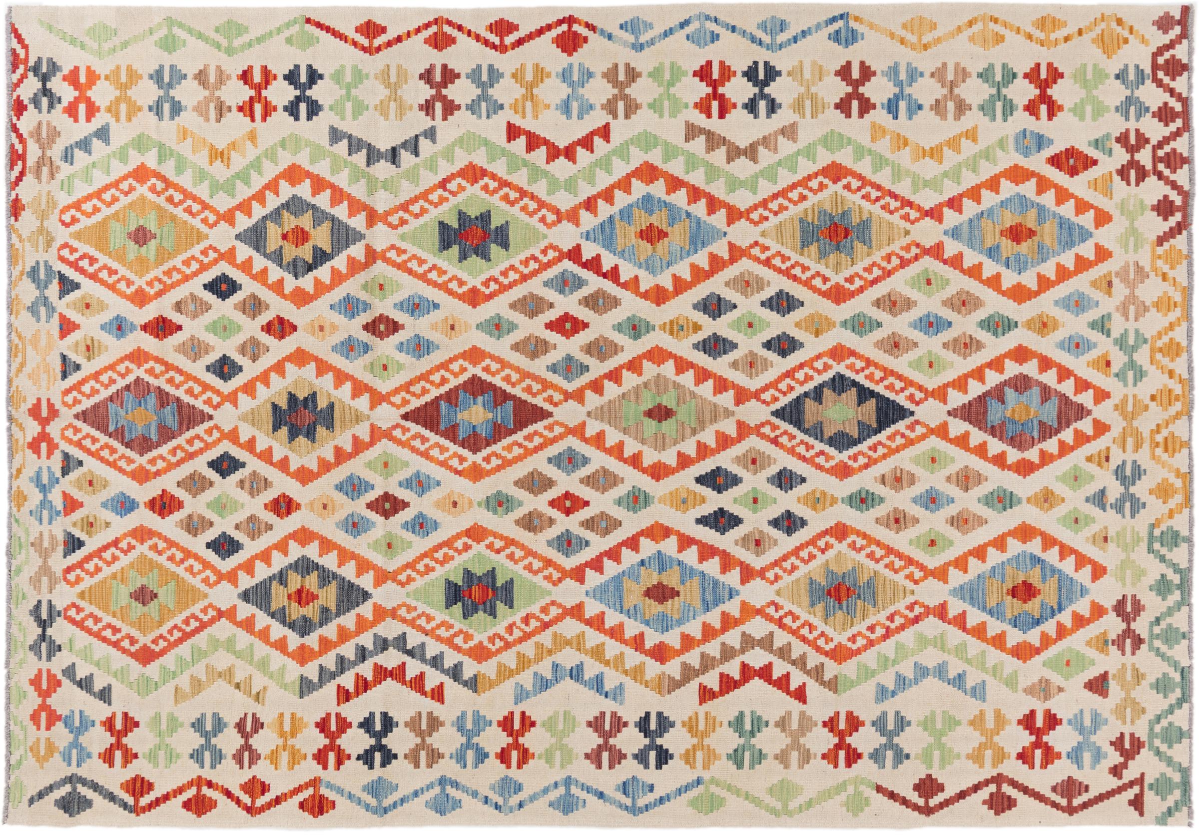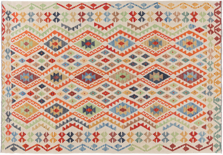 Carpet ID: 2949240050805 Size: 252x177 cm Thickness: ap. 3 mm Manufacturing: Woven by hand Pile: Handspun wool Warp: Sheep wool Origin: Afghanistan Age: New Weight: ap. 7 kg Also know as Kilim, Qilim, Chilim, Afgan, Afghán In stock: Unique - Only 1 in stock