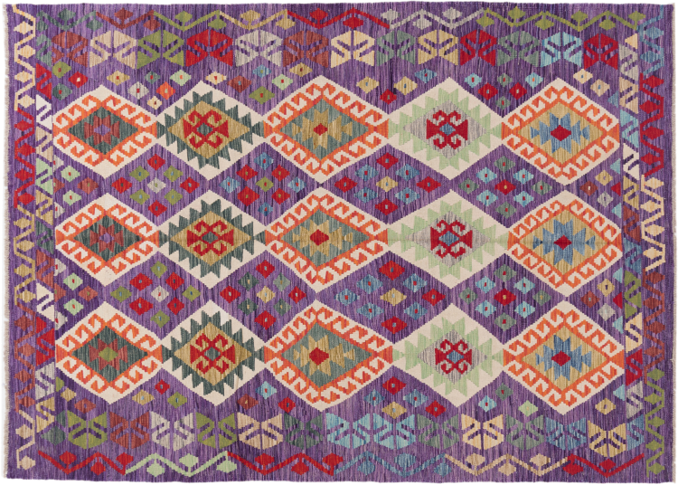 Carpet ID: 2945350045174 Size: 254x183 cm Thickness: ap. 3 mm Manufacturing: Woven by hand Pile: Handspun wool Warp: Sheep wool Origin: Afghanistan Age: New Weight: ap. 7 kg Also know as Kilim, Qilim, Chilim, Afgan, Afghán In stock: Unique - Only 1 in stock