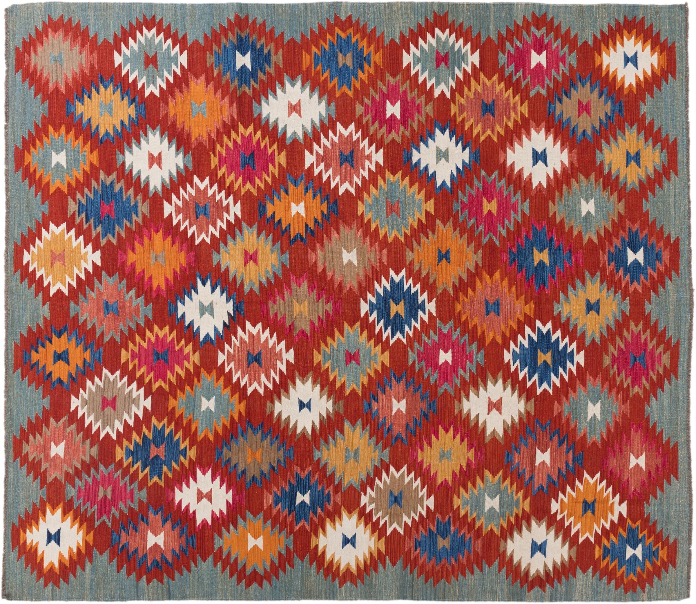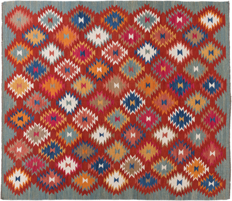 Carpet ID: 2941150048110 Size: 297x261 cm Thickness: ap. 3 mm Manufacturing: Woven by hand Pile: Handspun wool Warp: Sheep wool Origin: Afghanistan Age: New Weight: ap. 12 kg Also know as Kilim, Qilim, Chilim, Afgan, Afghán In stock: Unique - Only 1 in stock