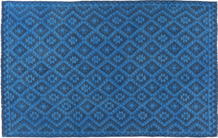 This rug was made as a flat weave by hand on a loom. Flatweave is the term used to describe rugs that have no pile. As the name promises, these rugs are woven and not knotted. This results in a flat rug with a structured surface. Flatweaves are not as soft and usually thinner than knotted rugs. At the same time they are much less complex to manufacture and can usually be laid out from both sides (front and back). Their patterns are usually geometric, which is determined by the fabric.