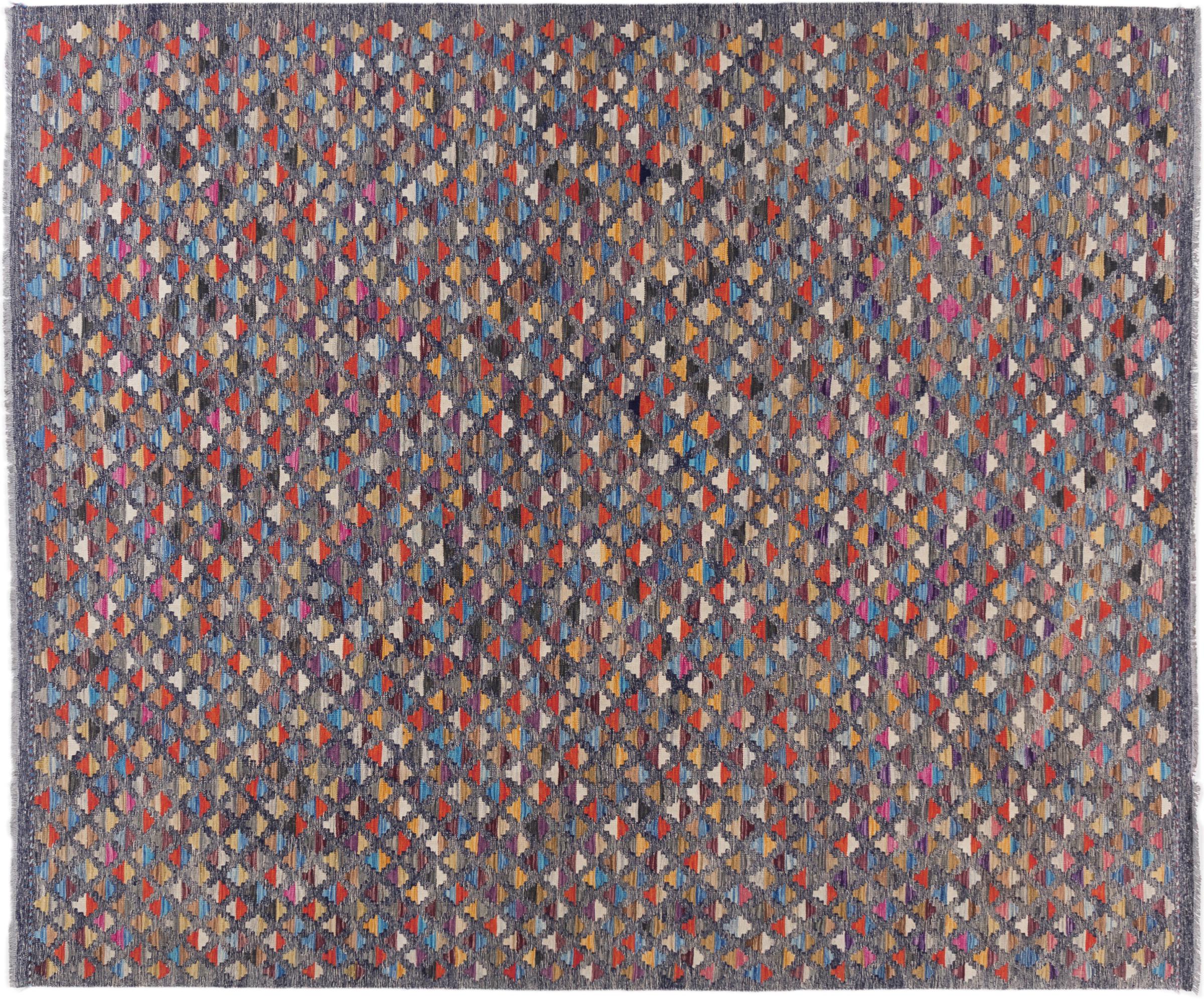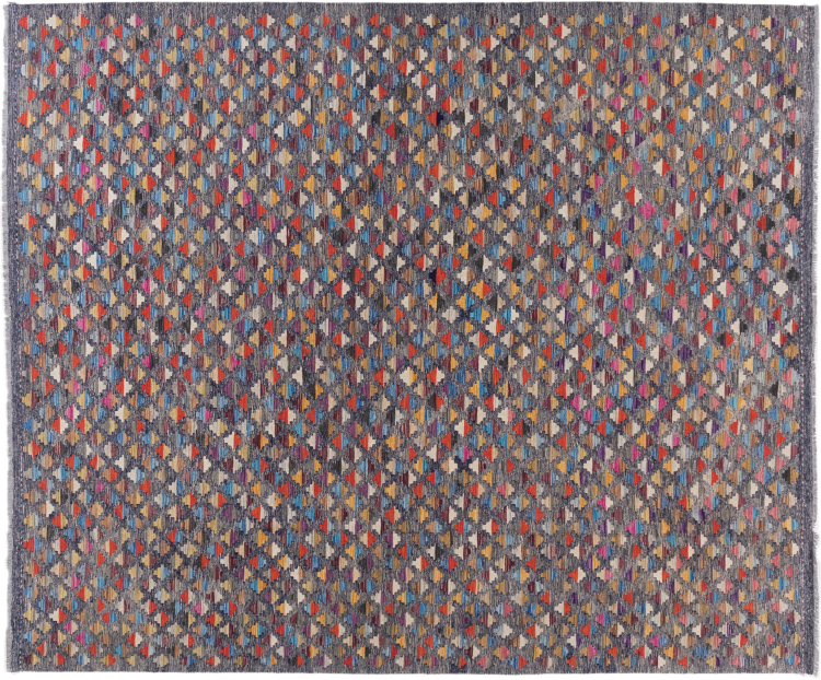 This rug was made as a flat weave by hand on a loom. Flatweave is the term used to describe rugs that have no pile. As the name promises, these rugs are woven and not knotted. This results in a flat rug with a structured surface. Flatweaves are not as soft and usually thinner than knotted rugs. At the same time they are much less complex to manufacture and can usually be laid out from both sides (front and back). Their patterns are usually geometric, which is determined by the fabric.