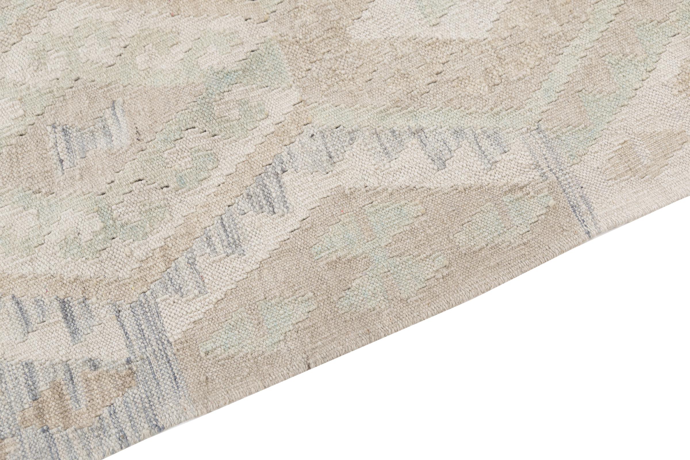 Our Kilim Afghan Heritage collection is in each and every detail exceptional. It combines the most traditional way of crafting a Kilim with contemporary modern design elements. Not only has this carpet been woven by hand, its wool has also been spun by hand like for Kilims centuries ago. The geometric patterns make this carpet a pure enrichment for modern interior concepts. It is going to deeply impress you and your guests. You won't get more value for your money than for this Kilim Heritage.