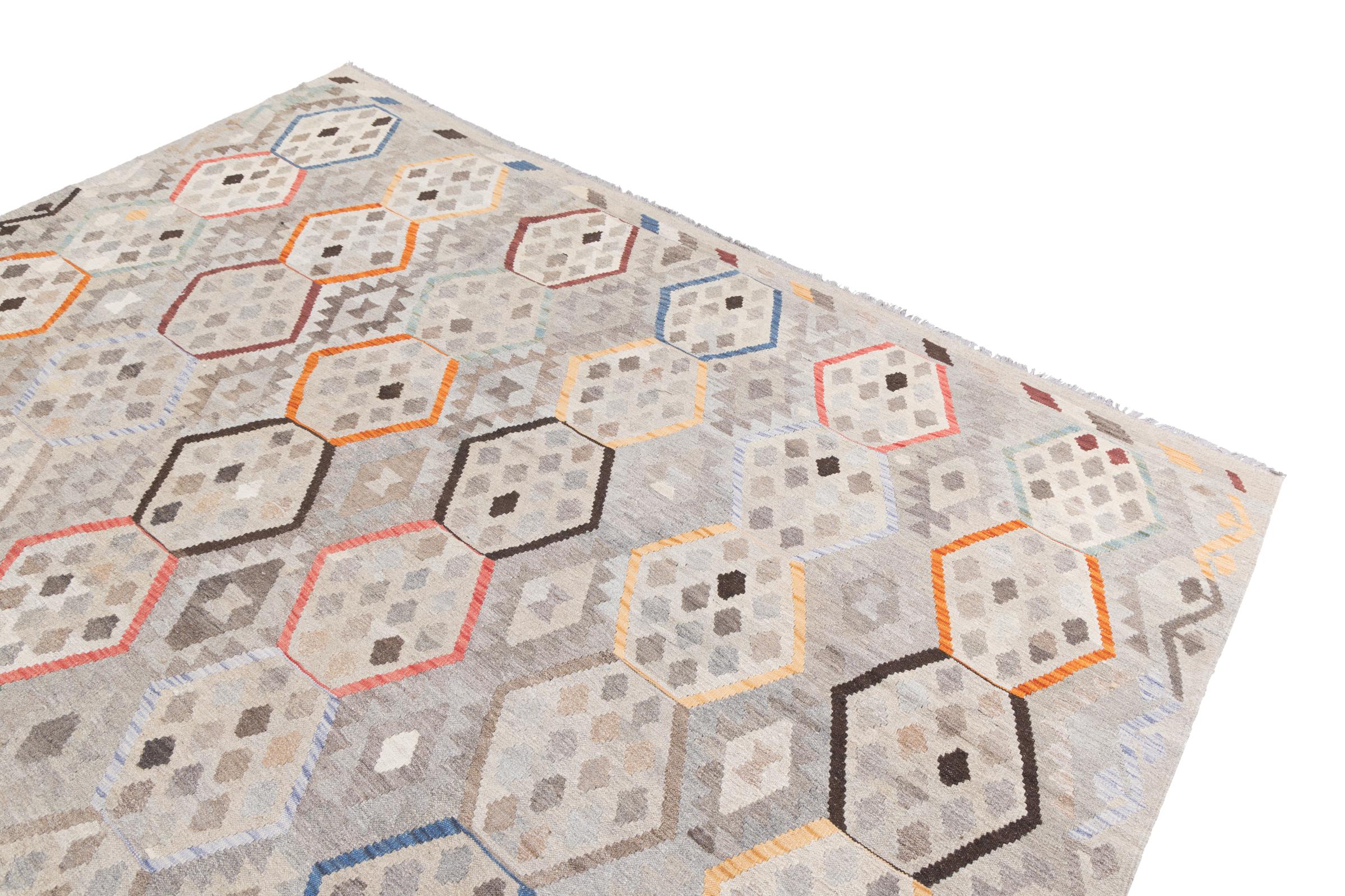 Our Kilim Afghan Heritage collection is in each and every detail exceptional. It combines the most traditional way of crafting a Kilim with contemporary modern design elements. Not only has this carpet been woven by hand, its wool has also been spun by hand like for Kilims centuries ago. The geometric patterns make this carpet a pure enrichment for modern interior concepts. It is going to deeply impress you and your guests. You won't get more value for your money than for this Kilim Heritage.