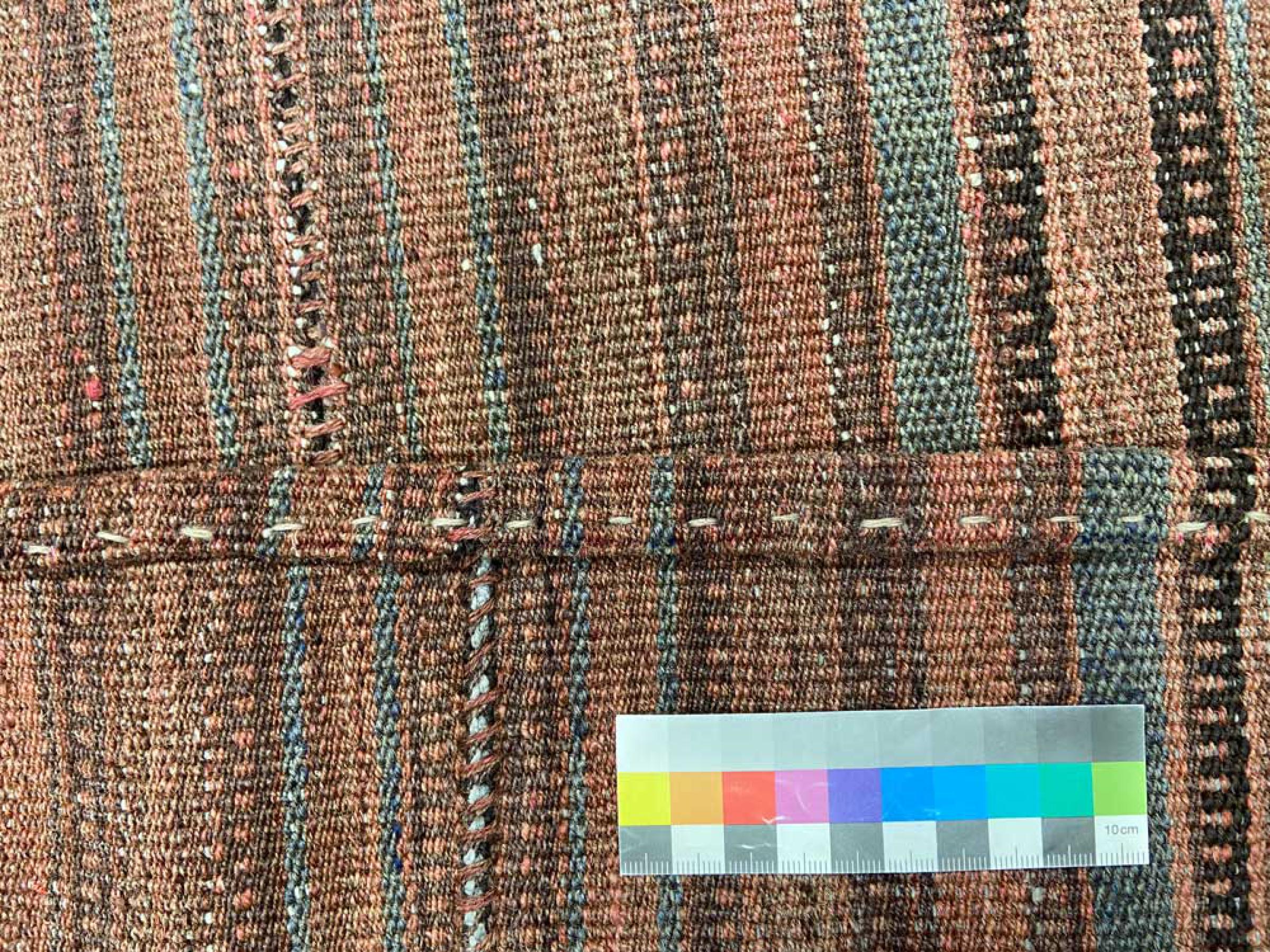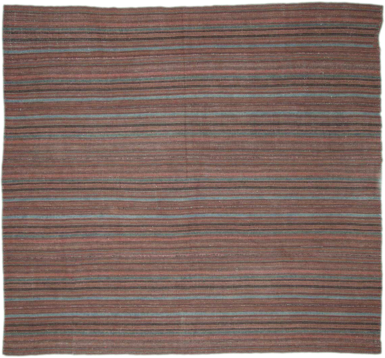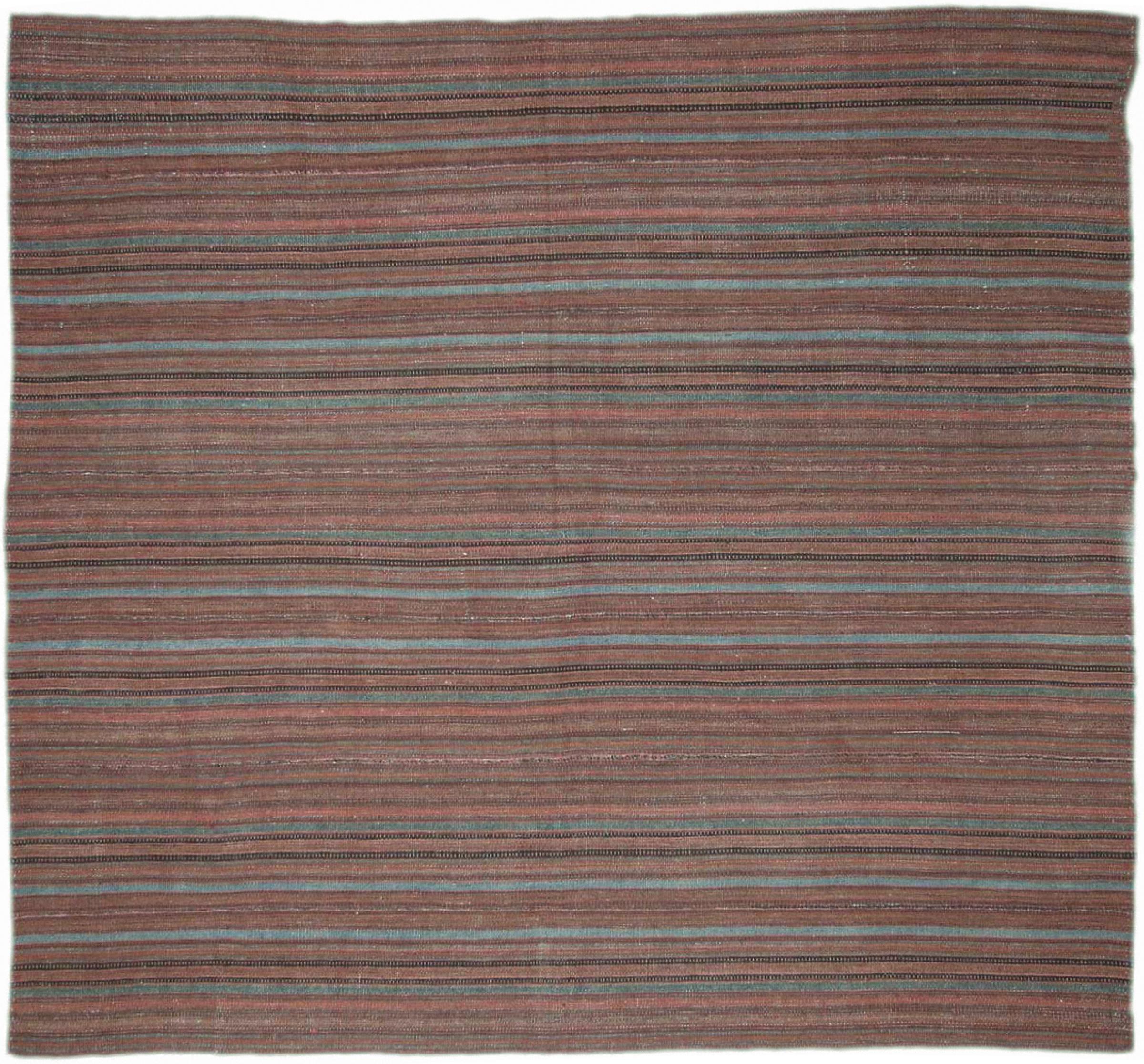 This rug was made as a flat weave by hand on a loom. Flatweave is the term used to describe rugs that have no pile. As the name promises, these rugs are woven and not knotted. This results in a flat rug with a structured surface. Flatweaves are not as soft and usually thinner than knotted rugs. At the same time they are much less complex to manufacture and can usually be laid out from both sides (front and back). Their patterns are usually geometric, which is determined by the fabric.