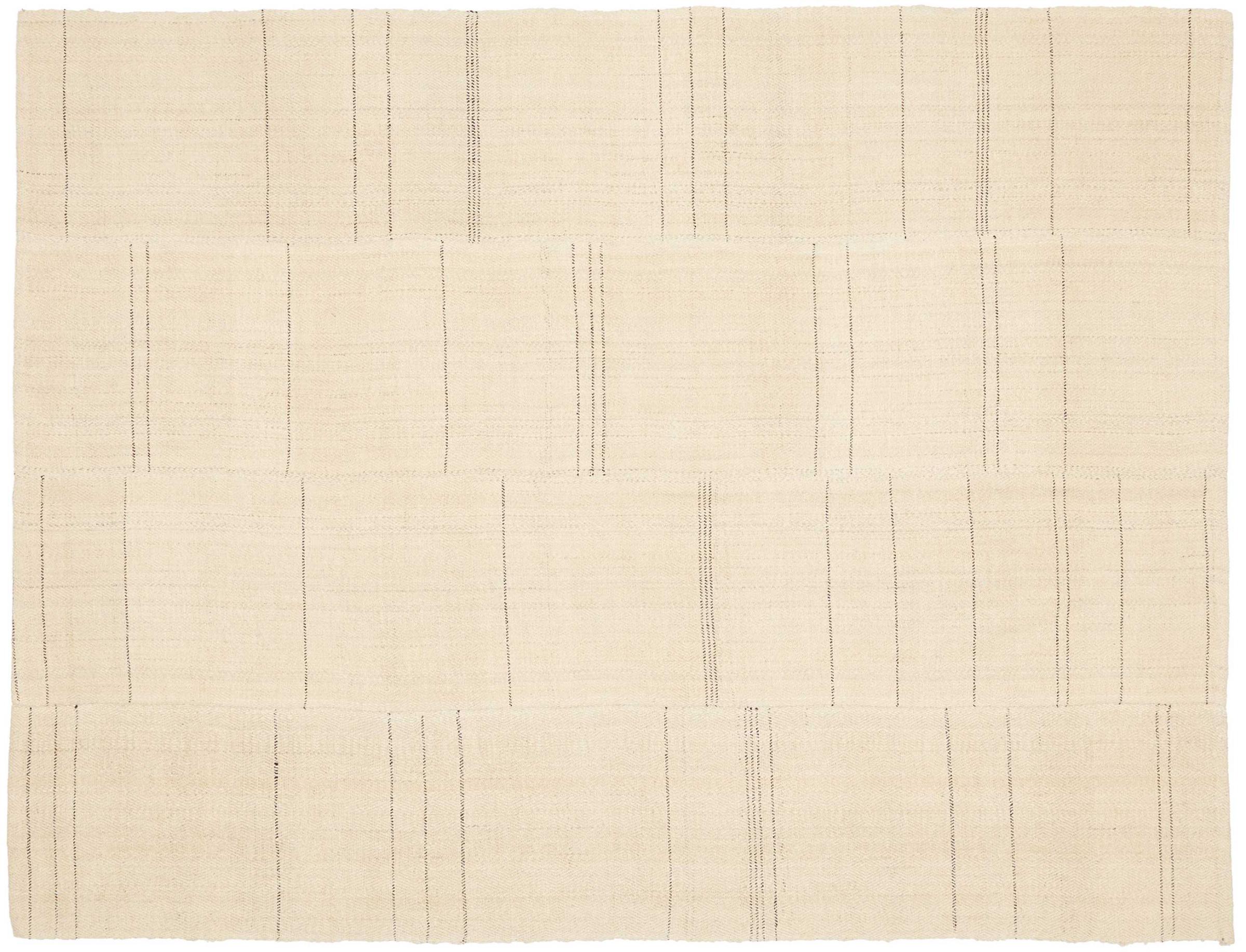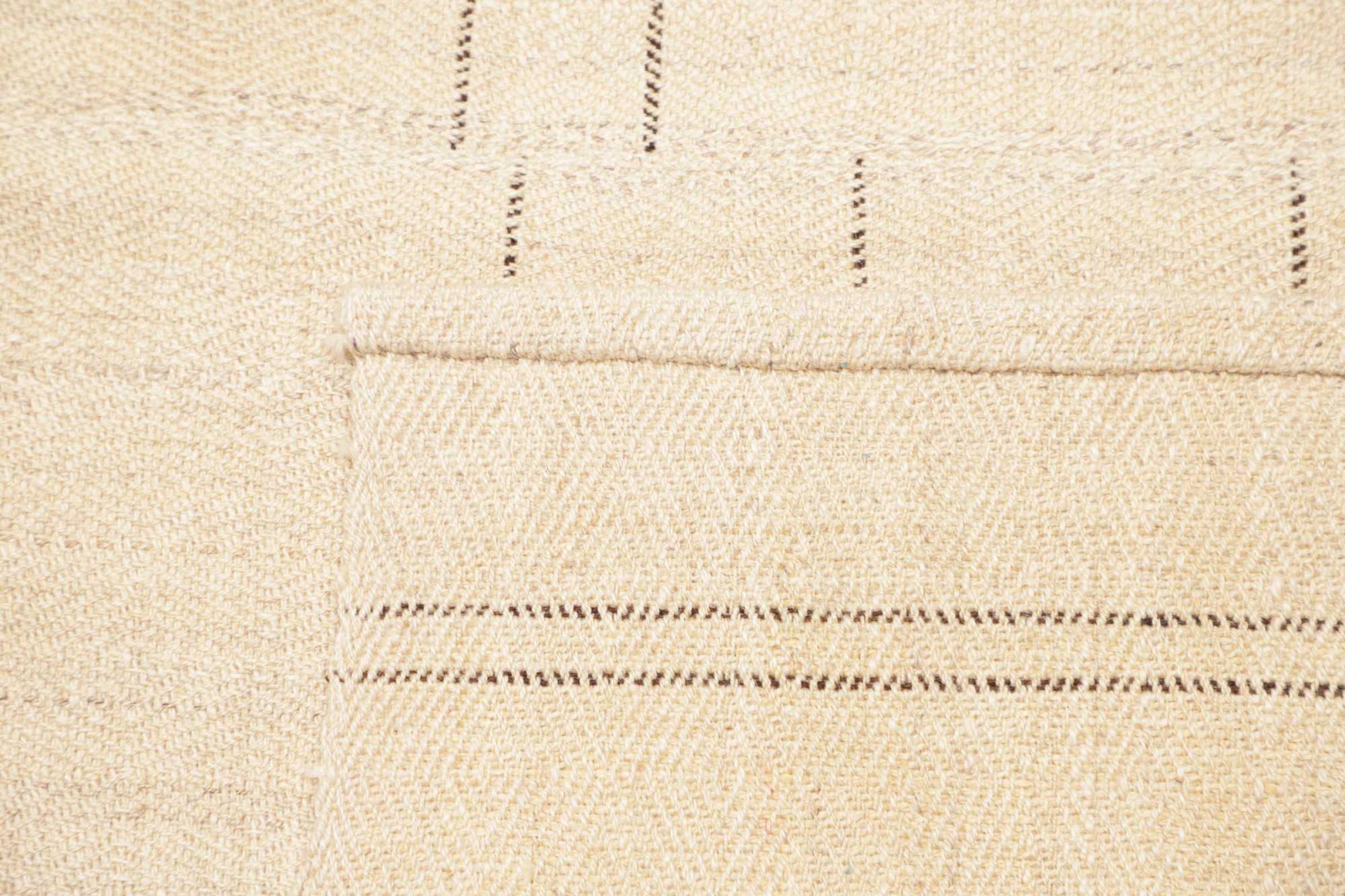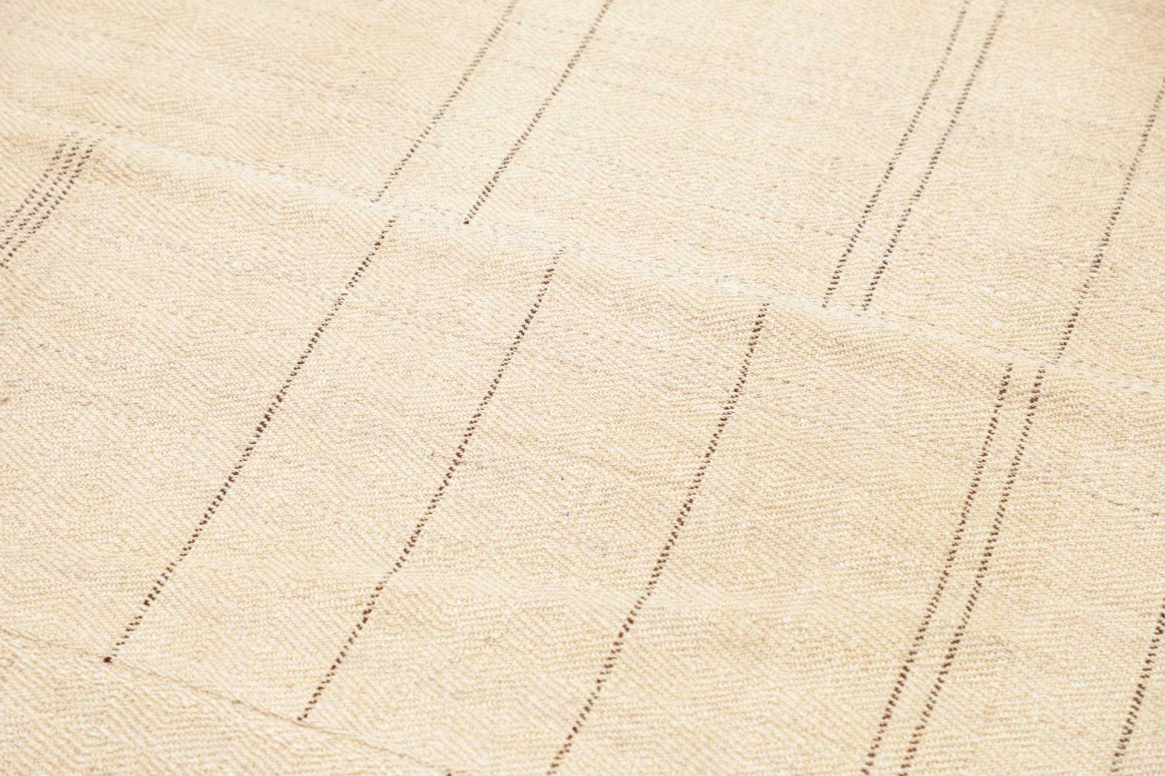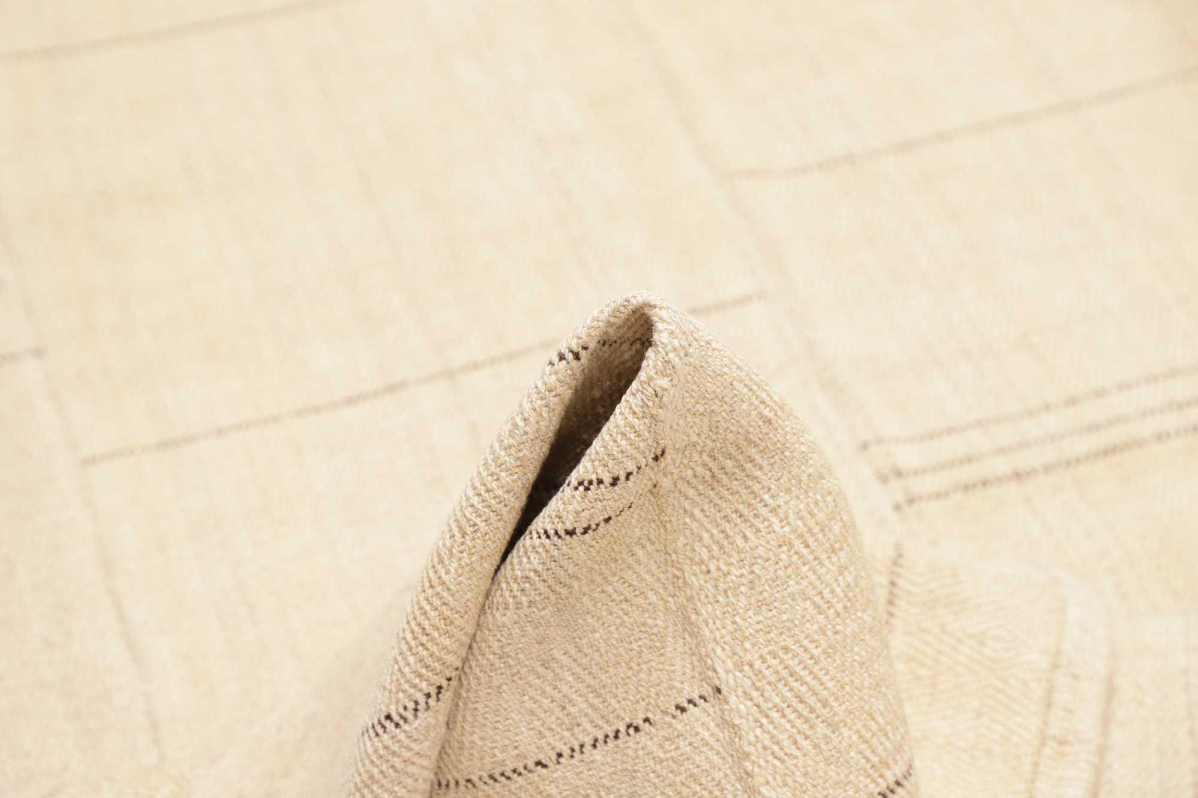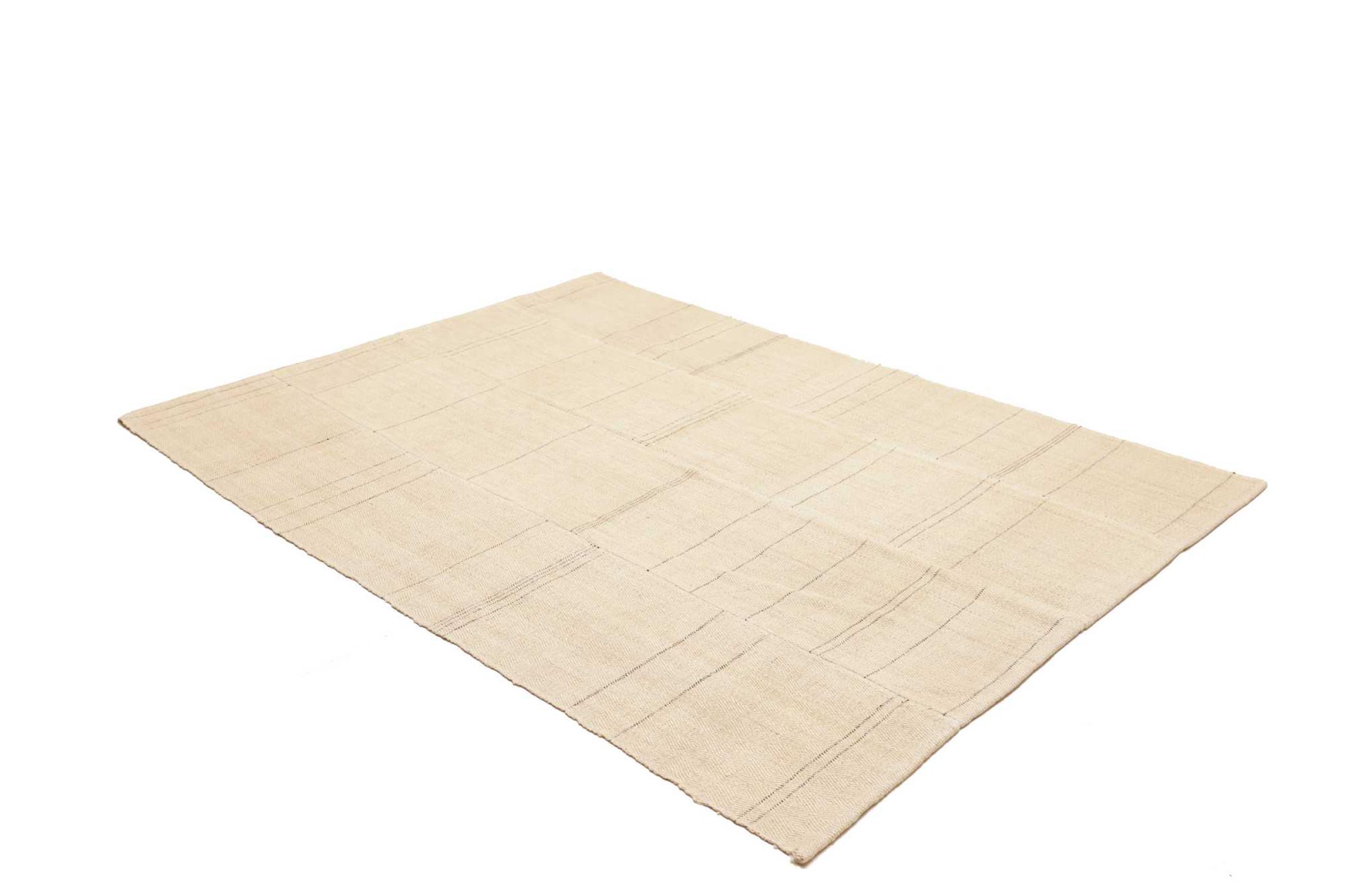 This rug was made as a flat weave by hand on a loom. Flatweave is the term used to describe rugs that have no pile. As the name promises, these rugs are woven and not knotted. This results in a flat rug with a structured surface. Flatweaves are not as soft and usually thinner than knotted rugs. At the same time they are much less complex to manufacture and can usually be laid out from both sides (front and back). Their patterns are usually geometric, which is determined by the fabric.