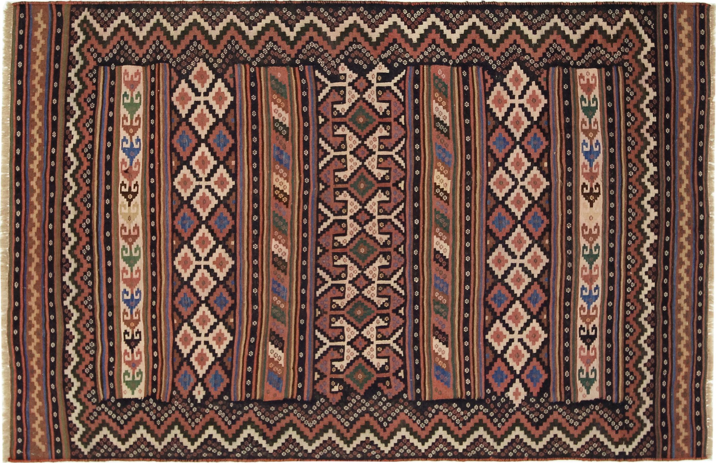 These kilim rugs show a decisive difference to hand-knotted rugs - they are woven by hand. Thus, they do not have a high pile of wool and are often flatter and rougher than knotted wool rugs. Their making is less elaborate and so they are usually much more affordable. As an advantage, kilim rugs are also much lighter and can be laid out from the front and back side. Hand-woven kilims originally come from the former Persia and are now also often made in Afghanistan. They have rather simple, straightforward patterns, which are determined by their weaving technique.