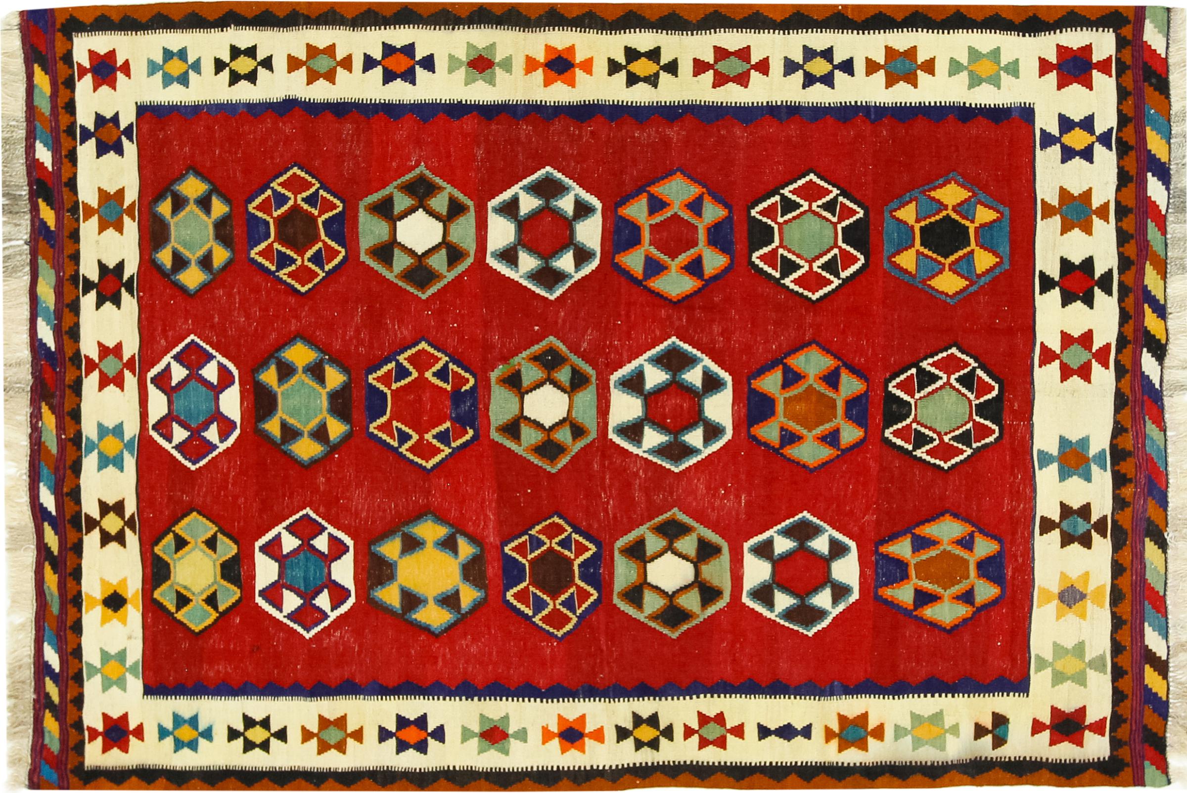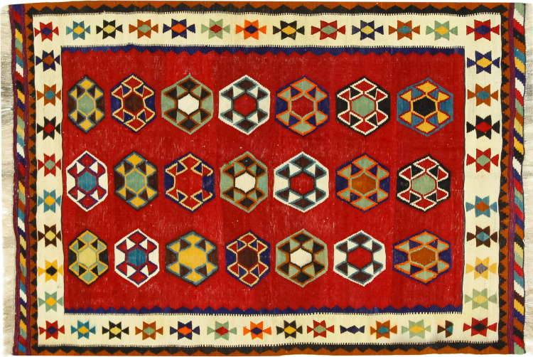 These kilim rugs show a decisive difference to hand-knotted rugs - they are woven by hand. Thus, they do not have a high pile of wool and are often flatter and rougher than knotted wool rugs. Their making is less elaborate and so they are usually much more affordable. As an advantage, kilim rugs are also much lighter and can be laid out from the front and back side. Hand-woven kilims originally come from the former Persia and are now also often made in Afghanistan. They have rather simple, straightforward patterns, which are determined by their weaving technique.