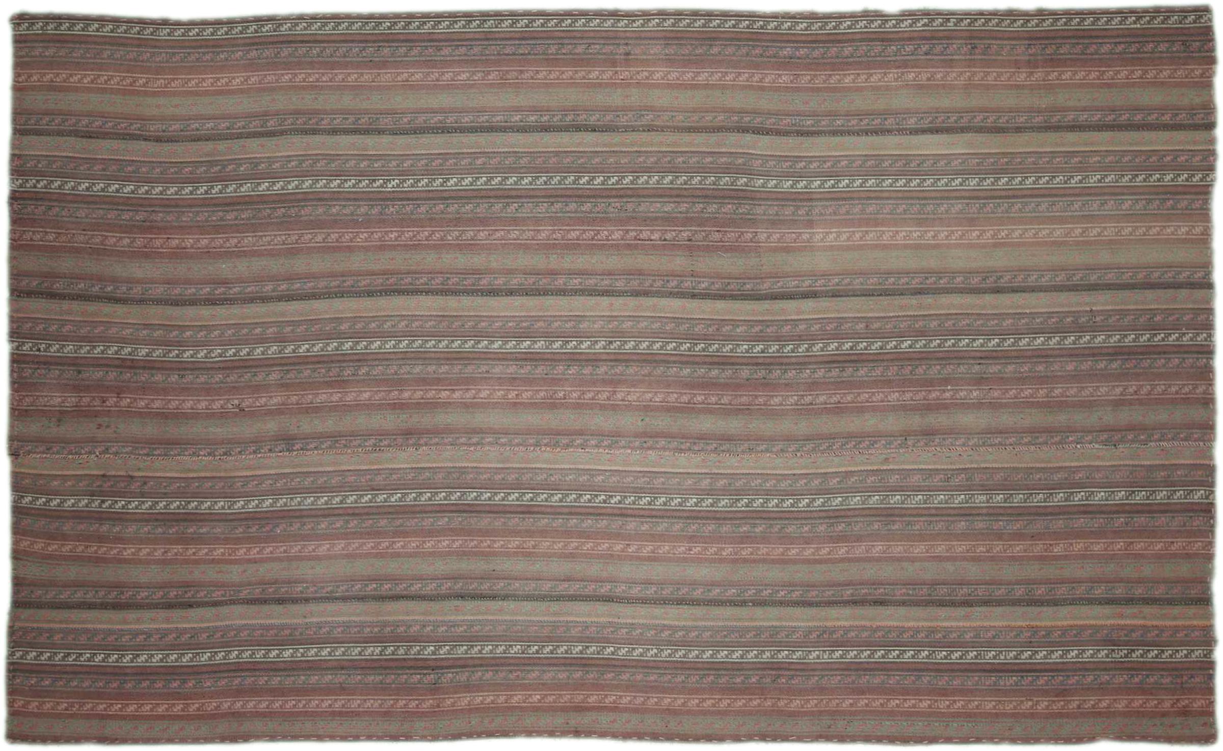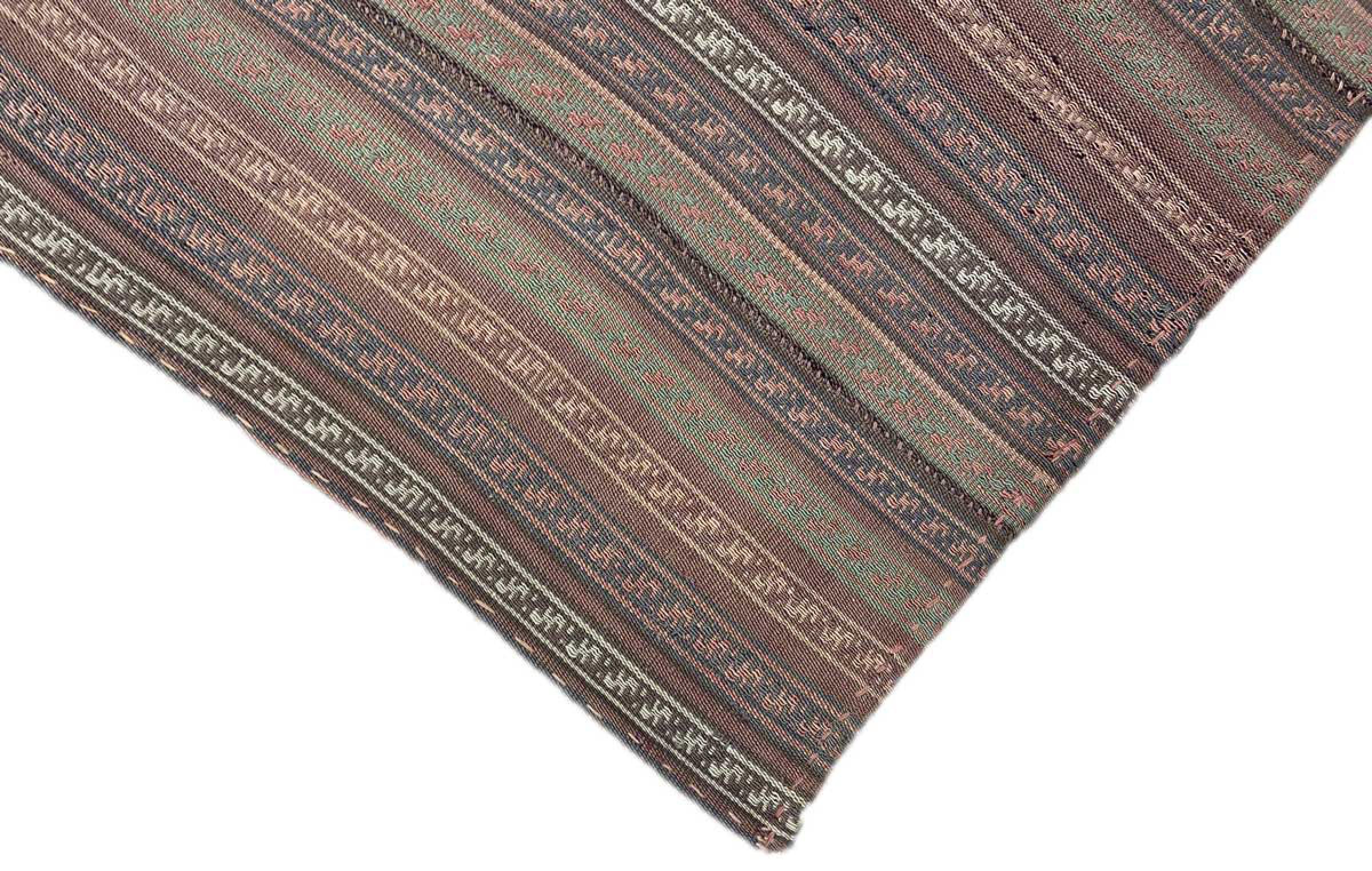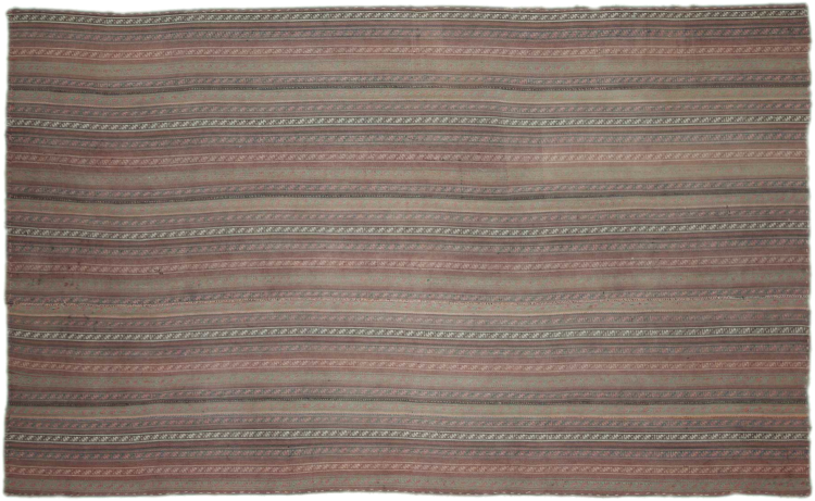 This rug was made as a flat weave by hand on a loom. Flatweave is the term used to describe rugs that have no pile. As the name promises, these rugs are woven and not knotted. This results in a flat rug with a structured surface. Flatweaves are not as soft and usually thinner than knotted rugs. At the same time they are much less complex to manufacture and can usually be laid out from both sides (front and back). Their patterns are usually geometric, which is determined by the fabric.