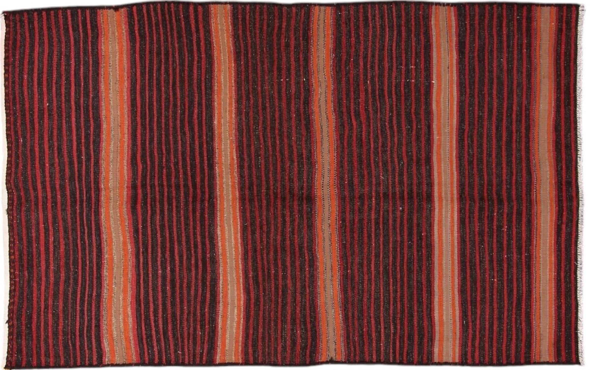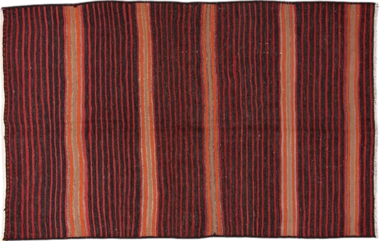 This rug was made as a flat weave by hand on a loom. Flatweave is the term used to describe rugs that have no pile. As the name promises, these rugs are woven and not knotted. This results in a flat rug with a structured surface. Flatweaves are not as soft and usually thinner than knotted rugs. At the same time they are much less complex to manufacture and can usually be laid out from both sides (front and back). Their patterns are usually geometric, which is determined by the fabric.