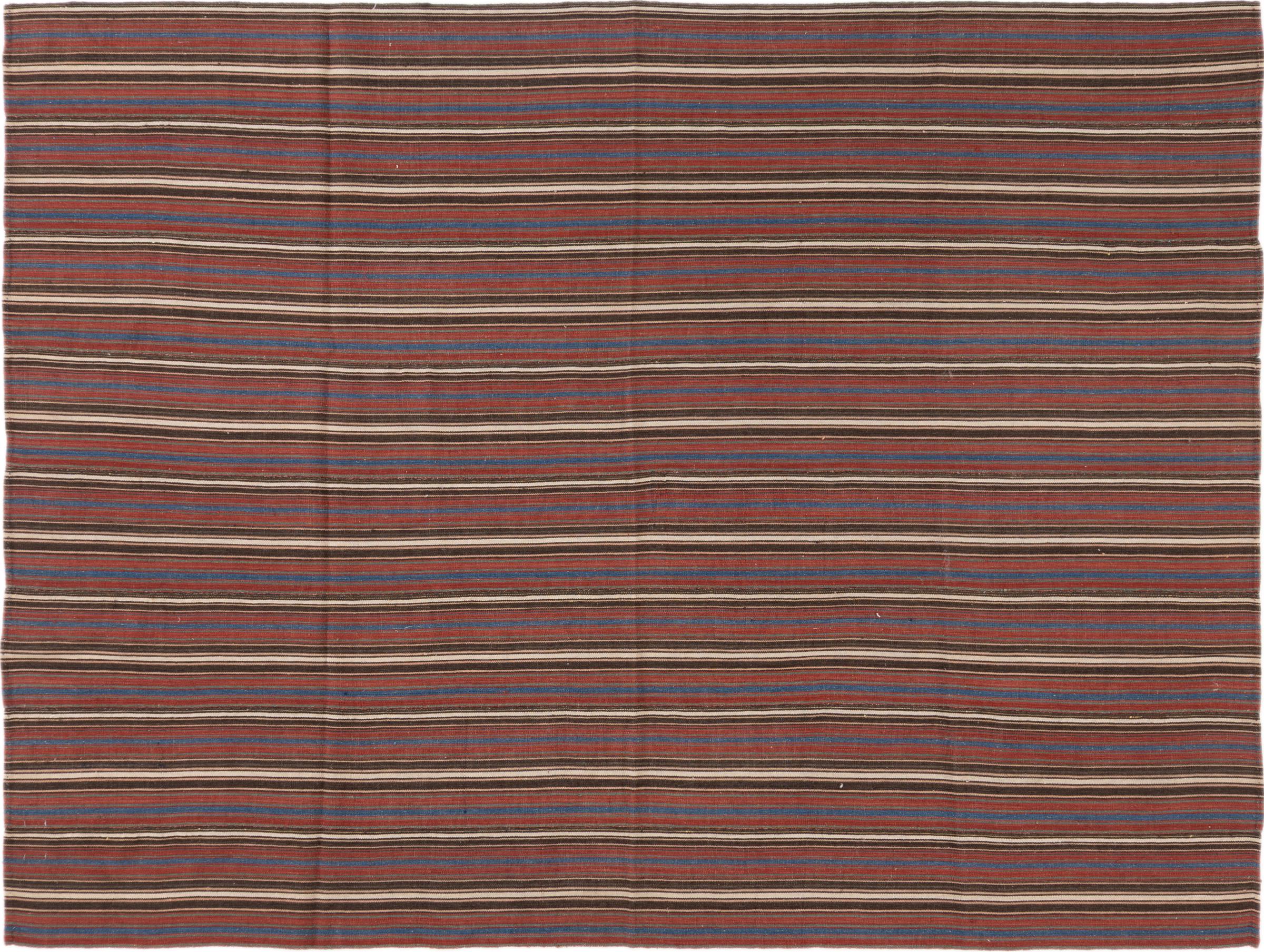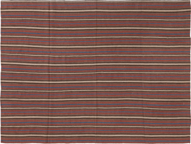 This rug was made as a flat weave by hand on a loom. Flatweave is the term used to describe rugs that have no pile. As the name promises, these rugs are woven and not knotted. This results in a flat rug with a structured surface. Flatweaves are not as soft and usually thinner than knotted rugs. At the same time they are much less complex to manufacture and can usually be laid out from both sides (front and back). Their patterns are usually geometric, which is determined by the fabric.