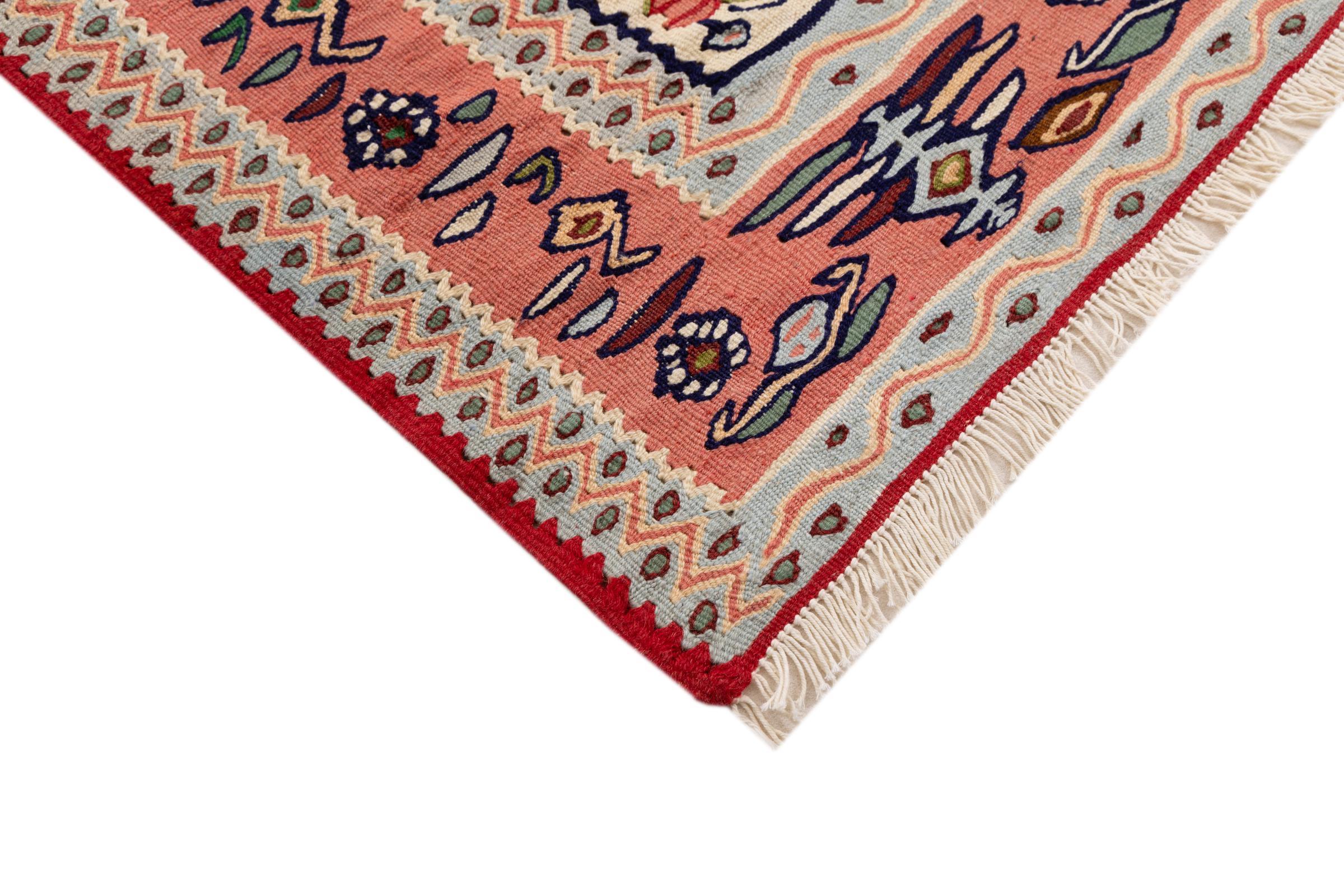 This rug belongs to village and nomadic rugs from Iran, formerly Persia. This type of rug is knotted by hand in smaller towns and villages in old tradition. Even nomads still knot Persian rugs in the open air. The rugs are knotted without a draft and completely from the mind. They are characterized by classical ornaments, which are arranged in straight and geometrical patterns. Thanks to their cultural-traditional origin, these rugs have a unique character that embodies ancient Persia.