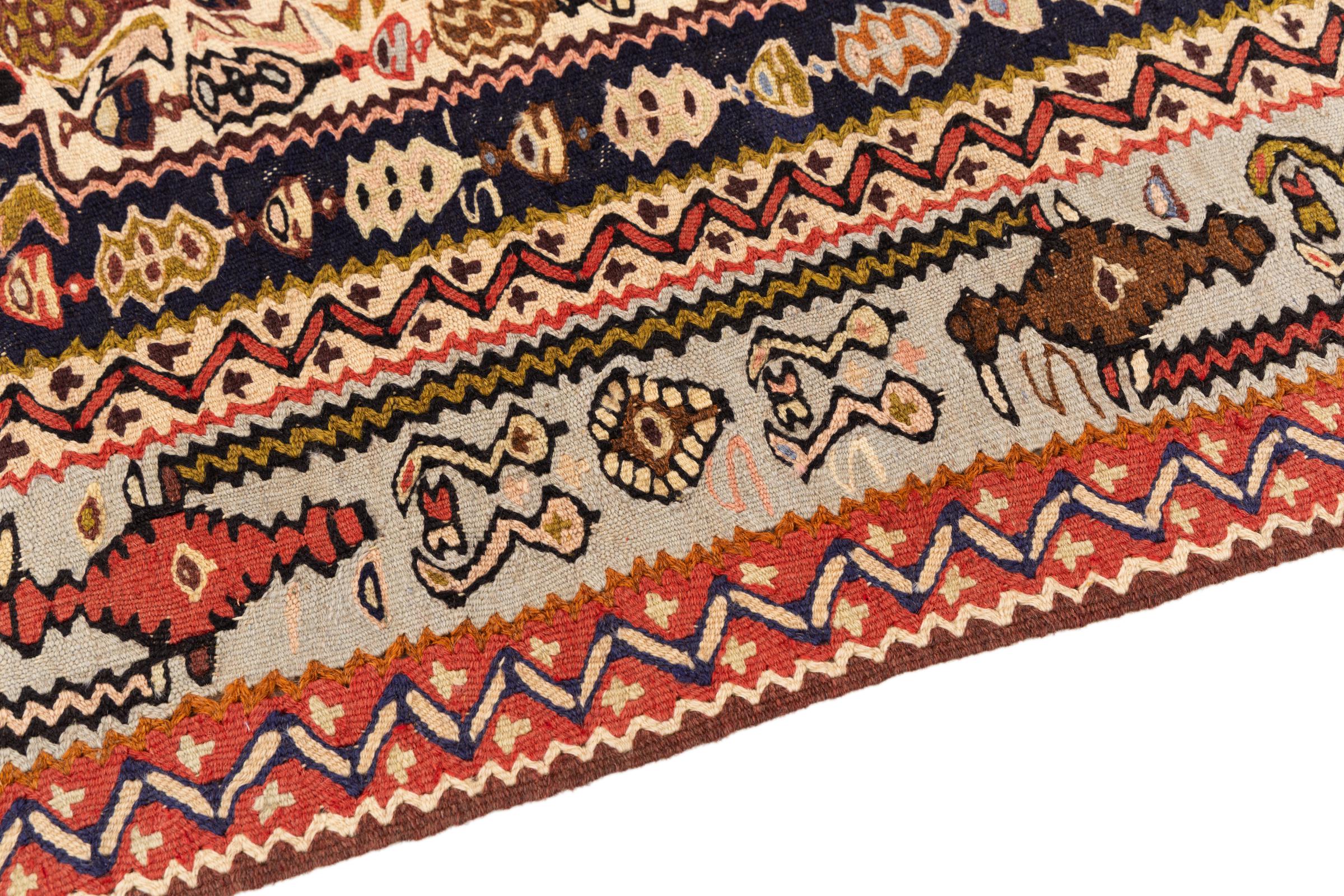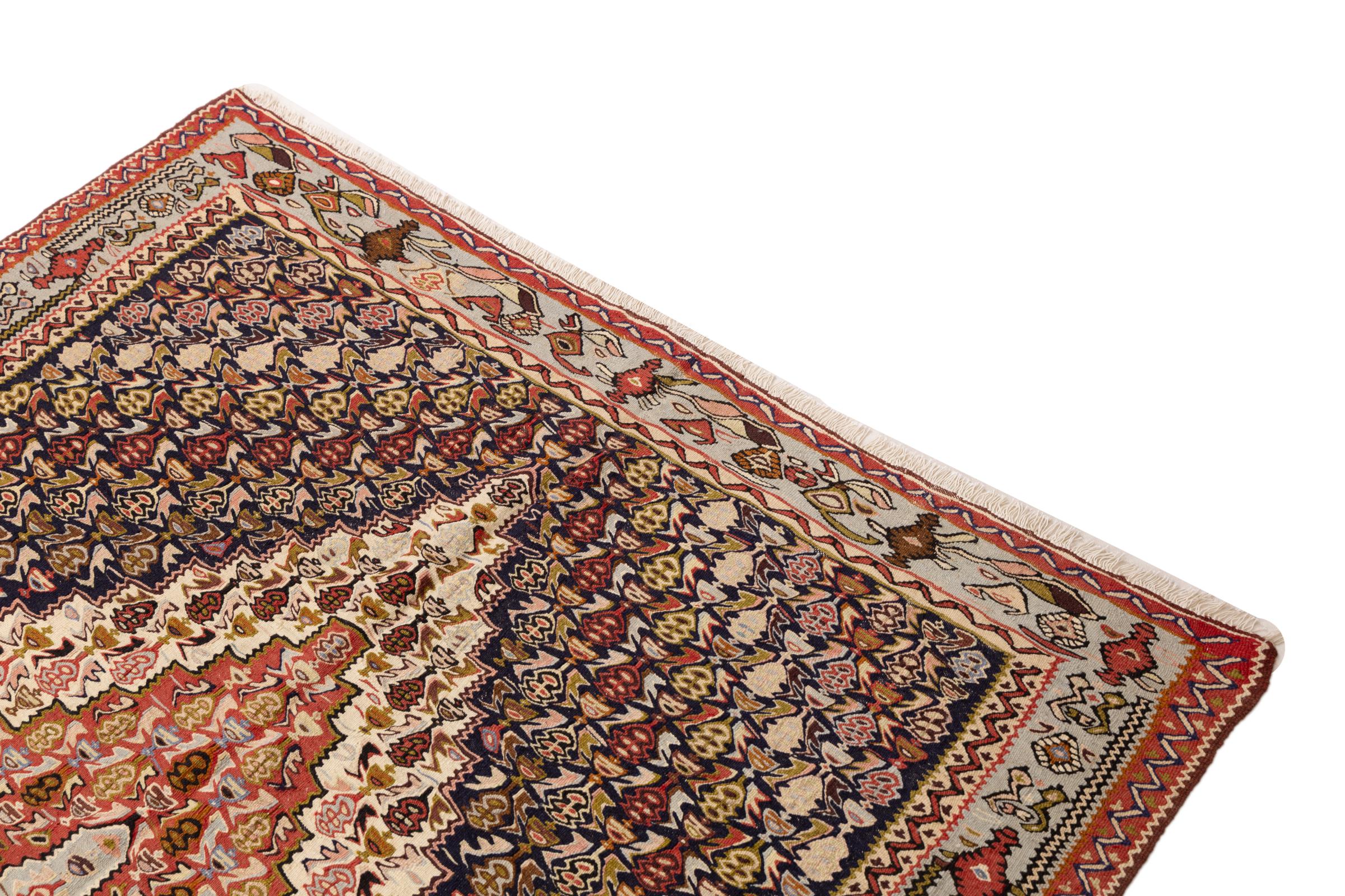 This rug belongs to village and nomadic rugs from Iran, formerly Persia. This type of rug is knotted by hand in smaller towns and villages in old tradition. Even nomads still knot Persian rugs in the open air. The rugs are knotted without a draft and completely from the mind. They are characterized by classical ornaments, which are arranged in straight and geometrical patterns. Thanks to their cultural-traditional origin, these rugs have a unique character that embodies ancient Persia.