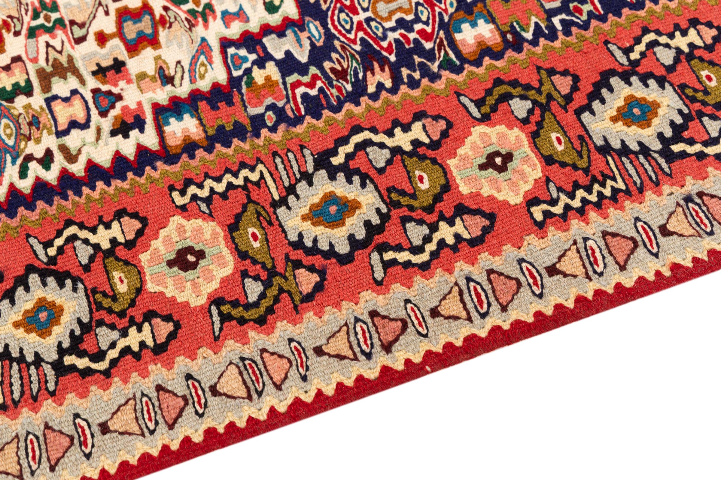 This rug belongs to village and nomadic rugs from Iran, formerly Persia. This type of rug is knotted by hand in smaller towns and villages in old tradition. Even nomads still knot Persian rugs in the open air. The rugs are knotted without a draft and completely from the mind. They are characterized by classical ornaments, which are arranged in straight and geometrical patterns. Thanks to their cultural-traditional origin, these rugs have a unique character that embodies ancient Persia.