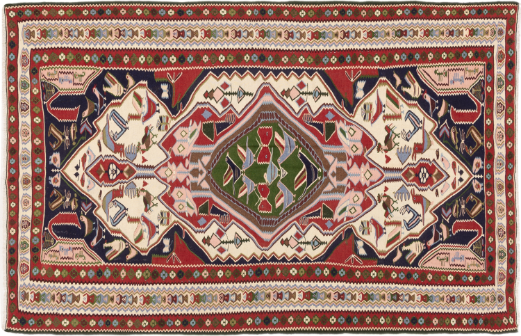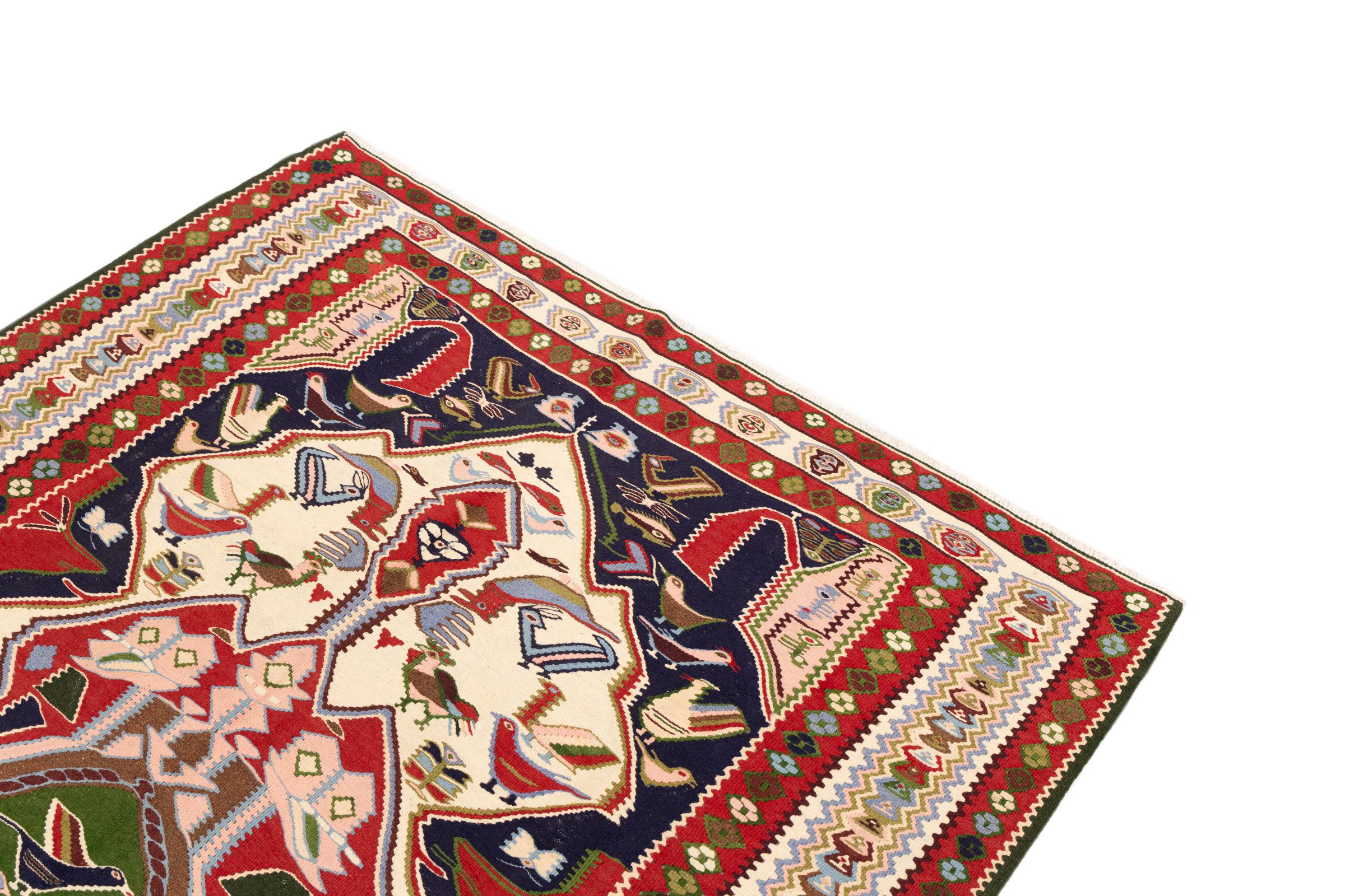This rug belongs to village and nomadic rugs from Iran, formerly Persia. This type of rug is knotted by hand in smaller towns and villages in old tradition. Even nomads still knot Persian rugs in the open air. The rugs are knotted without a draft and completely from the mind. They are characterized by classical ornaments, which are arranged in straight and geometrical patterns. Thanks to their cultural-traditional origin, these rugs have a unique character that embodies ancient Persia.