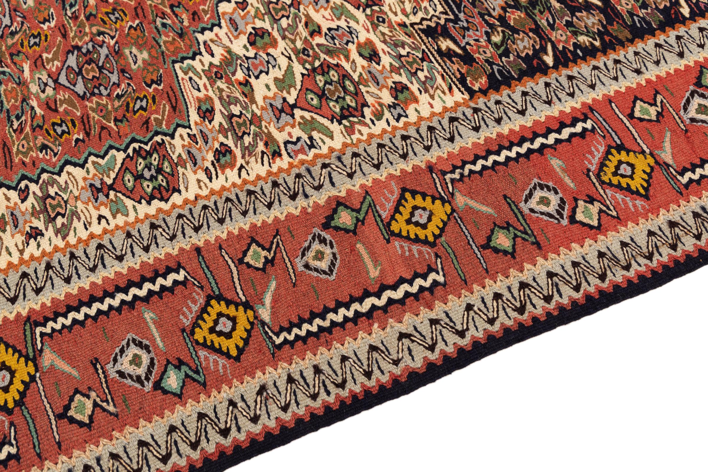 This rug belongs to village and nomadic rugs from Iran, formerly Persia. This type of rug is knotted by hand in smaller towns and villages in old tradition. Even nomads still knot Persian rugs in the open air. The rugs are knotted without a draft and completely from the mind. They are characterized by classical ornaments, which are arranged in straight and geometrical patterns. Thanks to their cultural-traditional origin, these rugs have a unique character that embodies ancient Persia.