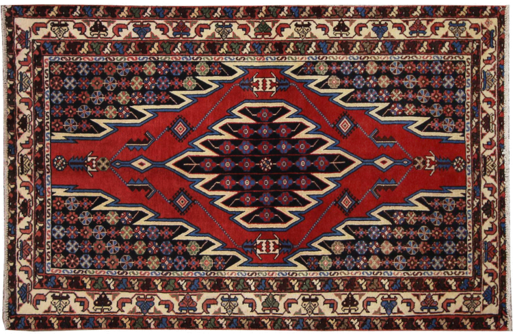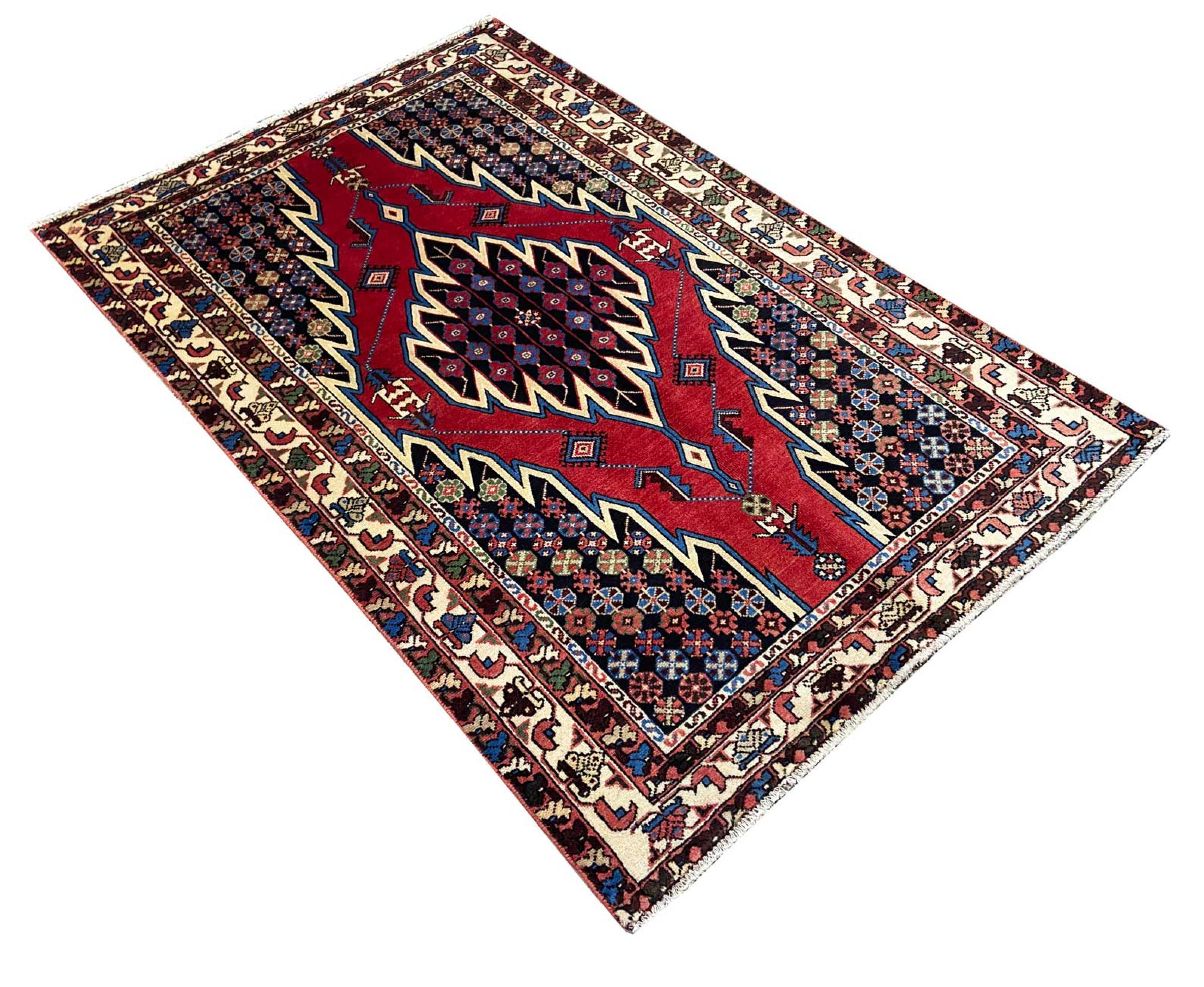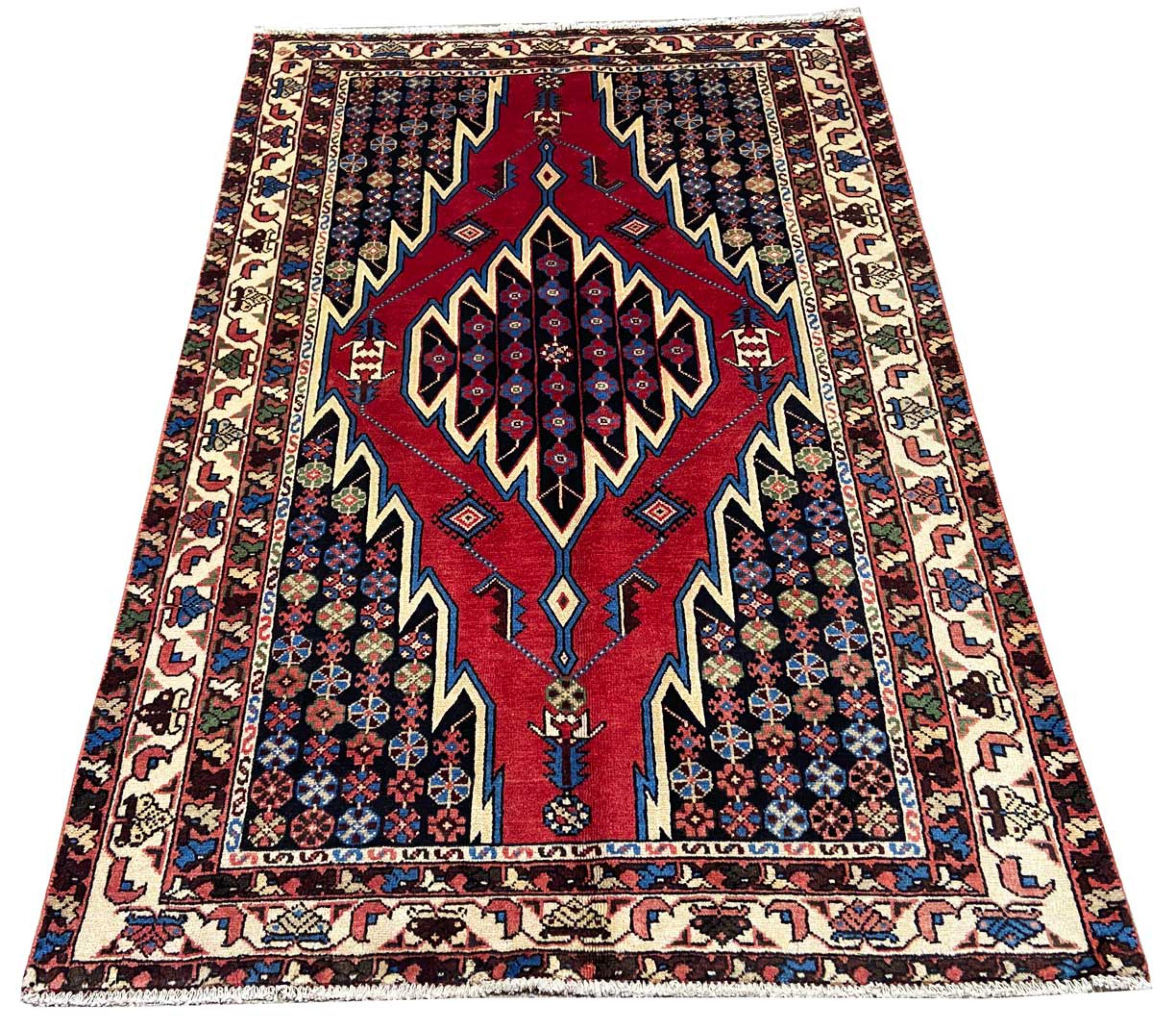 This rug belongs to village and nomadic rugs from Iran, formerly Persia. This type of rug is knotted by hand in smaller towns and villages in old tradition. Even nomads still knot Persian rugs in the open air. The rugs are knotted without a draft and completely from the mind. They are characterized by classical ornaments, which are arranged in straight and geometrical patterns. Thanks to their cultural-traditional origin, these rugs have a unique character that embodies ancient Persia.