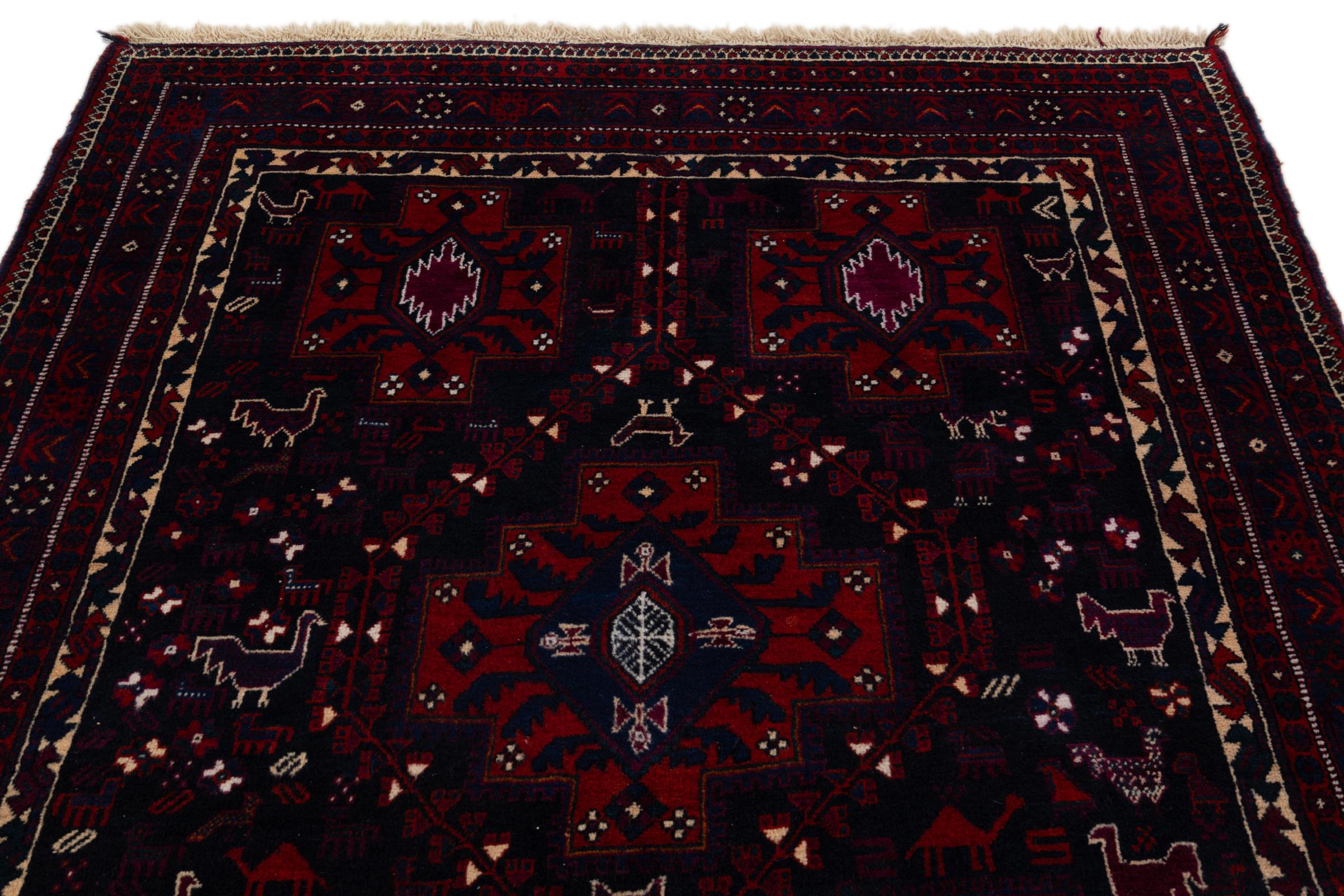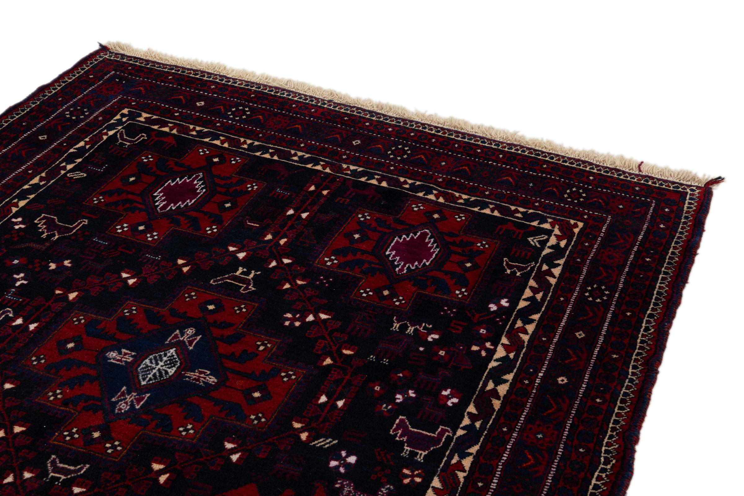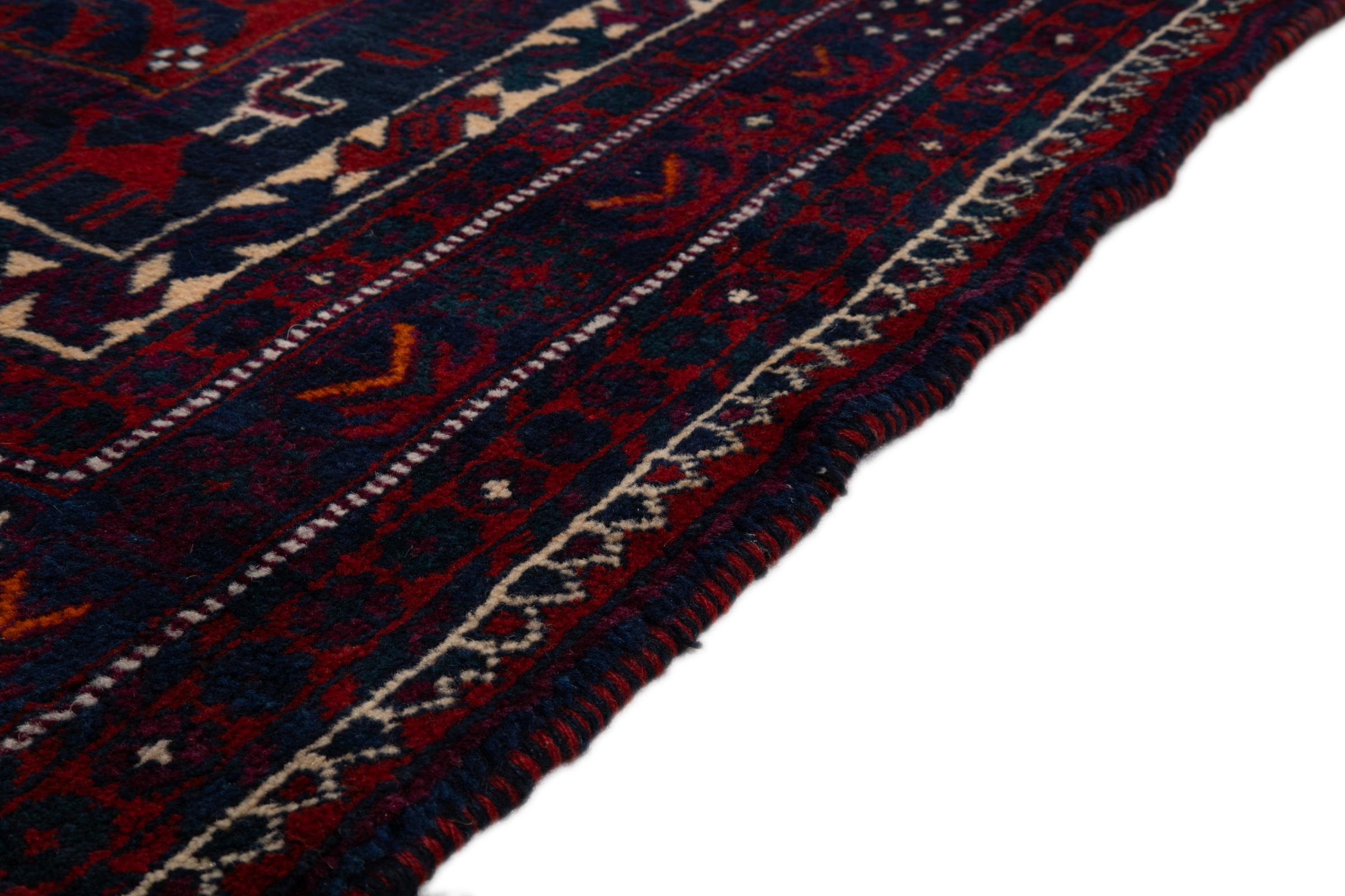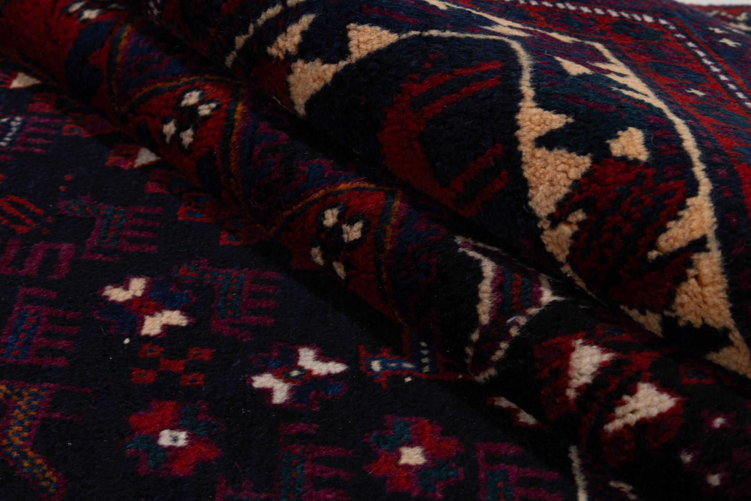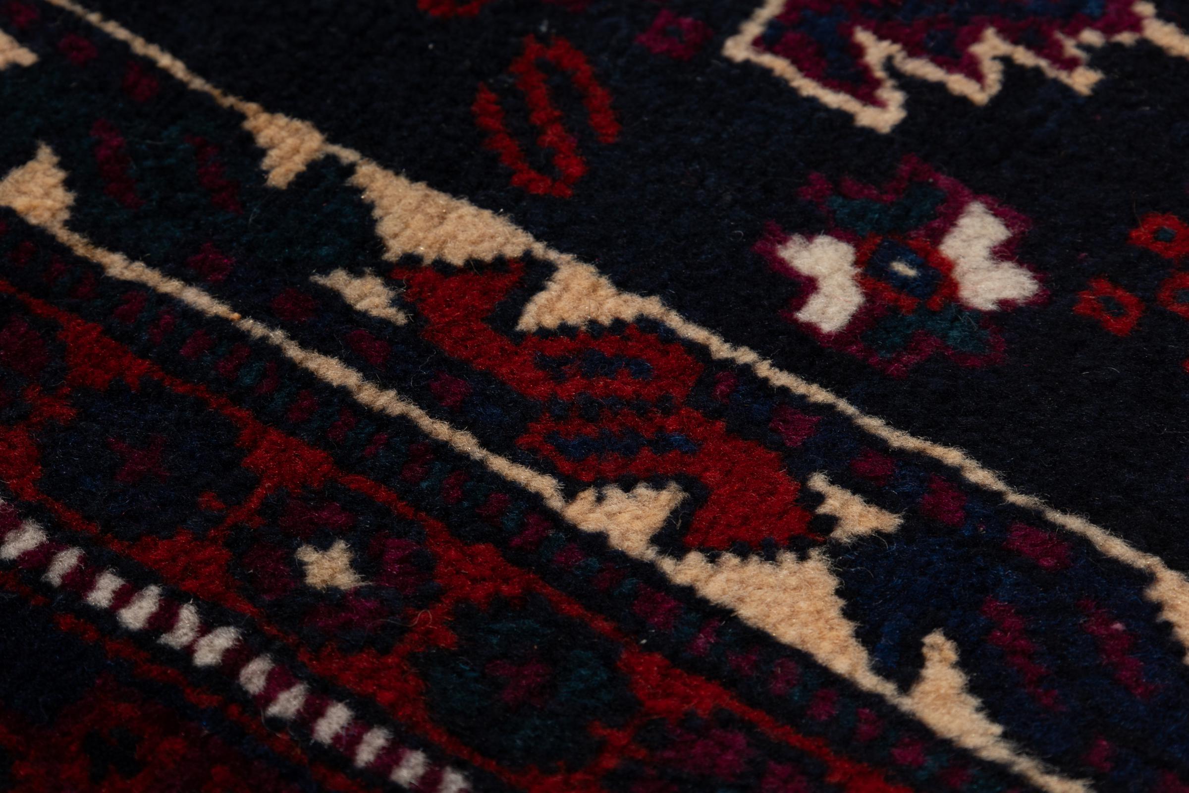 This rug belongs to village and nomadic rugs from Iran, formerly Persia. This type of rug is knotted by hand in smaller towns and villages in old tradition. Even nomads still knot Persian rugs in the open air. The rugs are knotted without a draft and completely from the mind. They are characterized by classical ornaments, which are arranged in straight and geometrical patterns. Thanks to their cultural-traditional origin, these rugs have a unique character that embodies ancient Persia.